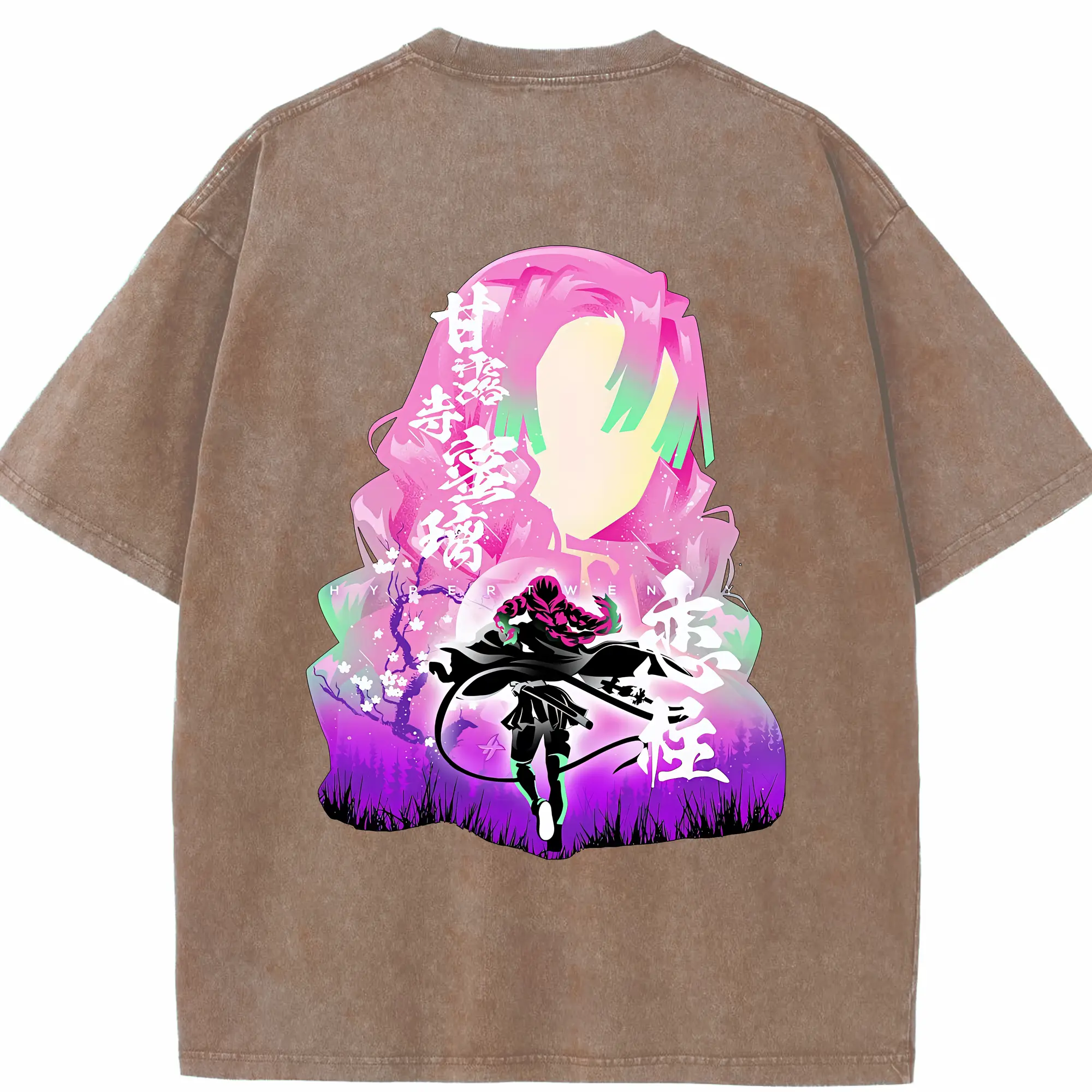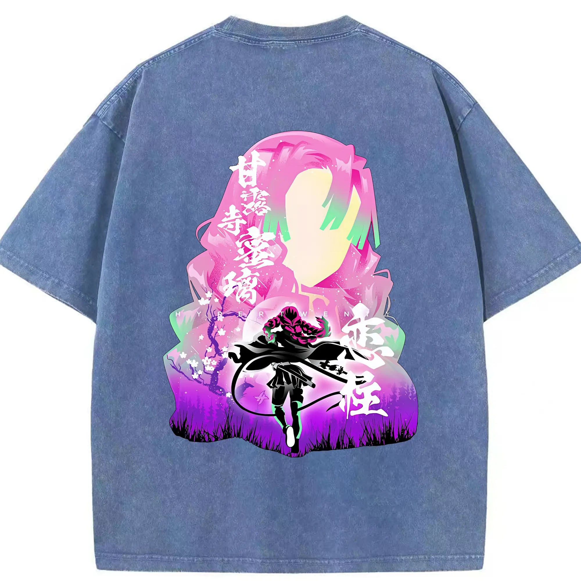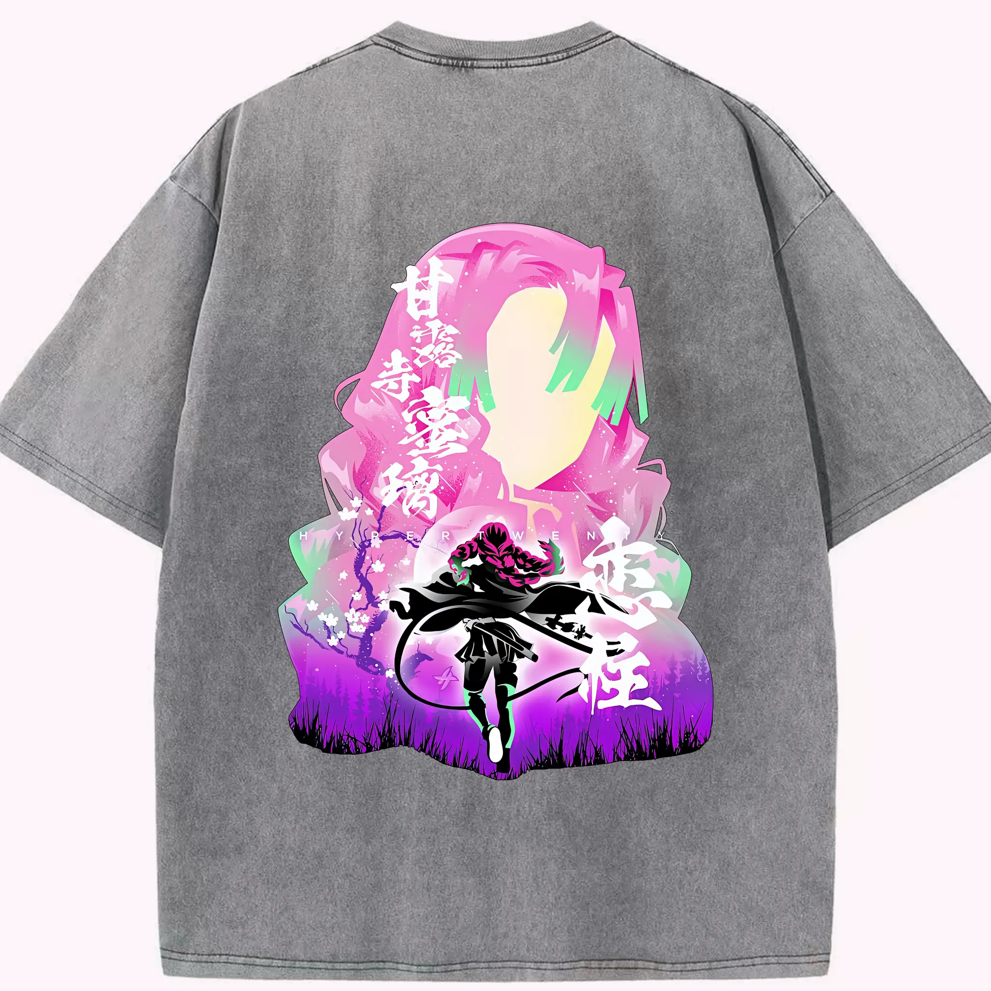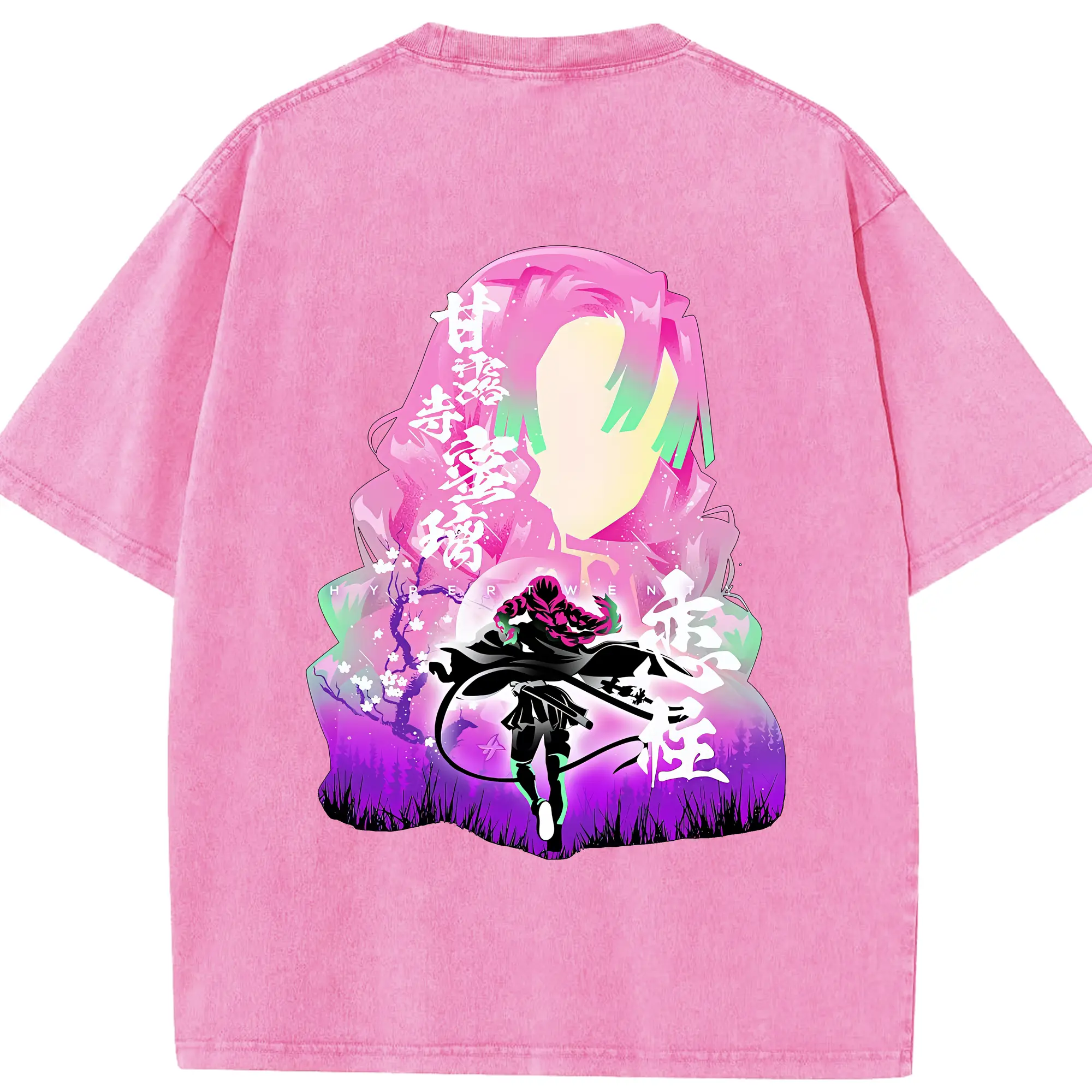 鬼滅の刃 グッズ,甘露寺 蜜璃 - 綿100% 半袖Tシャツ ・ フロントプリント ・ 快適 通気性 ・ 日常使い 散歩 スポーツ用