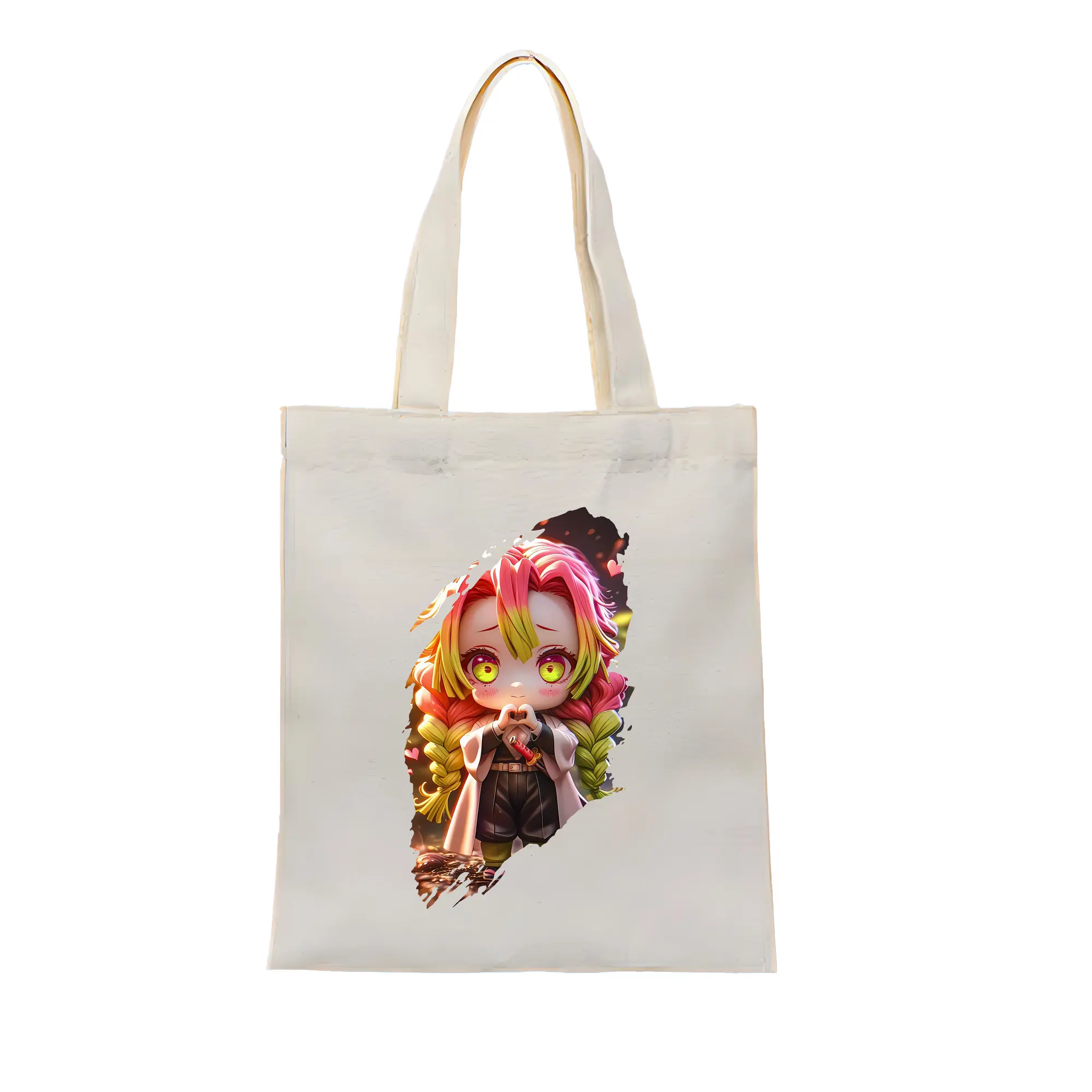 鬼滅の刃 グッズ,甘露寺 蜜璃 - 縦型キャンバス手提げバッグ(トートバッグ) ・ キャンバス素材 ・ ショッピング用 ・ 軽量 丈夫 お手入れ簡単