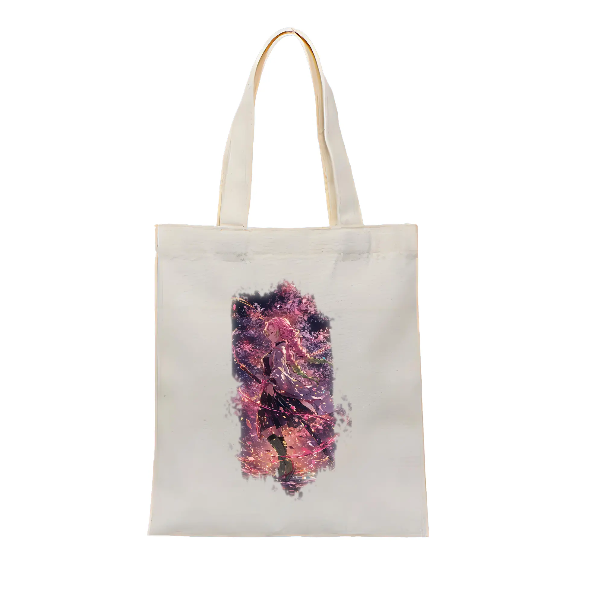 鬼滅の刃 グッズ,甘露寺 蜜璃 - 縦型キャンバス手提げバッグ(トートバッグ) ・ キャンバス素材 ・ ショッピング用 ・ 軽量 丈夫 お手入れ簡単