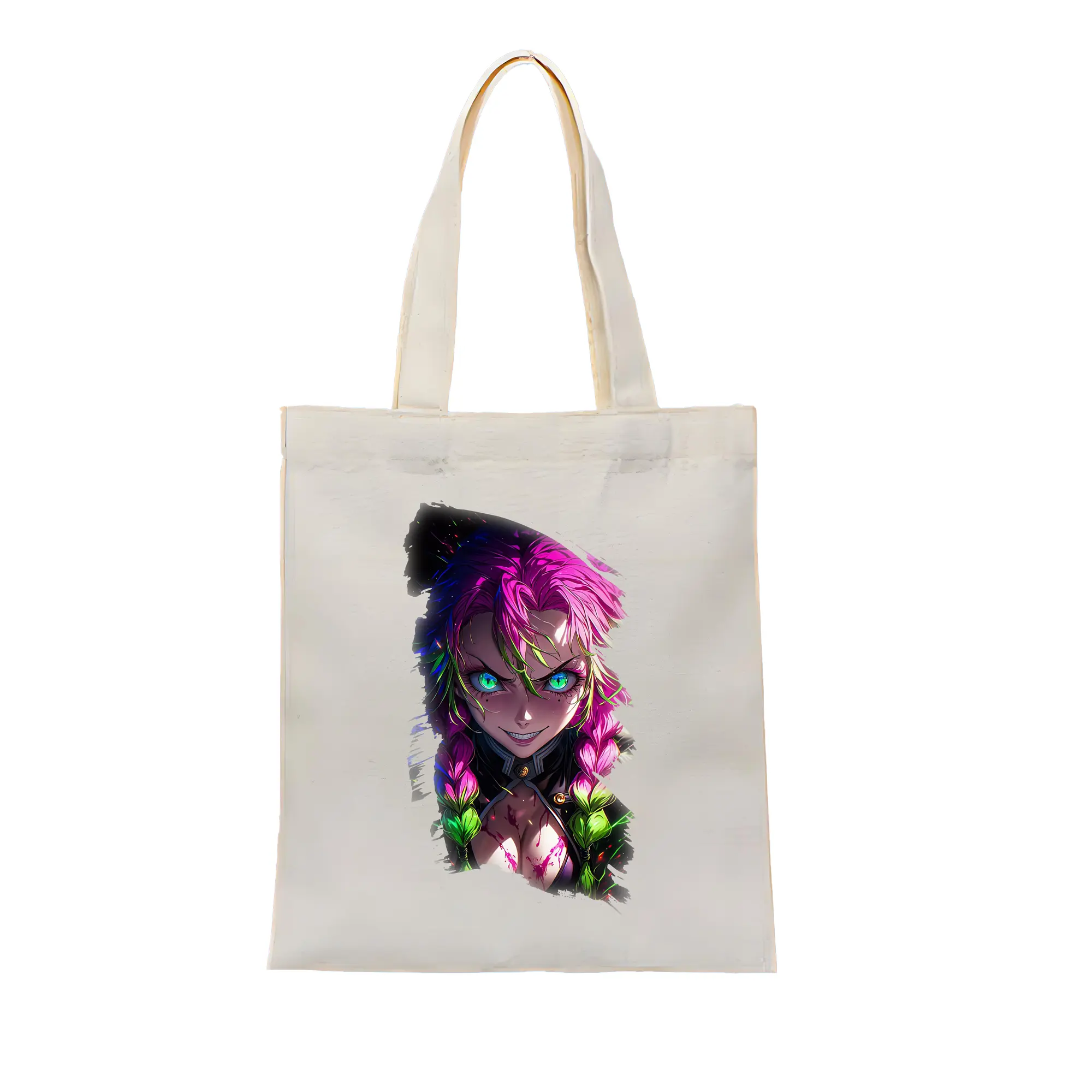 鬼滅の刃 グッズ,甘露寺 蜜璃 - 縦型キャンバス手提げバッグ(トートバッグ) ・ キャンバス素材 ・ ショッピング用 ・ 軽量 丈夫 お手入れ簡単