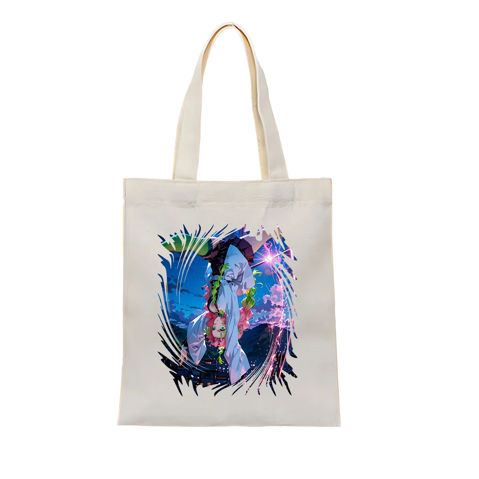 鬼滅の刃 グッズ,甘露寺 蜜璃 - 縦型キャンバス手提げバッグ(トートバッグ) ・ キャンバス素材 ・ ショッピング用 ・ 軽量 丈夫 お手入れ簡単
