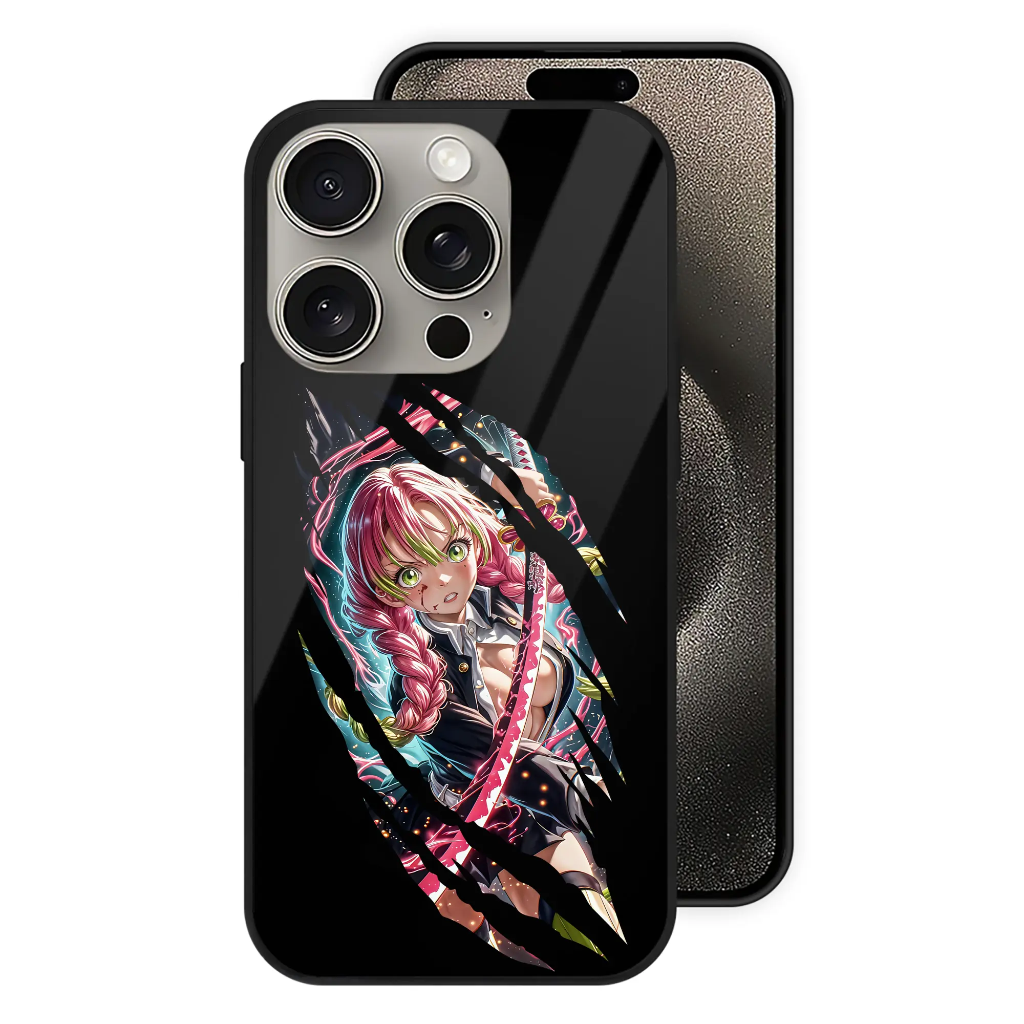 鬼滅の刃 グッズ,甘露寺 蜜璃 - IPhone15Pro対応 ・ スマホケース ・ 背面ガラス ・ TPU+強化ガラス ・ 耐衝撃 ・ 黄変防止 ・ ワイヤレス充電対応 ・ 3D立体ボタン