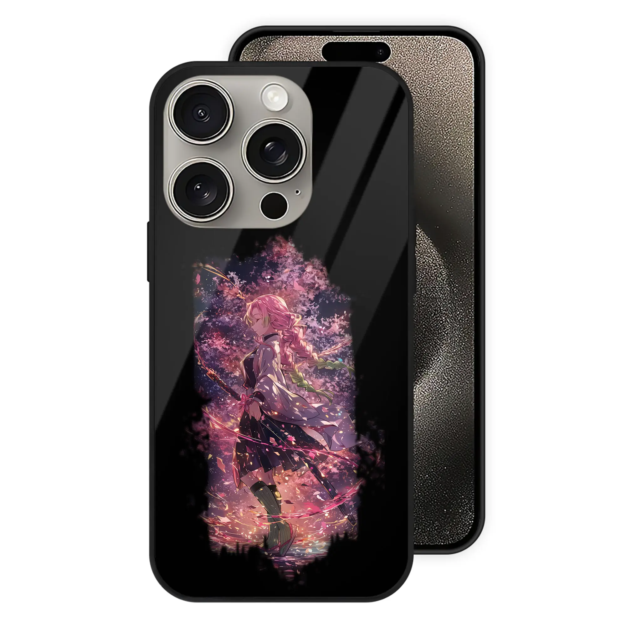鬼滅の刃 グッズ,甘露寺 蜜璃 - IPhone15Pro対応 ・ スマホケース ・ 背面ガラス ・ TPU+強化ガラス ・ 耐衝撃 ・ 黄変防止 ・ ワイヤレス充電対応 ・ 3D立体ボタン
