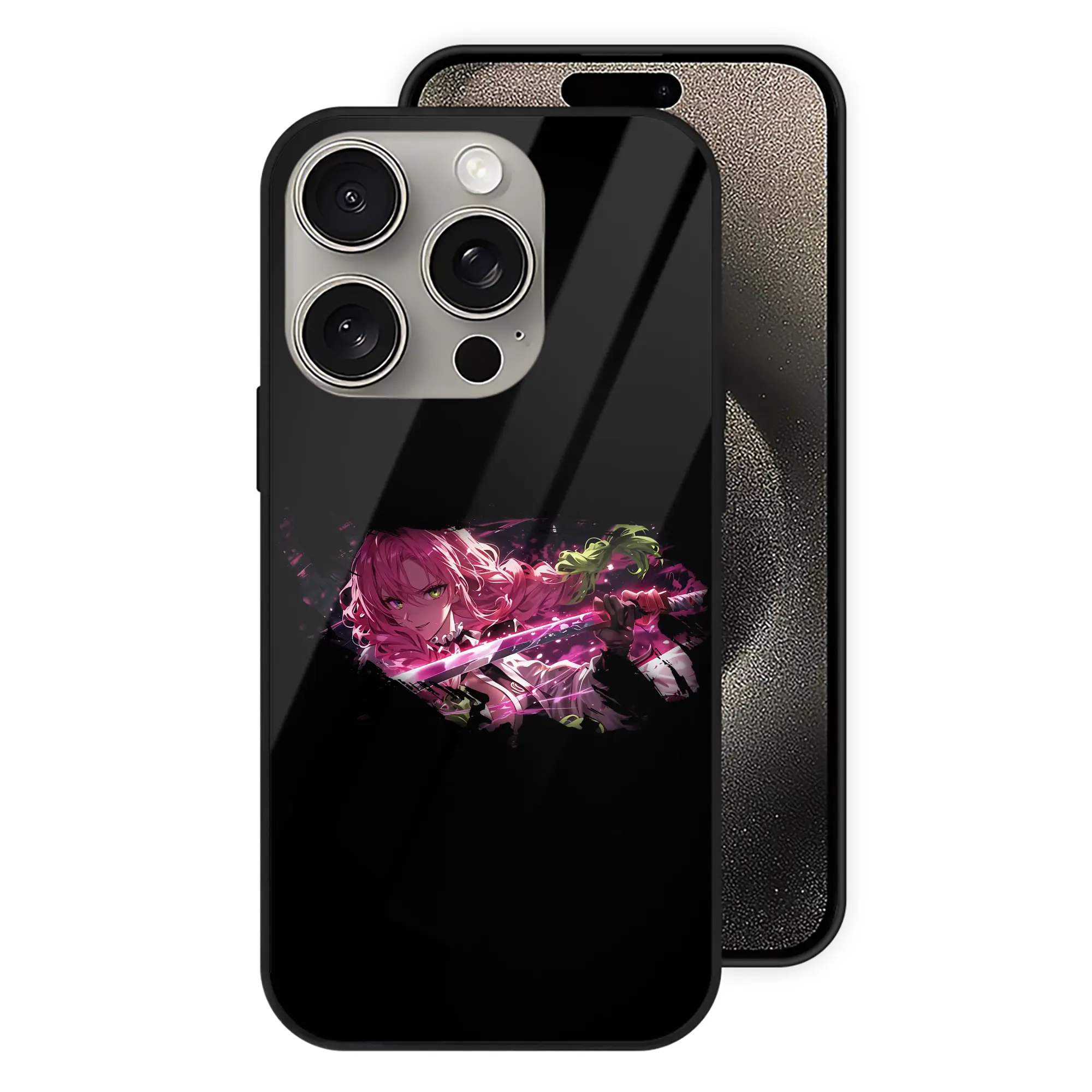 鬼滅の刃 グッズ,甘露寺 蜜璃 - IPhone15Pro対応 ・ スマホケース ・ 背面ガラス ・ TPU+強化ガラス ・ 耐衝撃 ・ 黄変防止 ・ ワイヤレス充電対応 ・ 3D立体ボタン