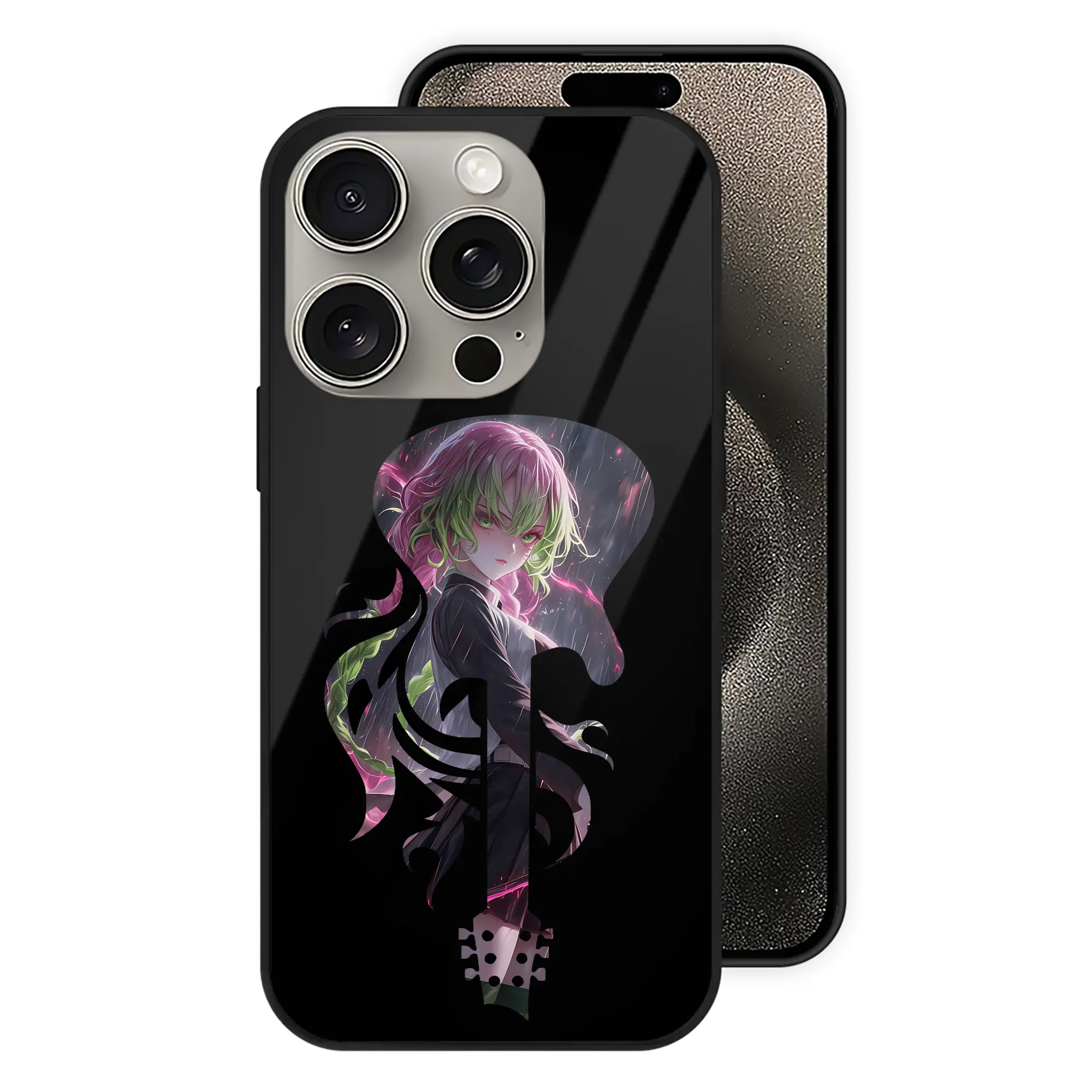 鬼滅の刃 グッズ,甘露寺 蜜璃 - IPhone15Pro対応 ・ スマホケース ・ 背面ガラス ・ TPU+強化ガラス ・ 耐衝撃 ・ 黄変防止 ・ ワイヤレス充電対応 ・ 3D立体ボタン