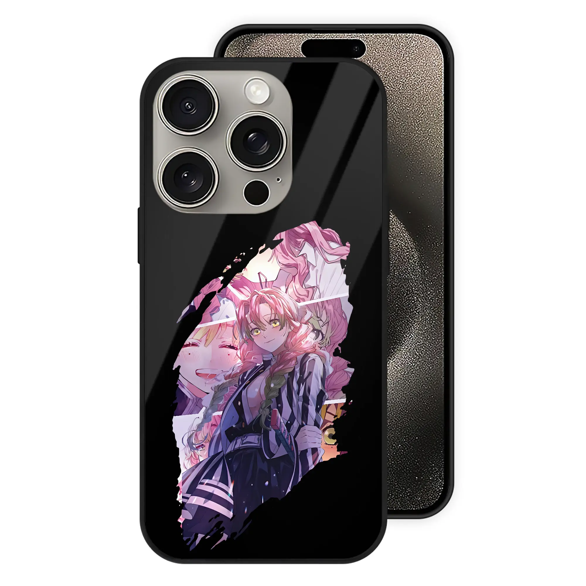鬼滅の刃 グッズ,甘露寺 蜜璃 - IPhone15Pro対応 ・ スマホケース ・ 背面ガラス ・ TPU+強化ガラス ・ 耐衝撃 ・ 黄変防止 ・ ワイヤレス充電対応 ・ 3D立体ボタン