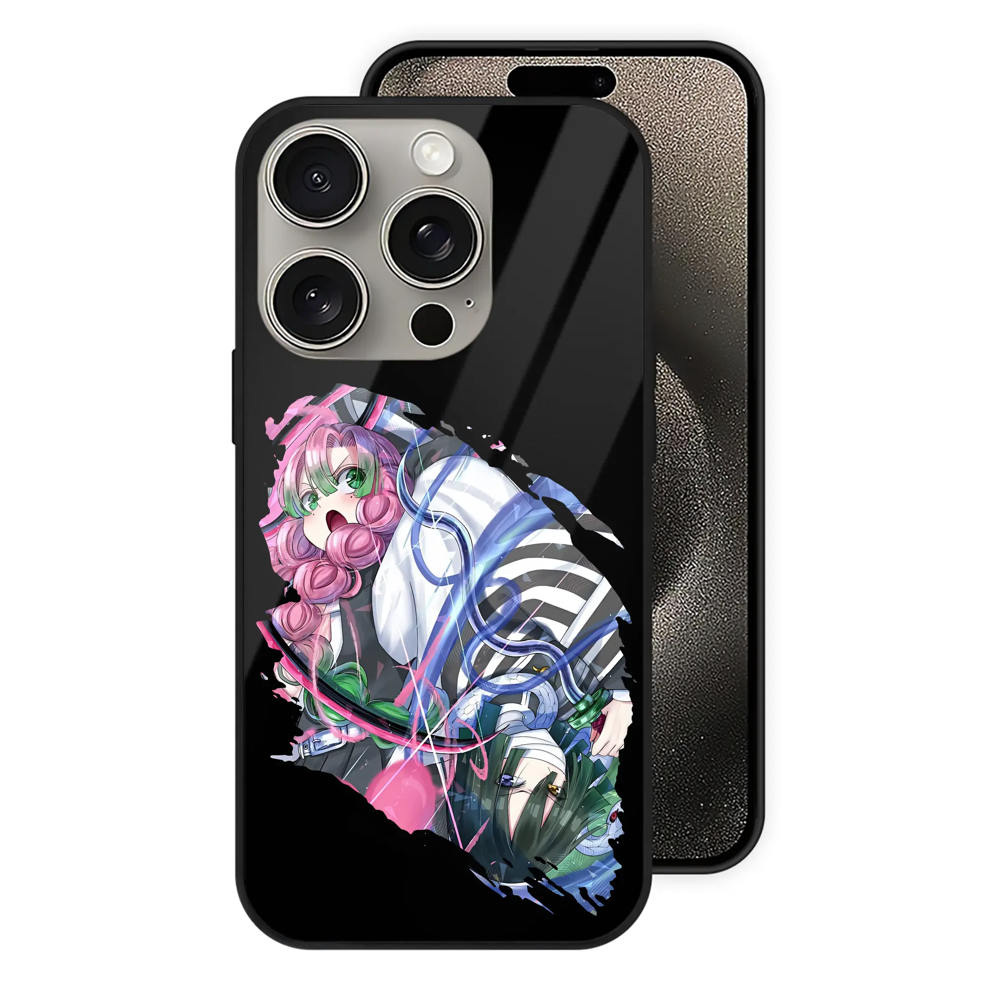 鬼滅の刃 グッズ,甘露寺 蜜璃 - IPhone15Pro対応 ・ スマホケース ・ 背面ガラス ・ TPU+強化ガラス ・ 耐衝撃 ・ 黄変防止 ・ ワイヤレス充電対応 ・ 3D立体ボタン