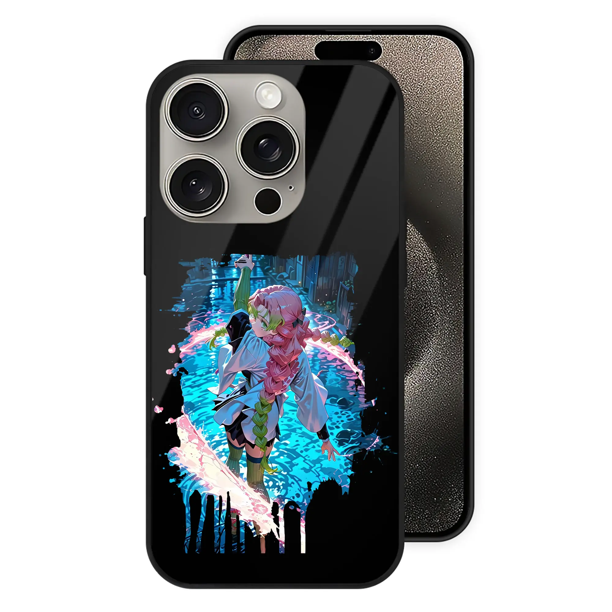 鬼滅の刃 グッズ,甘露寺 蜜璃 - IPhone15Pro対応 ・ スマホケース ・ 背面ガラス ・ TPU+強化ガラス ・ 耐衝撃 ・ 黄変防止 ・ ワイヤレス充電対応 ・ 3D立体ボタン