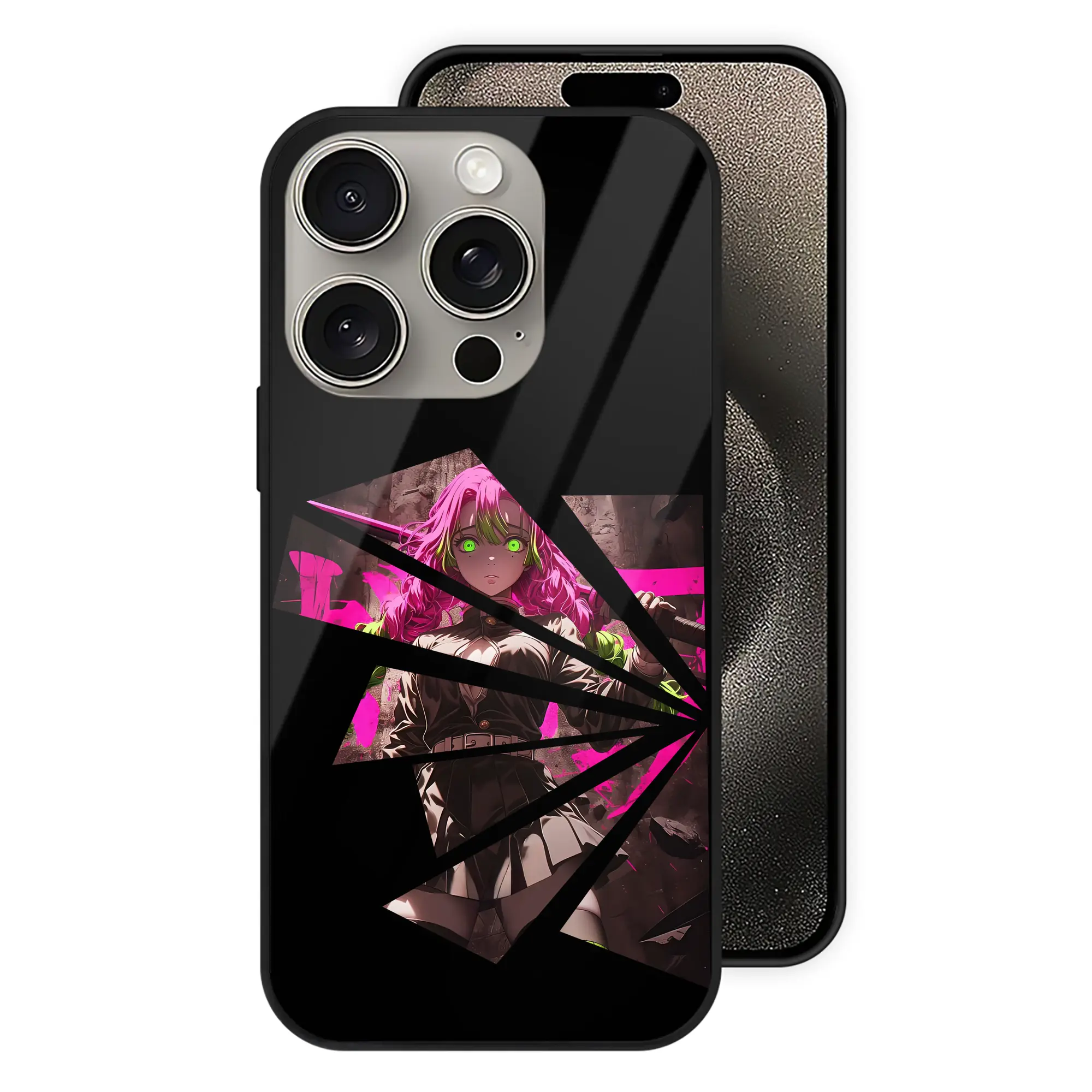 鬼滅の刃 グッズ,甘露寺 蜜璃 - IPhone15Pro対応 ・ スマホケース ・ 背面ガラス ・ TPU+強化ガラス ・ 耐衝撃 ・ 黄変防止 ・ ワイヤレス充電対応 ・ 3D立体ボタン