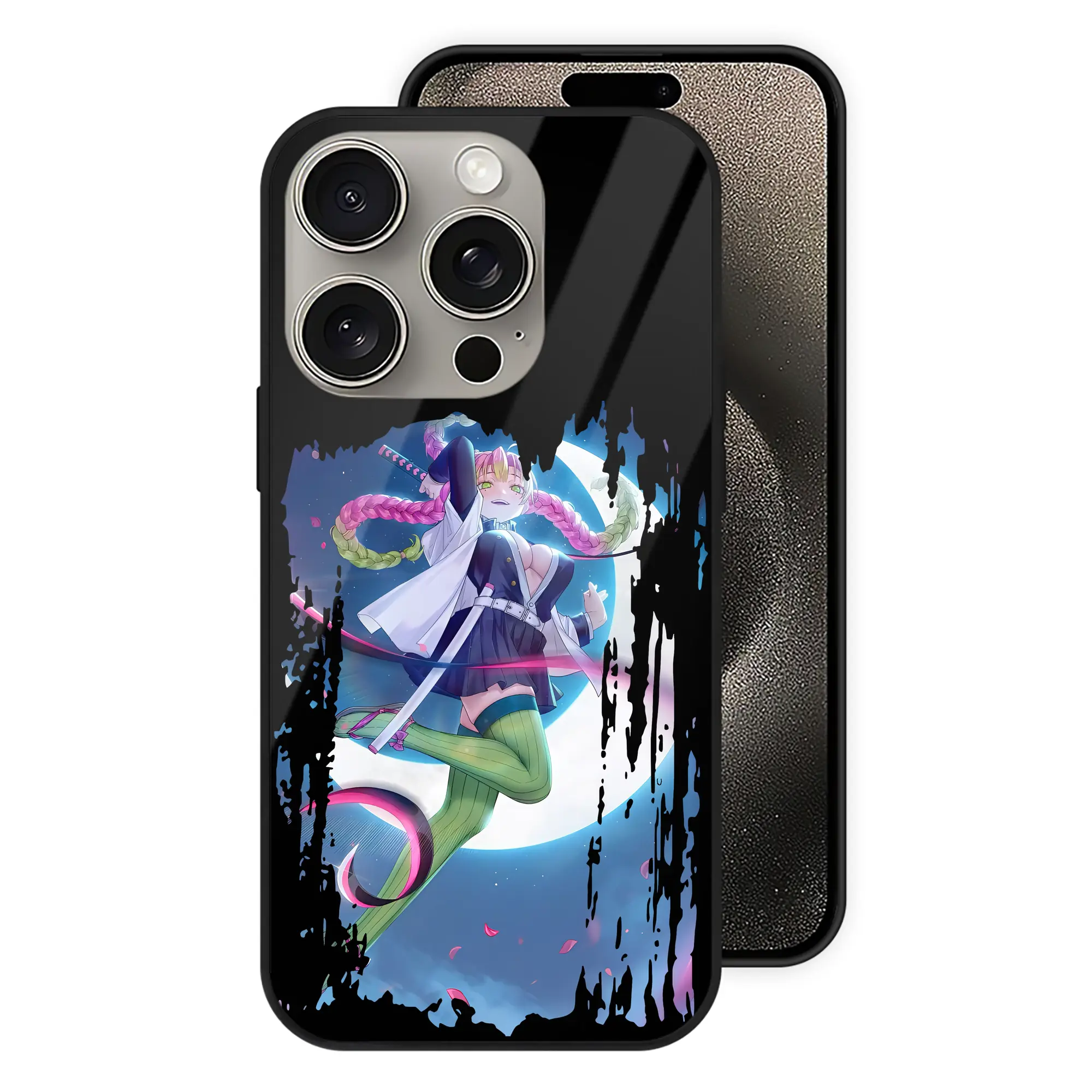 鬼滅の刃 グッズ,甘露寺 蜜璃 - IPhone15Pro対応 ・ スマホケース ・ 背面ガラス ・ TPU+強化ガラス ・ 耐衝撃 ・ 黄変防止 ・ ワイヤレス充電対応 ・ 3D立体ボタン