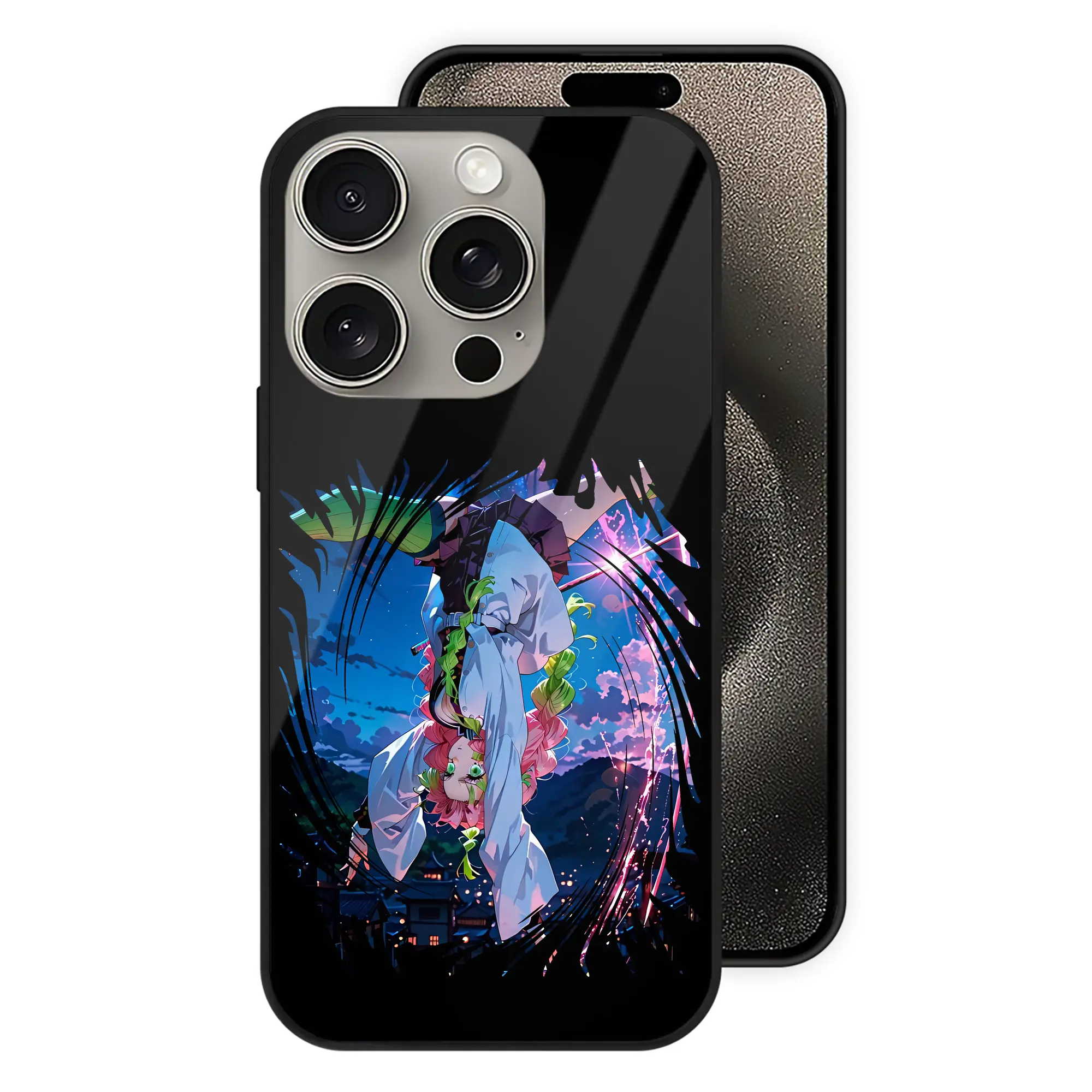 鬼滅の刃 グッズ,甘露寺 蜜璃 - IPhone15Pro対応 ・ スマホケース ・ 背面ガラス ・ TPU+強化ガラス ・ 耐衝撃 ・ 黄変防止 ・ ワイヤレス充電対応 ・ 3D立体ボタン