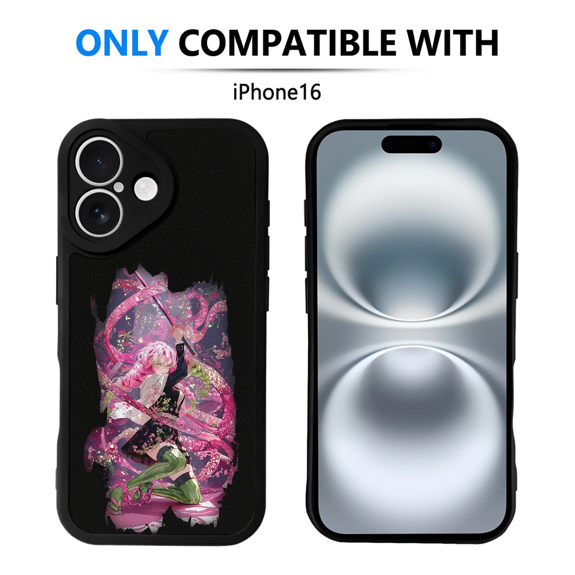 鬼滅の刃 グッズ,甘露寺 蜜璃 - IPhone 16シリーズ対応 ・ シリコンスマホケース ・ レザー調 ・ 高精度フィット ・ 耐衝撃 ・ ワイヤレス充電対応 ・ 精密カット