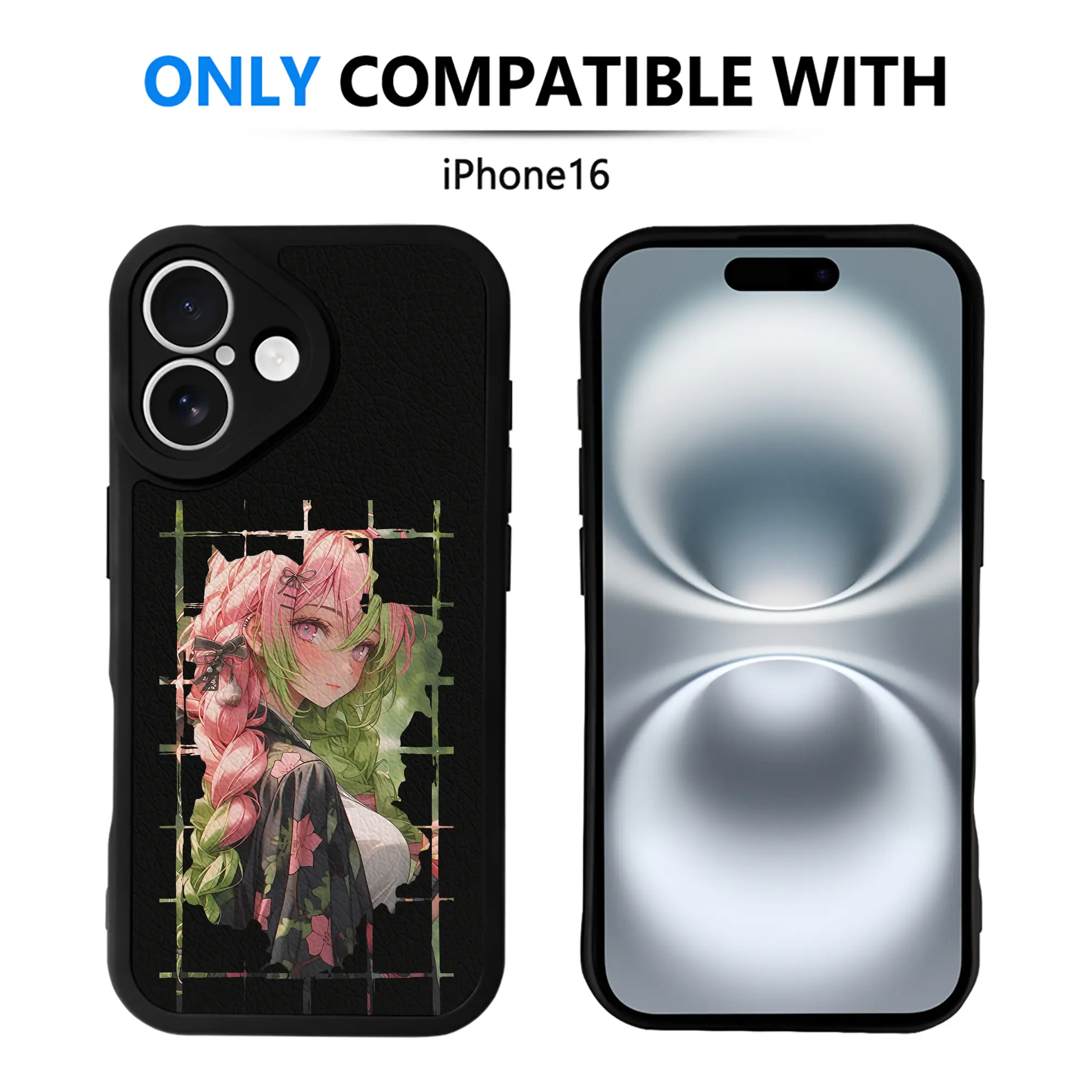 鬼滅の刃 グッズ,甘露寺 蜜璃 - IPhone 16シリーズ対応 ・ シリコンスマホケース ・ レザー調 ・ 高精度フィット ・ 耐衝撃 ・ ワイヤレス充電対応 ・ 精密カット