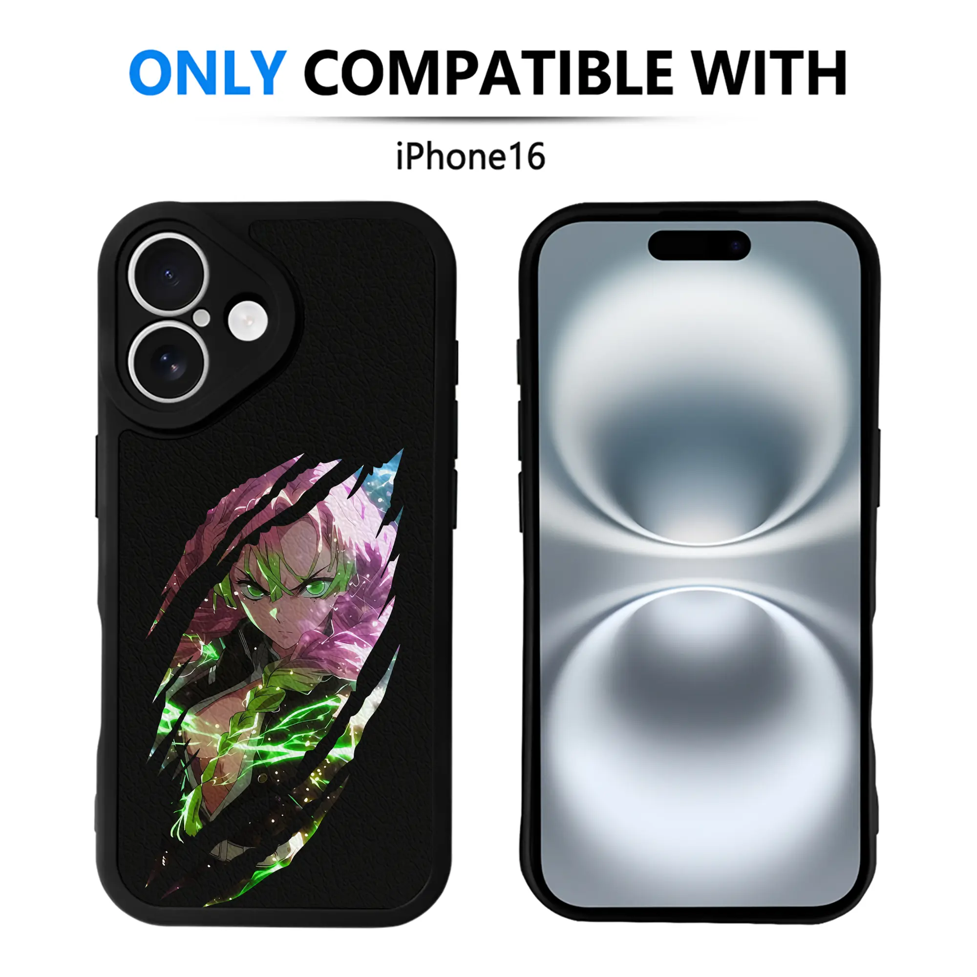鬼滅の刃 グッズ,甘露寺 蜜璃 - IPhone 16シリーズ対応 ・ シリコンスマホケース ・ レザー調 ・ 高精度フィット ・ 耐衝撃 ・ ワイヤレス充電対応 ・ 精密カット