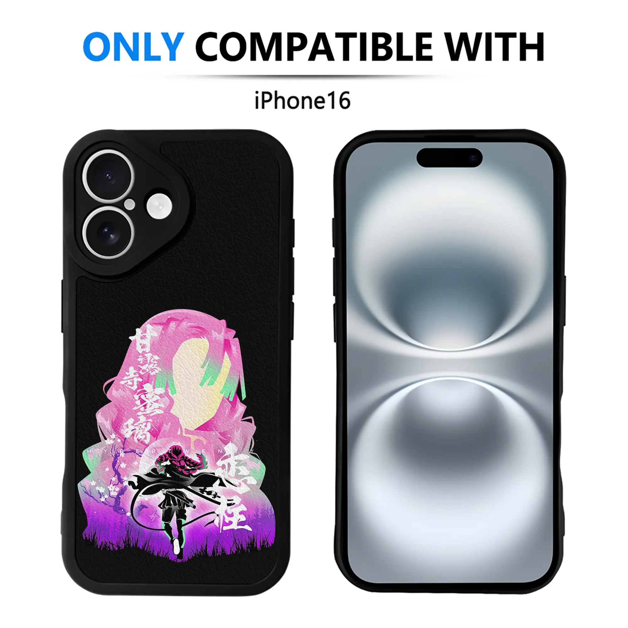 鬼滅の刃 グッズ,甘露寺 蜜璃 - IPhone 16シリーズ対応 ・ シリコンスマホケース ・ レザー調 ・ 高精度フィット ・ 耐衝撃 ・ ワイヤレス充電対応 ・ 精密カット