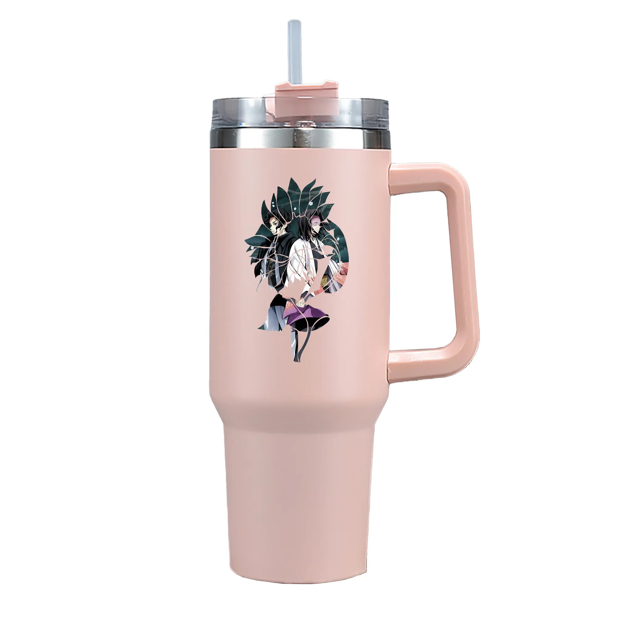 鬼滅の刃 グッズ,産屋敷 耀哉 - 1200mL 車用タンブラー ・ クリスタルステッカー ・ 304ステンレス 内側 ・ 201ステンレス 外側 ・ 保温 保冷 ・ ハンドル&ストロー付き ・ 通勤 ドライブ アウトドア用