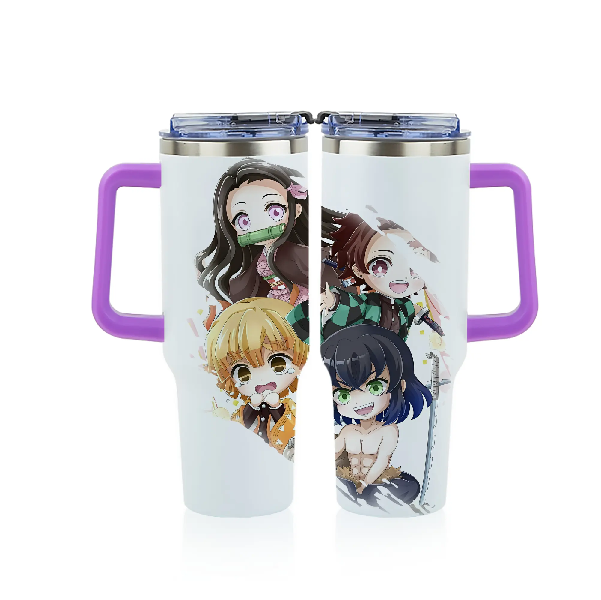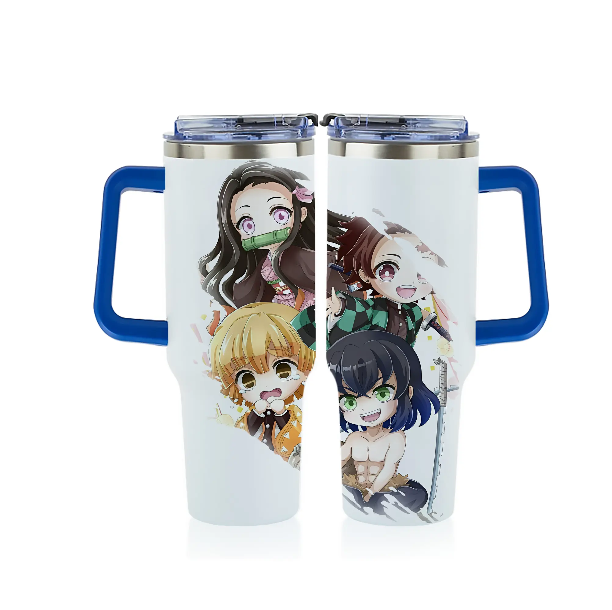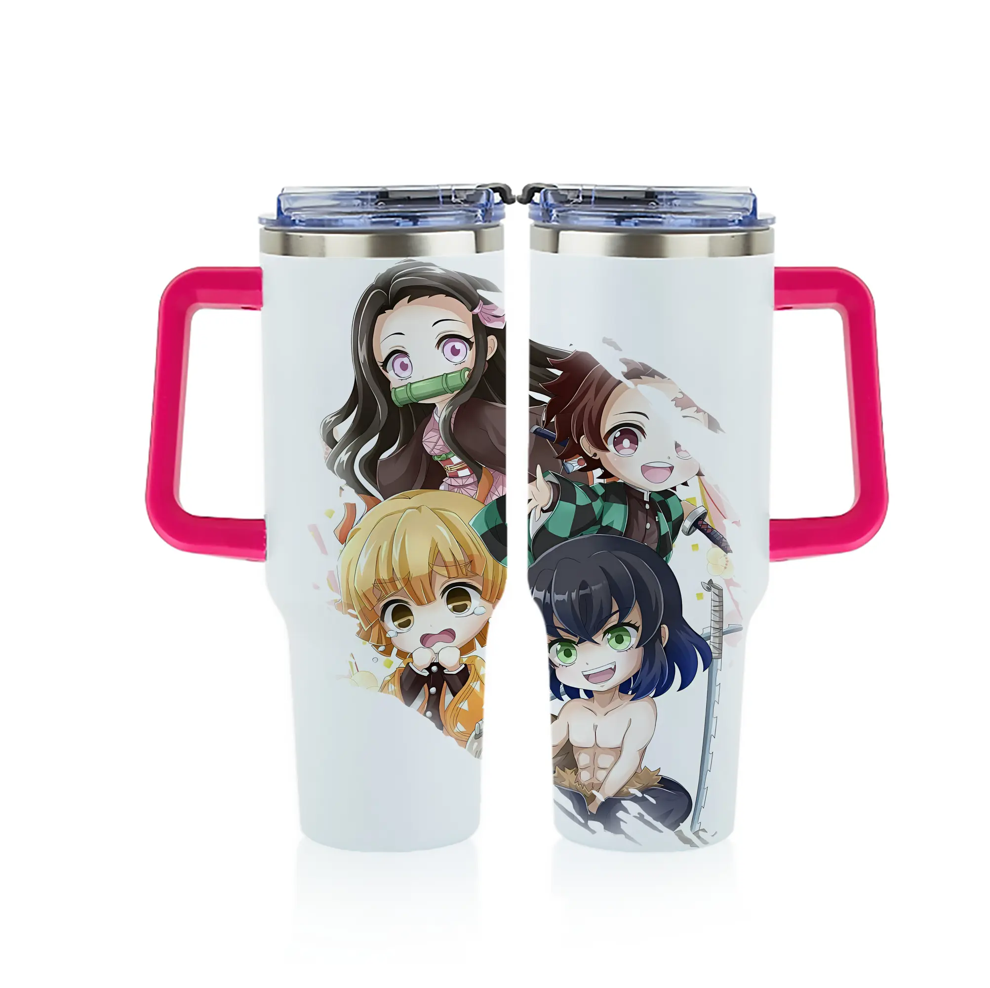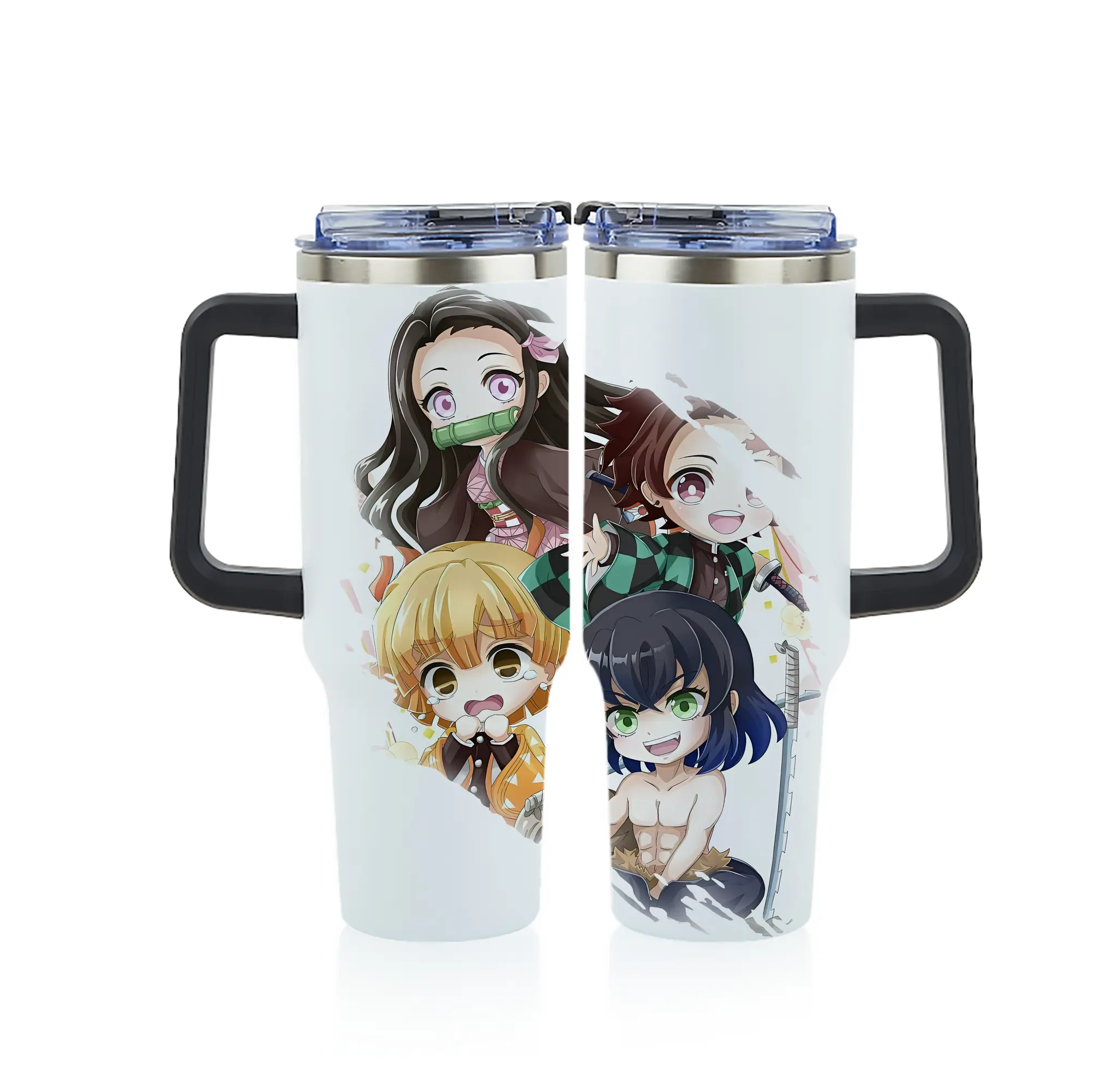 鬼滅の刃 グッズ,竈門 禰豆子 - 1200mL フルプリント車用タンブラー ・ 304ステンレス 内側 ・ 201ステンレス 外側 ・ 保温 保冷 ・ 通勤 ドライブ アウトドア用