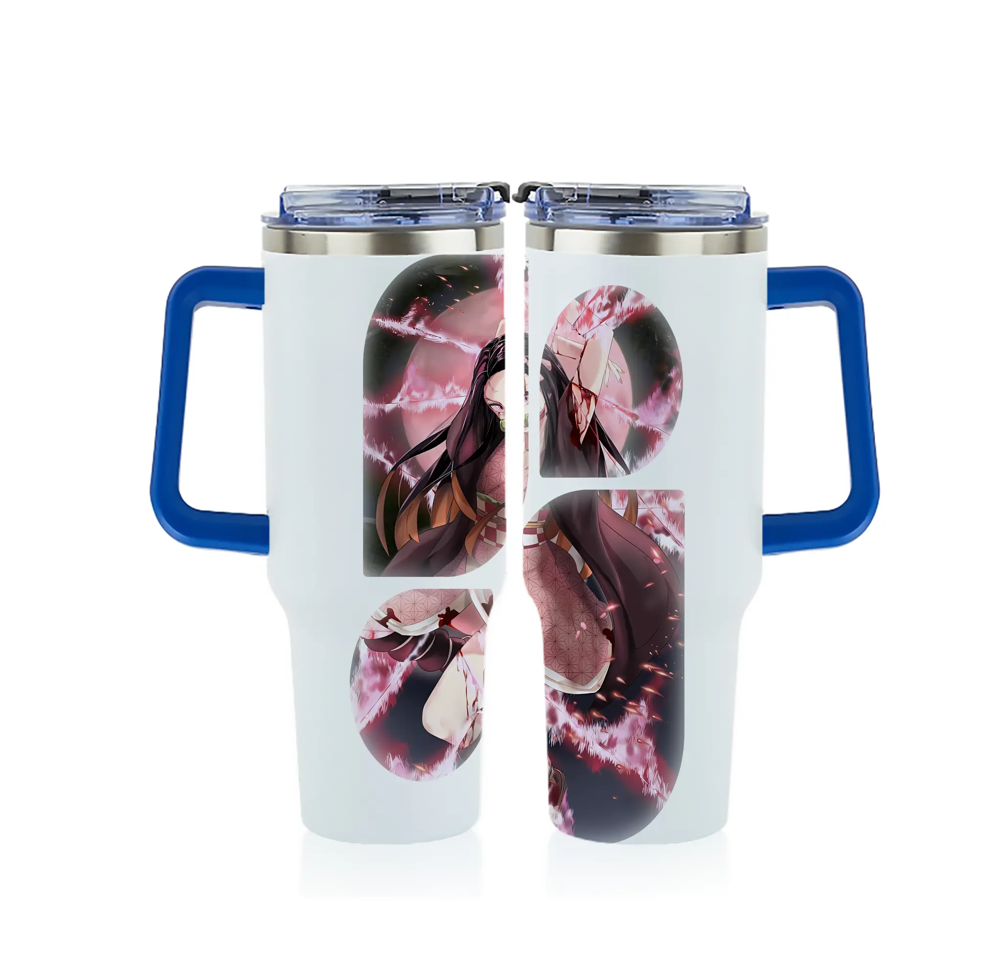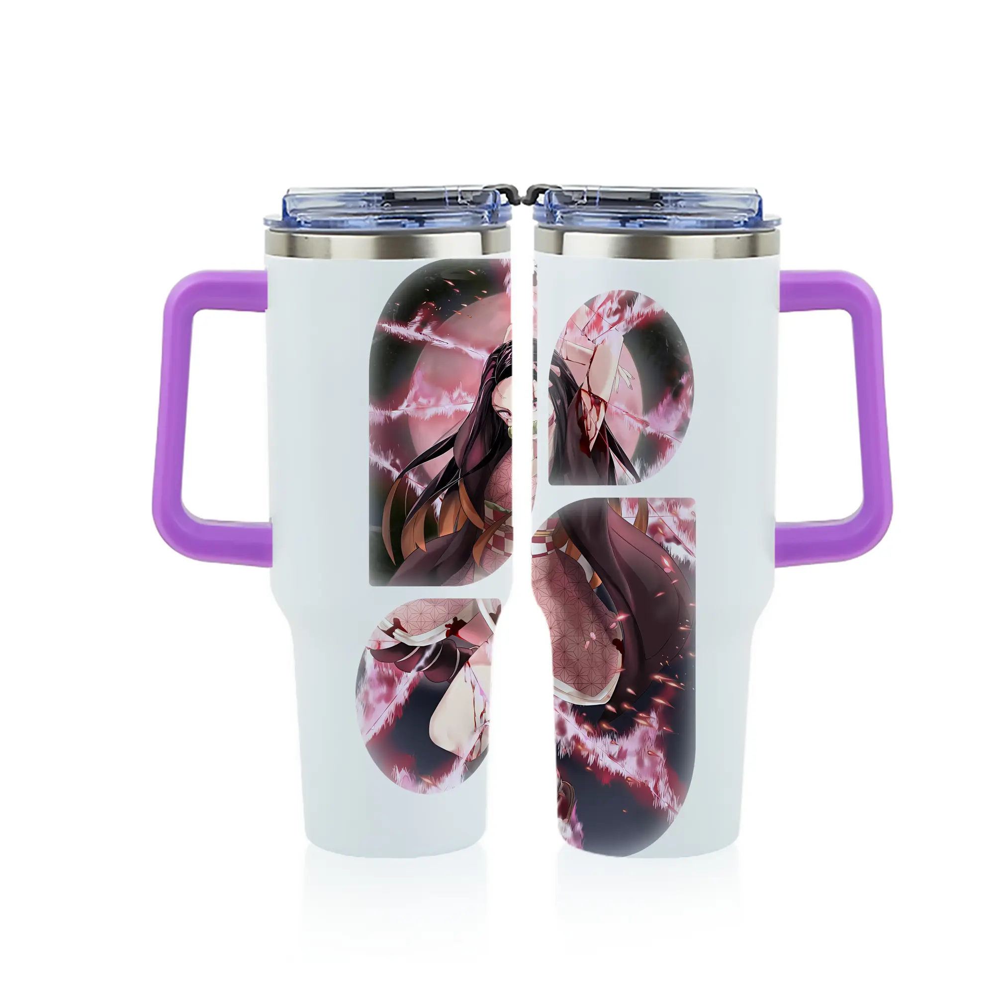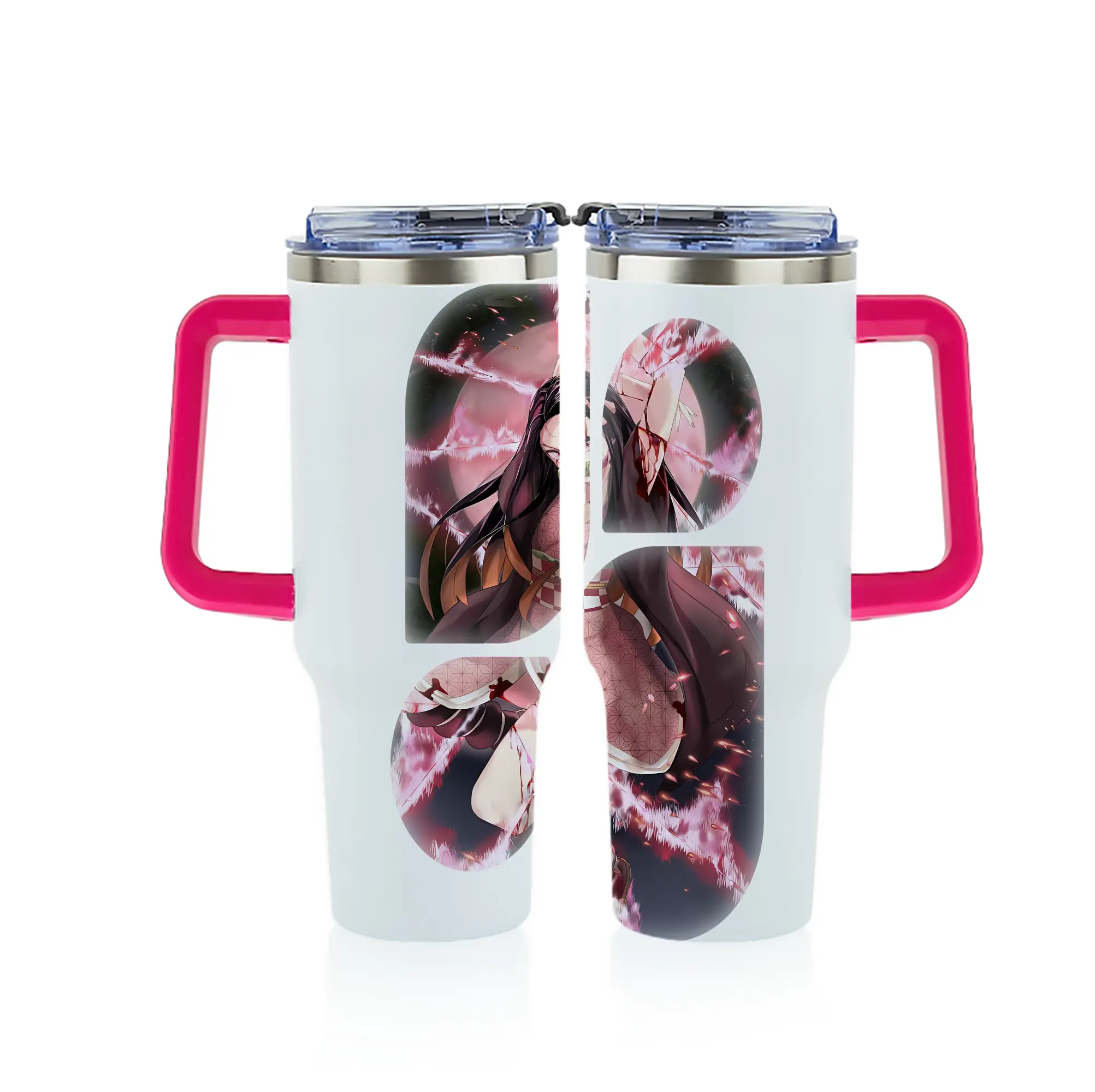 鬼滅の刃 グッズ,竈門 禰豆子 - 1200mL フルプリント車用タンブラー ・ 304ステンレス 内側 ・ 201ステンレス 外側 ・ 保温 保冷 ・ 通勤 ドライブ アウトドア用