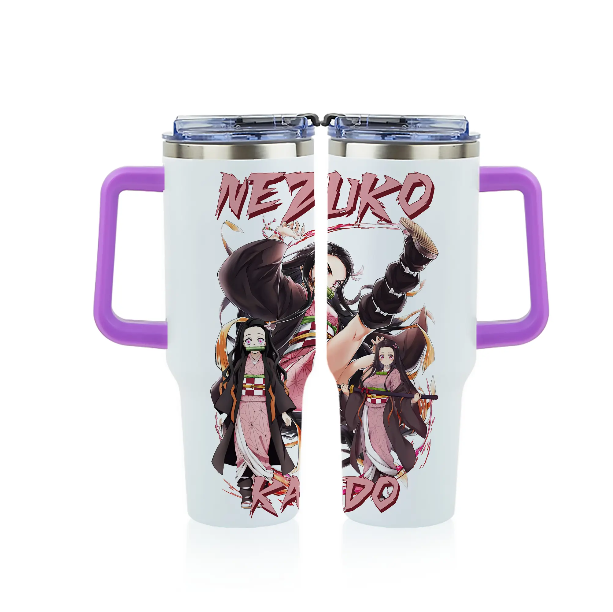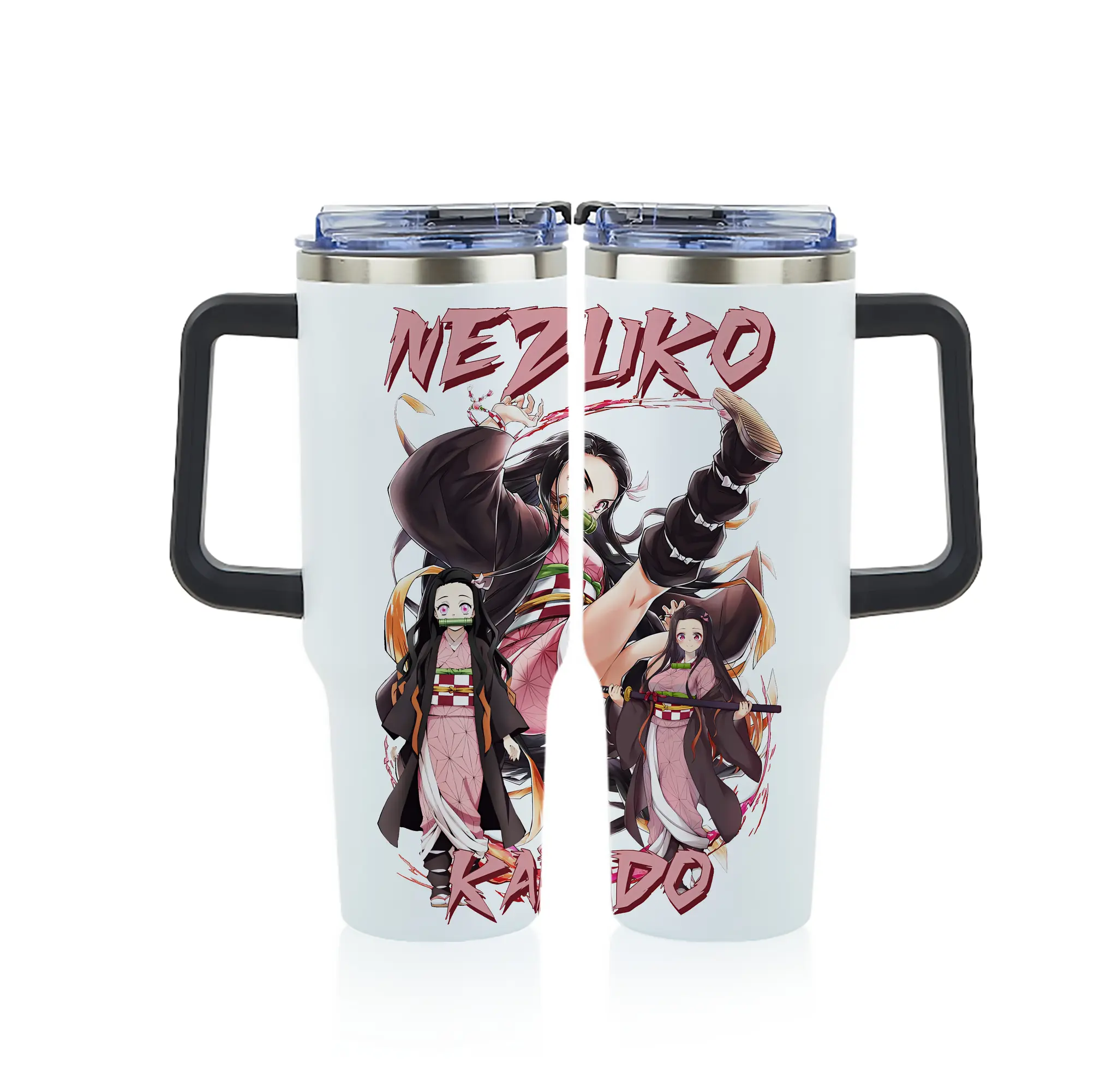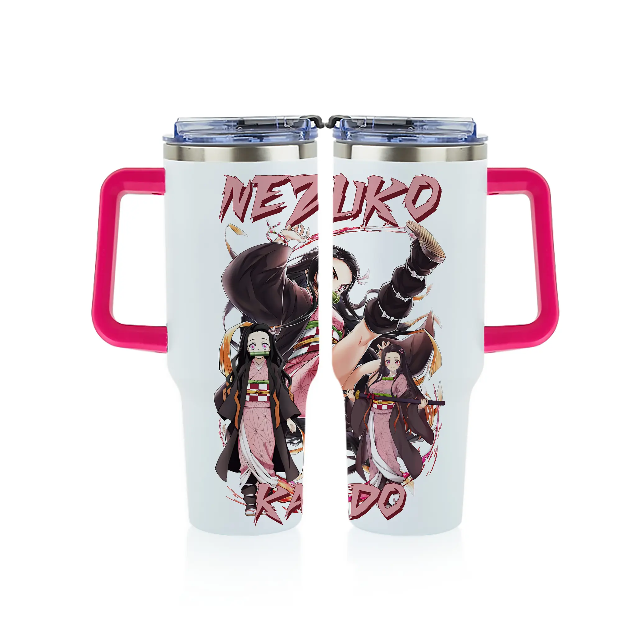 鬼滅の刃 グッズ,竈門 禰豆子 - 1200mL フルプリント車用タンブラー ・ 304ステンレス 内側 ・ 201ステンレス 外側 ・ 保温 保冷 ・ 通勤 ドライブ アウトドア用