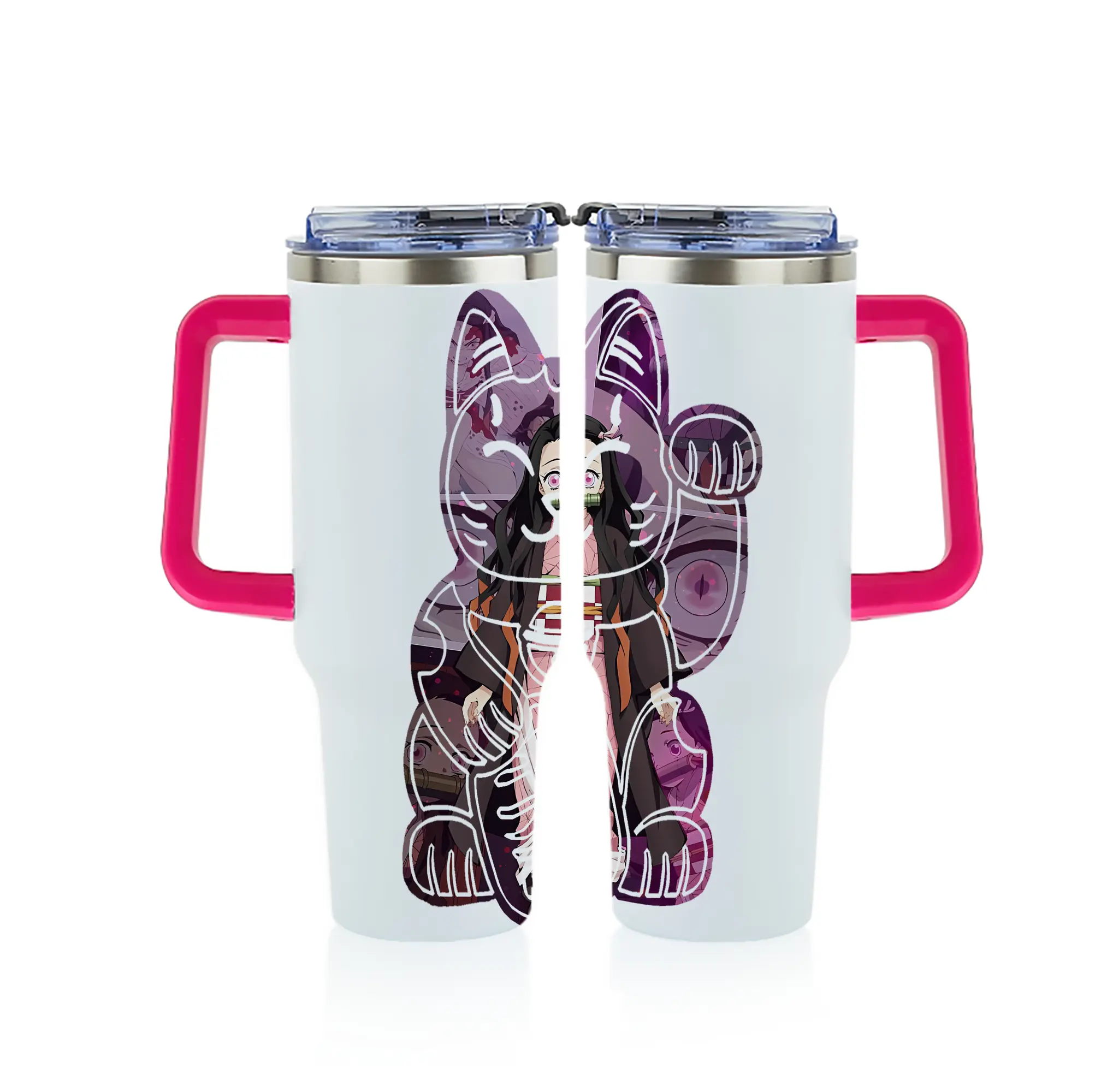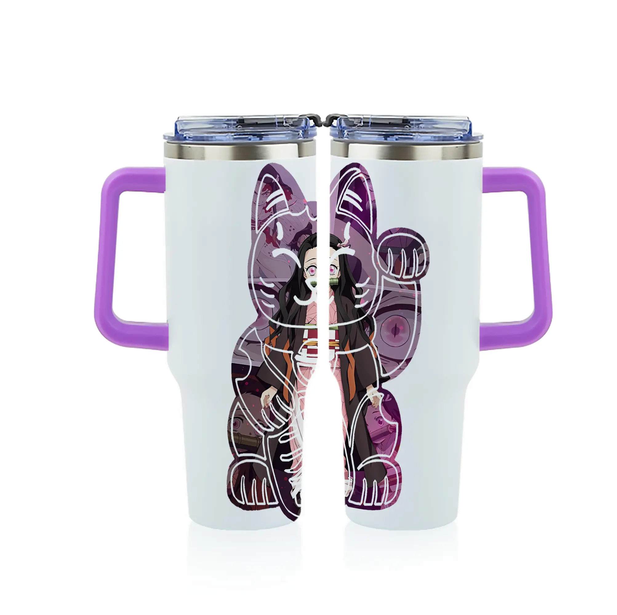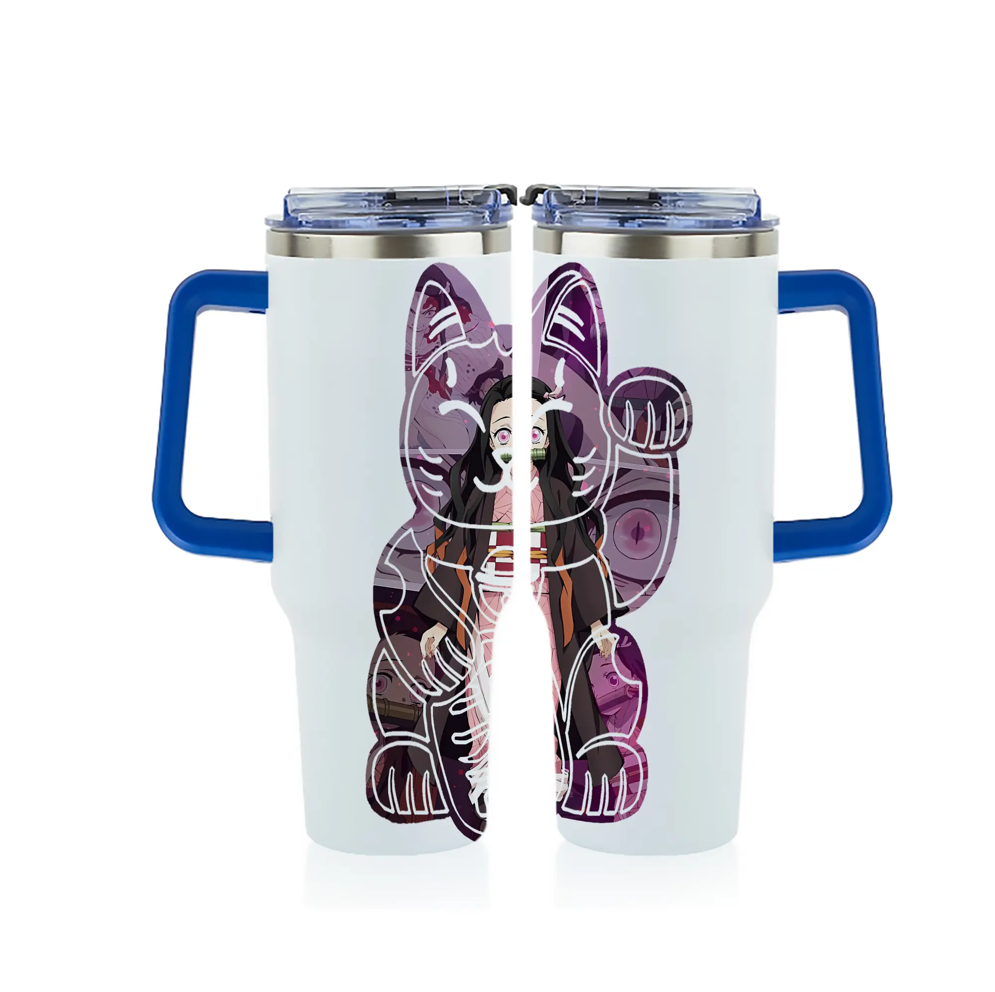鬼滅の刃 グッズ,竈門 禰豆子 - 1200mL フルプリント車用タンブラー ・ 304ステンレス 内側 ・ 201ステンレス 外側 ・ 保温 保冷 ・ 通勤 ドライブ アウトドア用