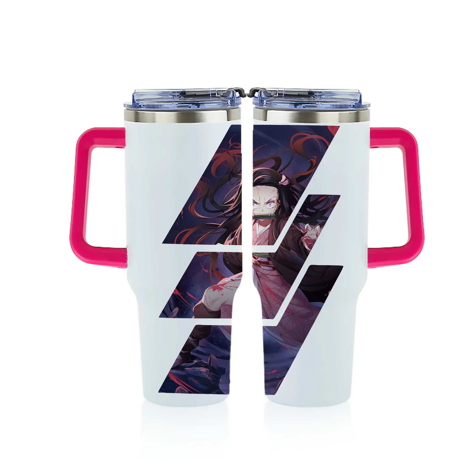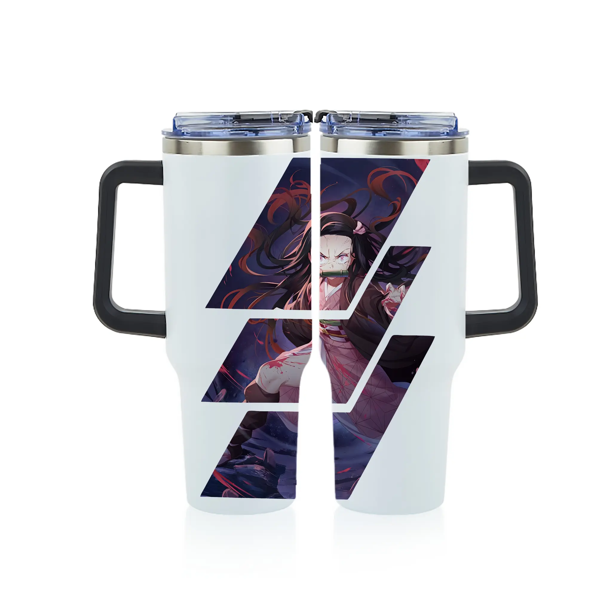 鬼滅の刃 グッズ,竈門 禰豆子 - 1200mL フルプリント車用タンブラー ・ 304ステンレス 内側 ・ 201ステンレス 外側 ・ 保温 保冷 ・ 通勤 ドライブ アウトドア用