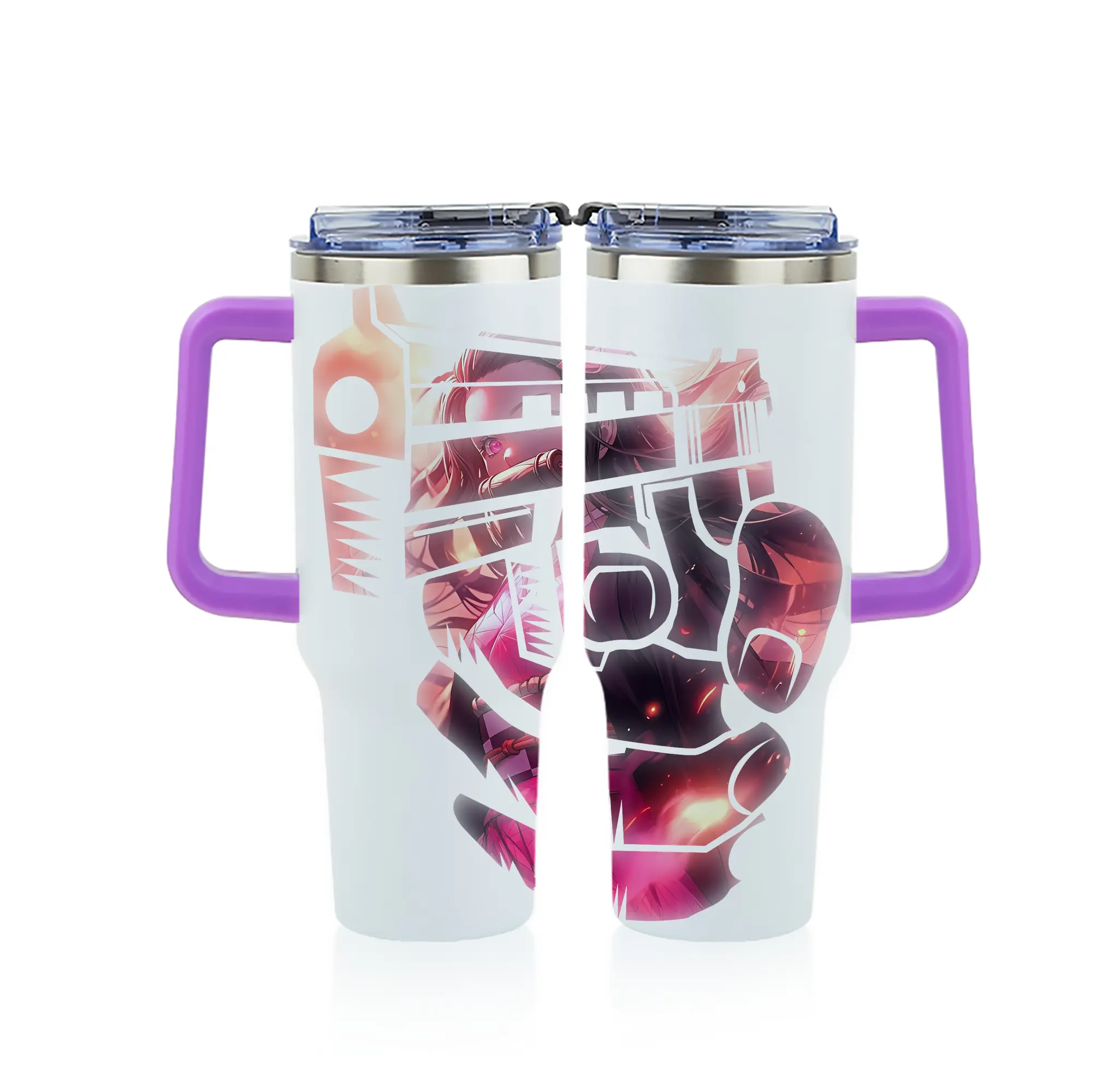 鬼滅の刃 グッズ,竈門 禰豆子 - 1200mL フルプリント車用タンブラー ・ 304ステンレス 内側 ・ 201ステンレス 外側 ・ 保温 保冷 ・ 通勤 ドライブ アウトドア用
