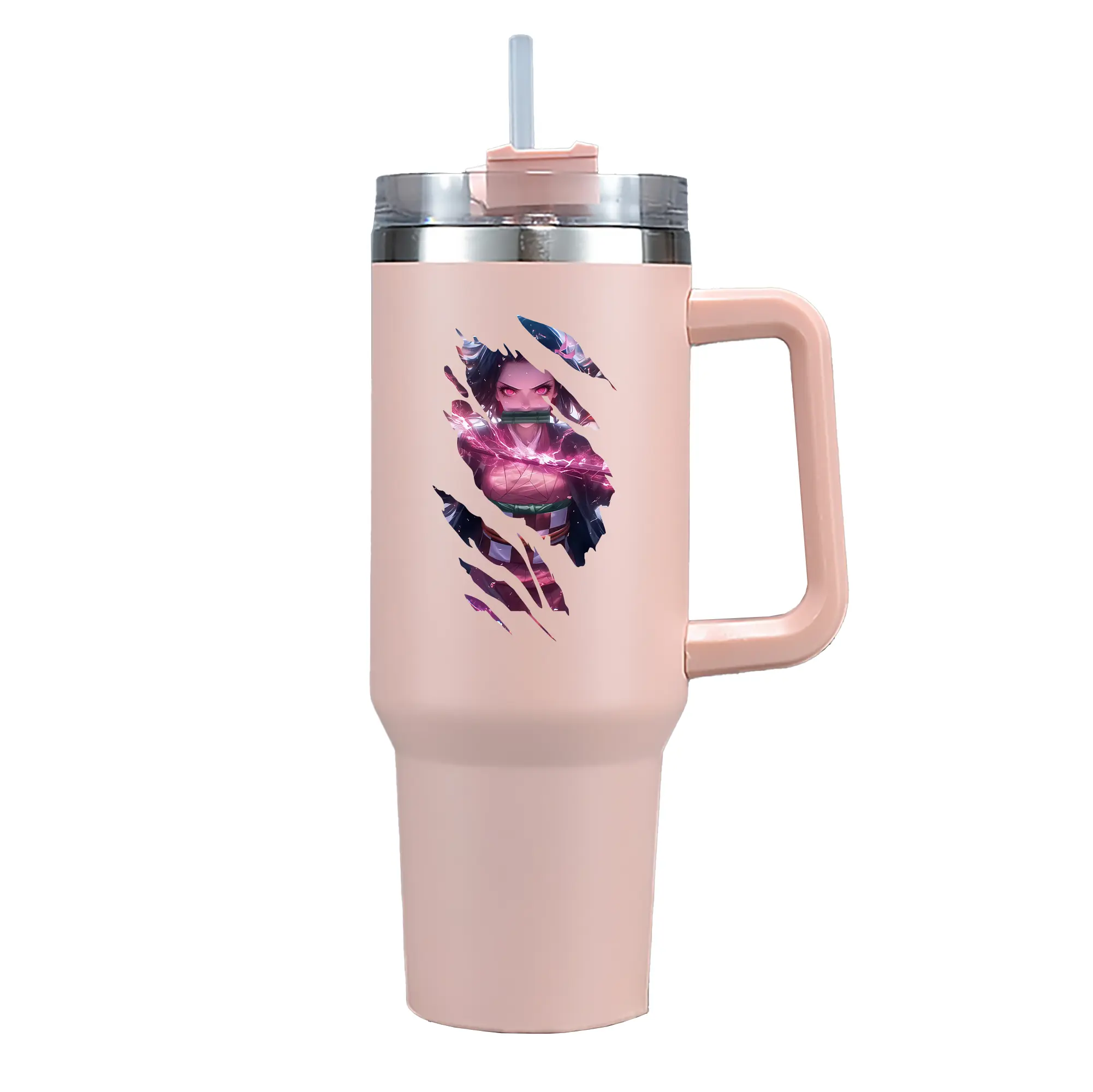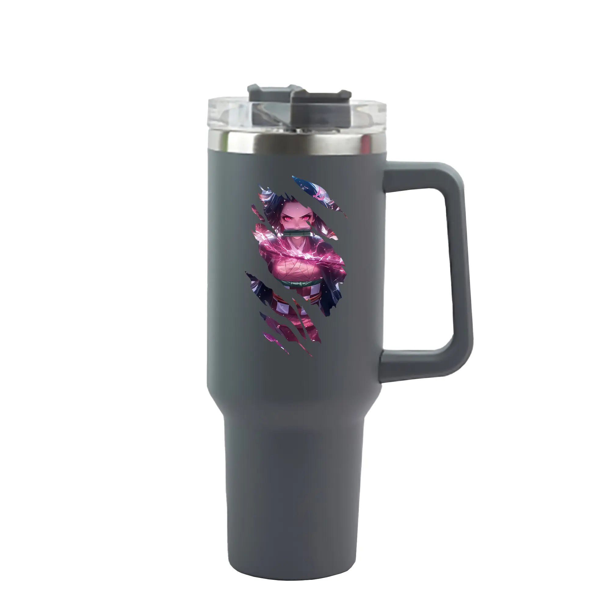 鬼滅の刃 グッズ,竈門 禰豆子 - 1200mL 車用タンブラー ・ クリスタルステッカー ・ 304ステンレス 内側 ・ 201ステンレス 外側 ・ 保温 保冷 ・ ハンドル&ストロー付き ・ 通勤 ドライブ アウトドア用