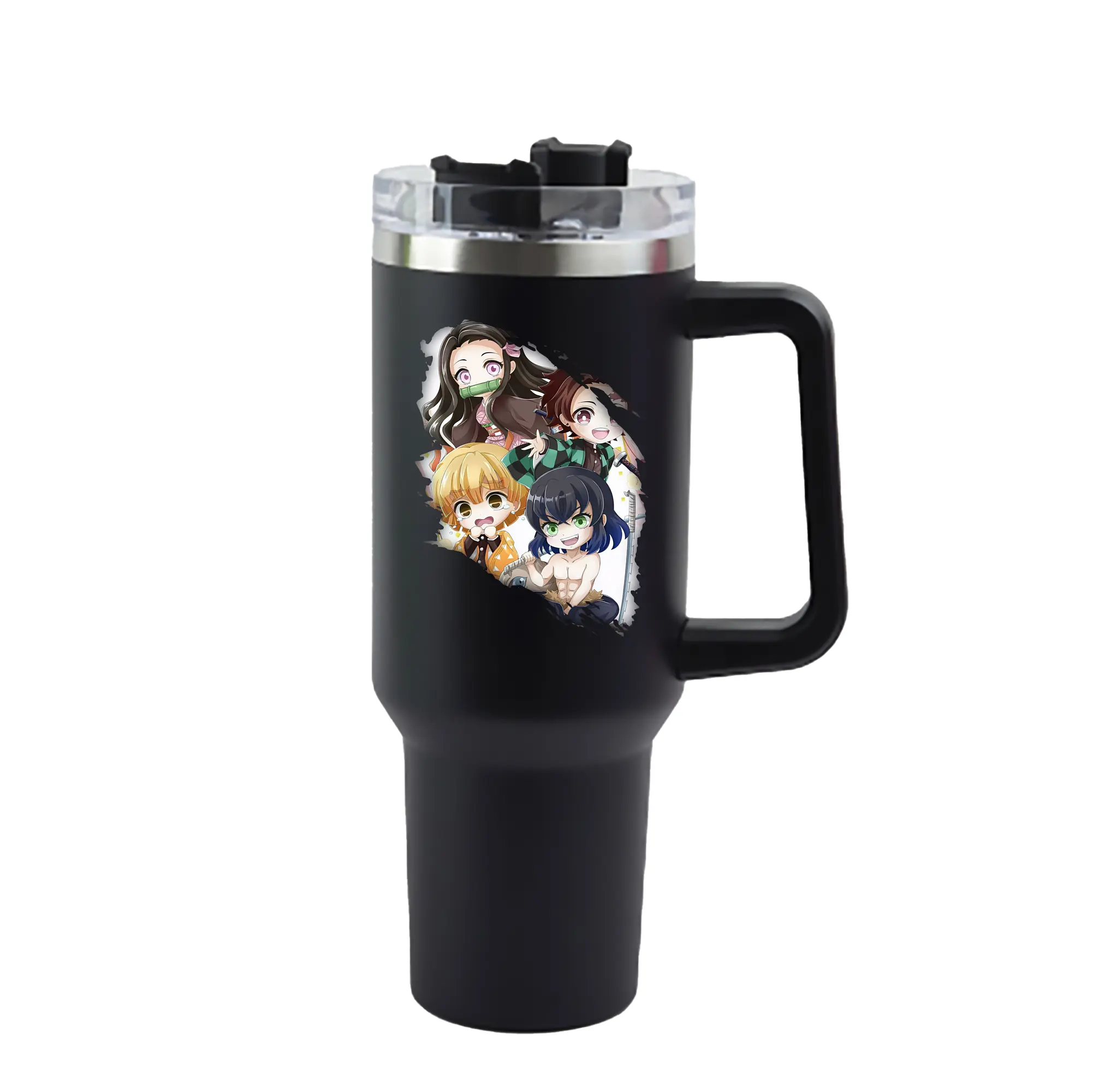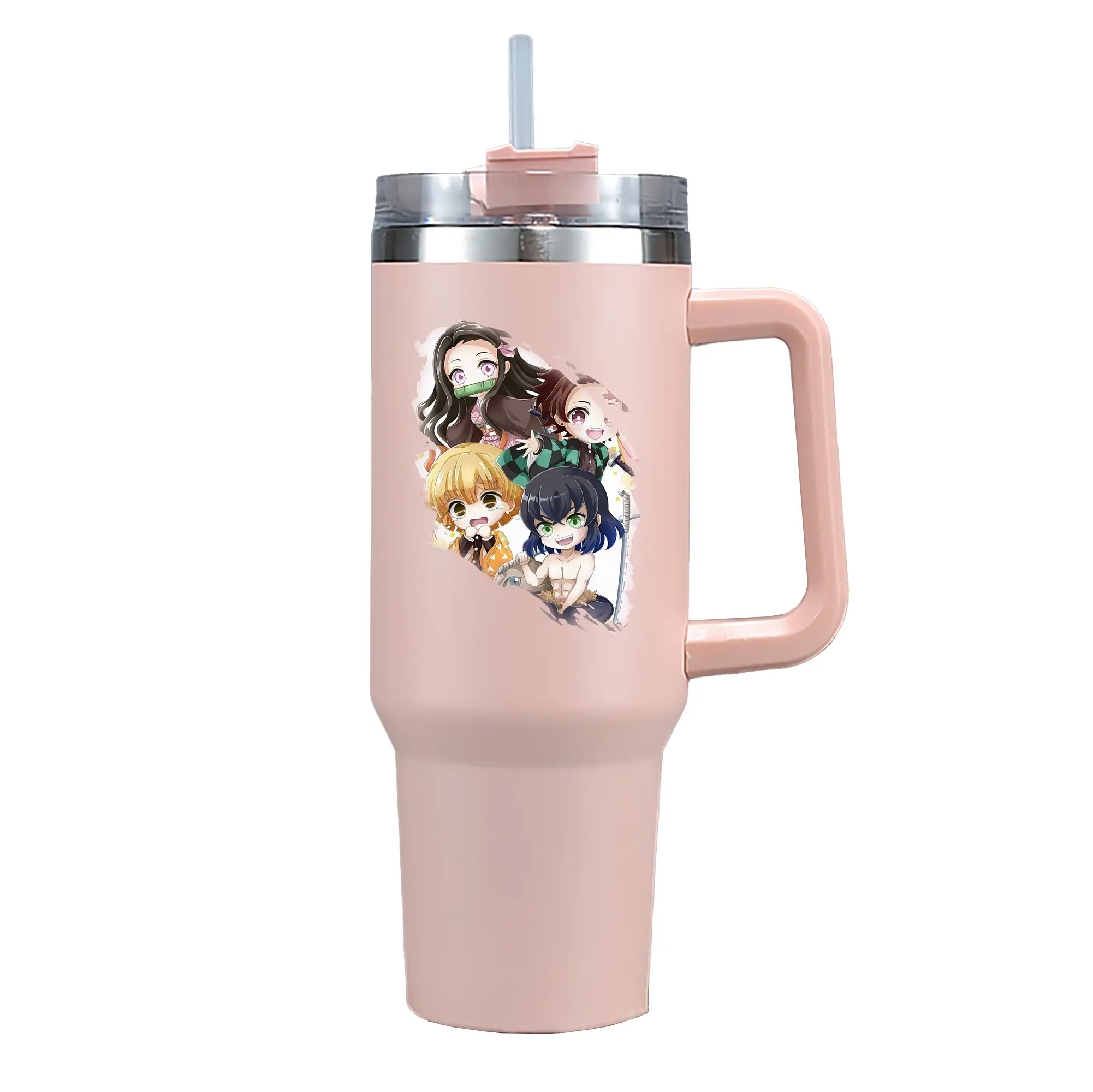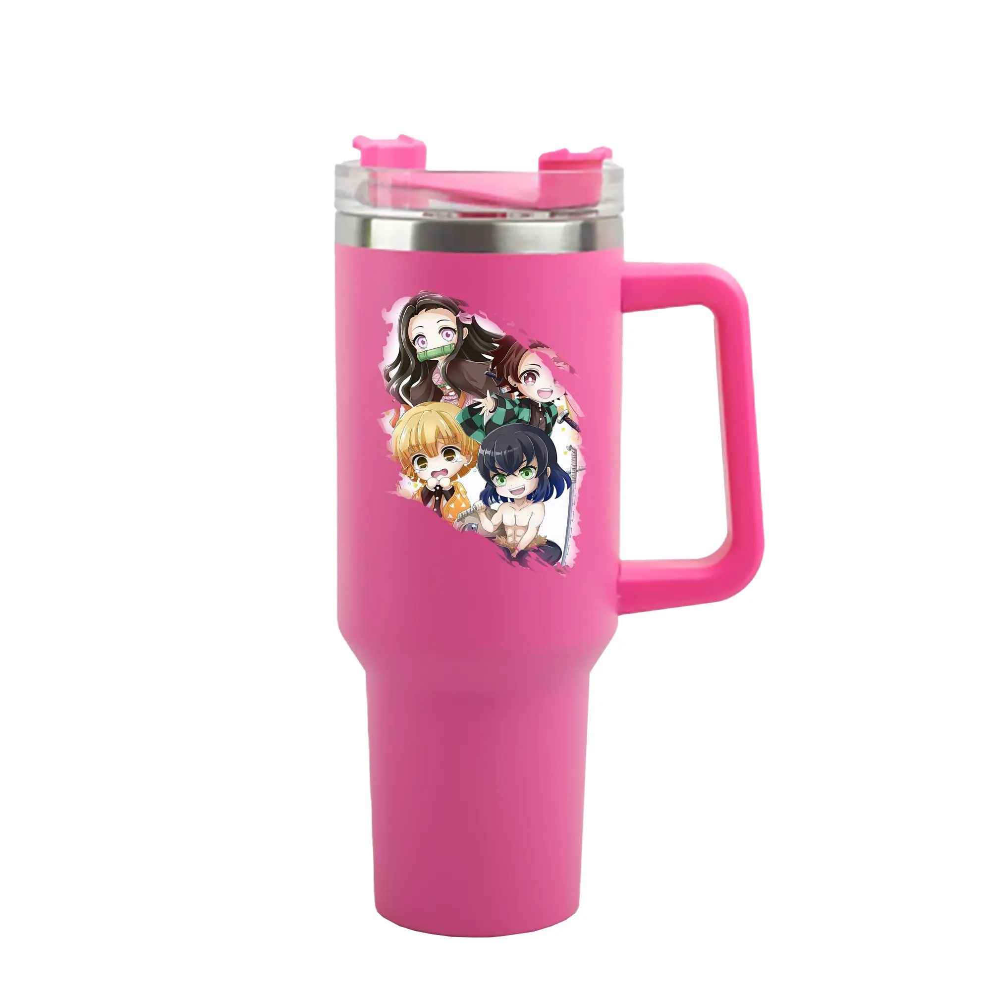 鬼滅の刃 グッズ,竈門 禰豆子 - 1200mL 車用タンブラー ・ クリスタルステッカー ・ 304ステンレス 内側 ・ 201ステンレス 外側 ・ 保温 保冷 ・ ハンドル&ストロー付き ・ 通勤 ドライブ アウトドア用