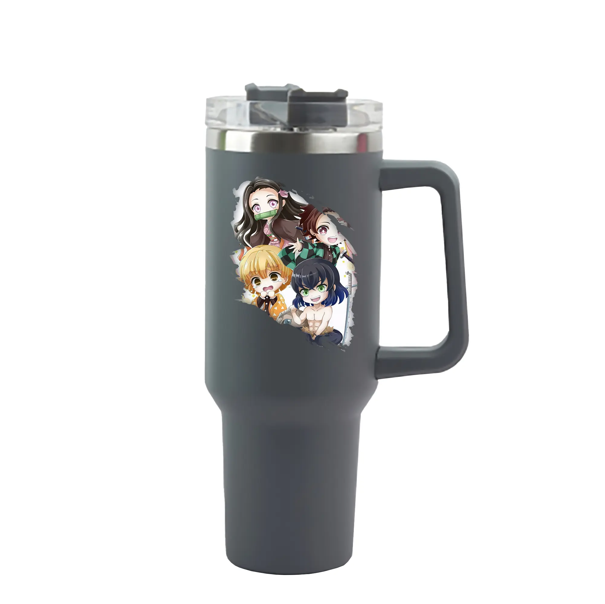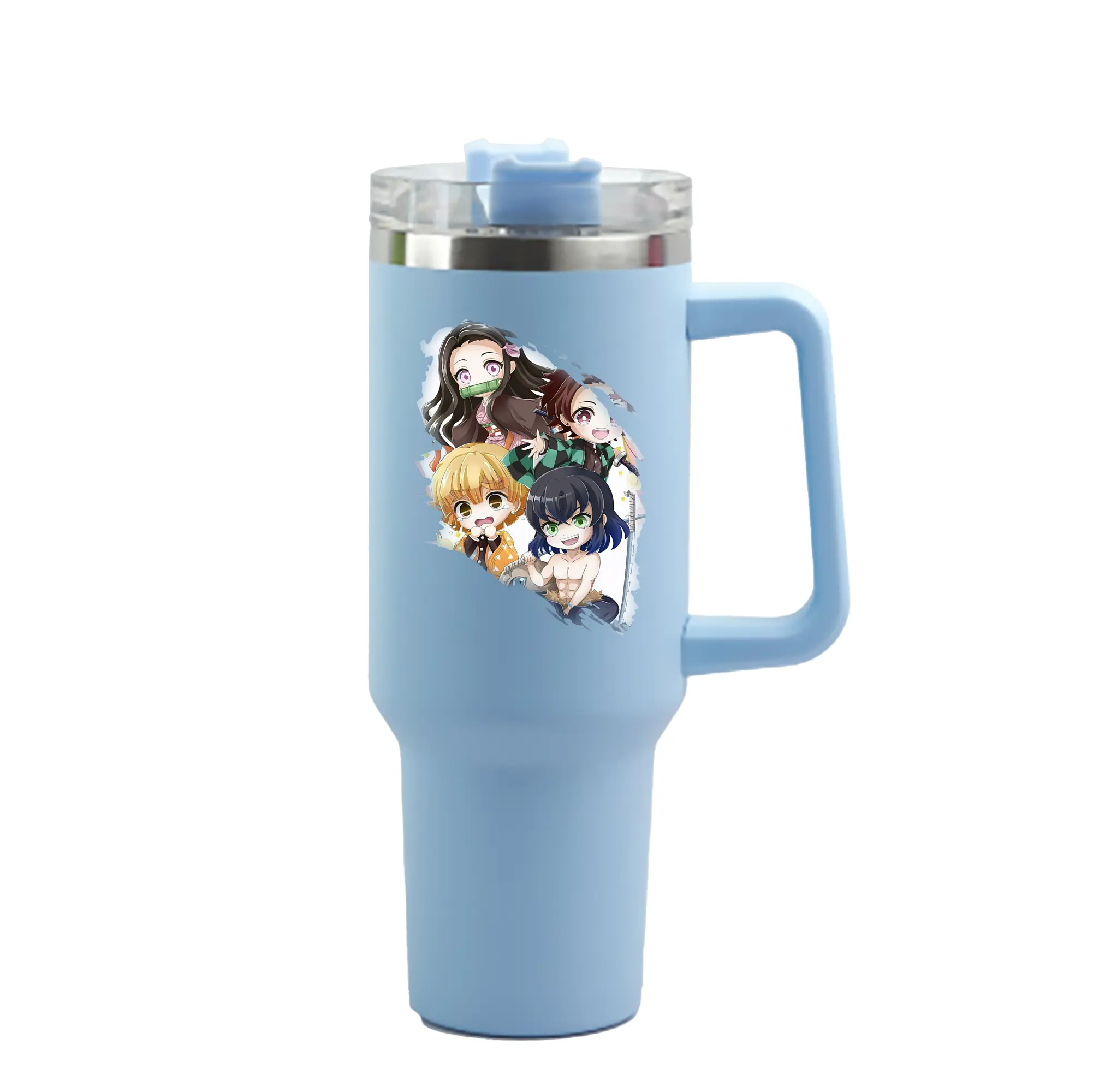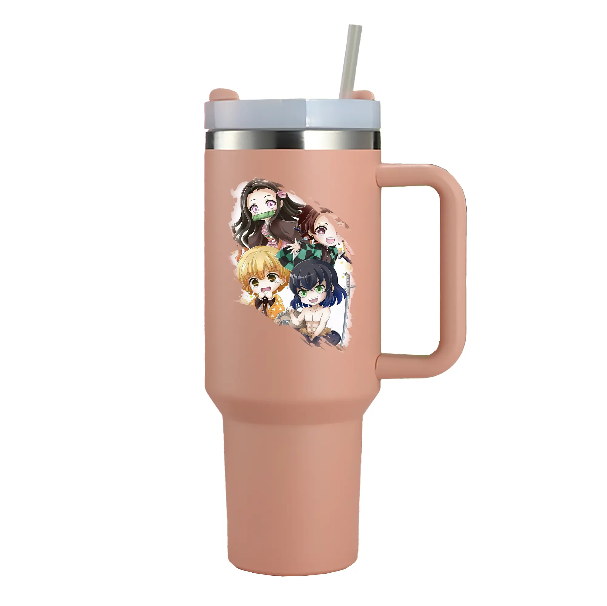 鬼滅の刃 グッズ,竈門 禰豆子 - 1200mL 車用タンブラー ・ クリスタルステッカー ・ 304ステンレス 内側 ・ 201ステンレス 外側 ・ 保温 保冷 ・ ハンドル&ストロー付き ・ 通勤 ドライブ アウトドア用