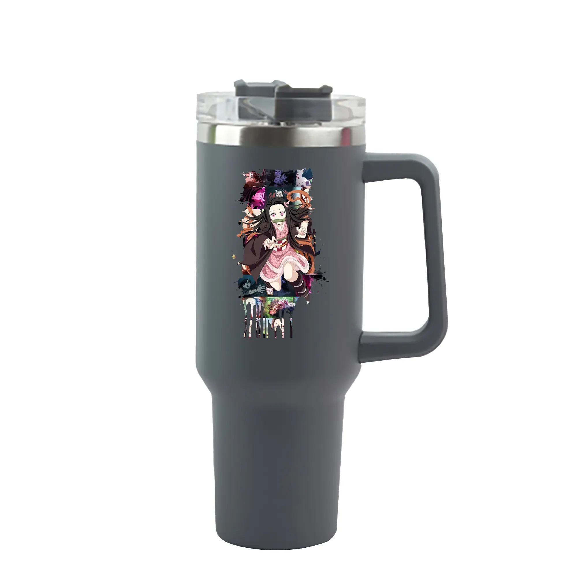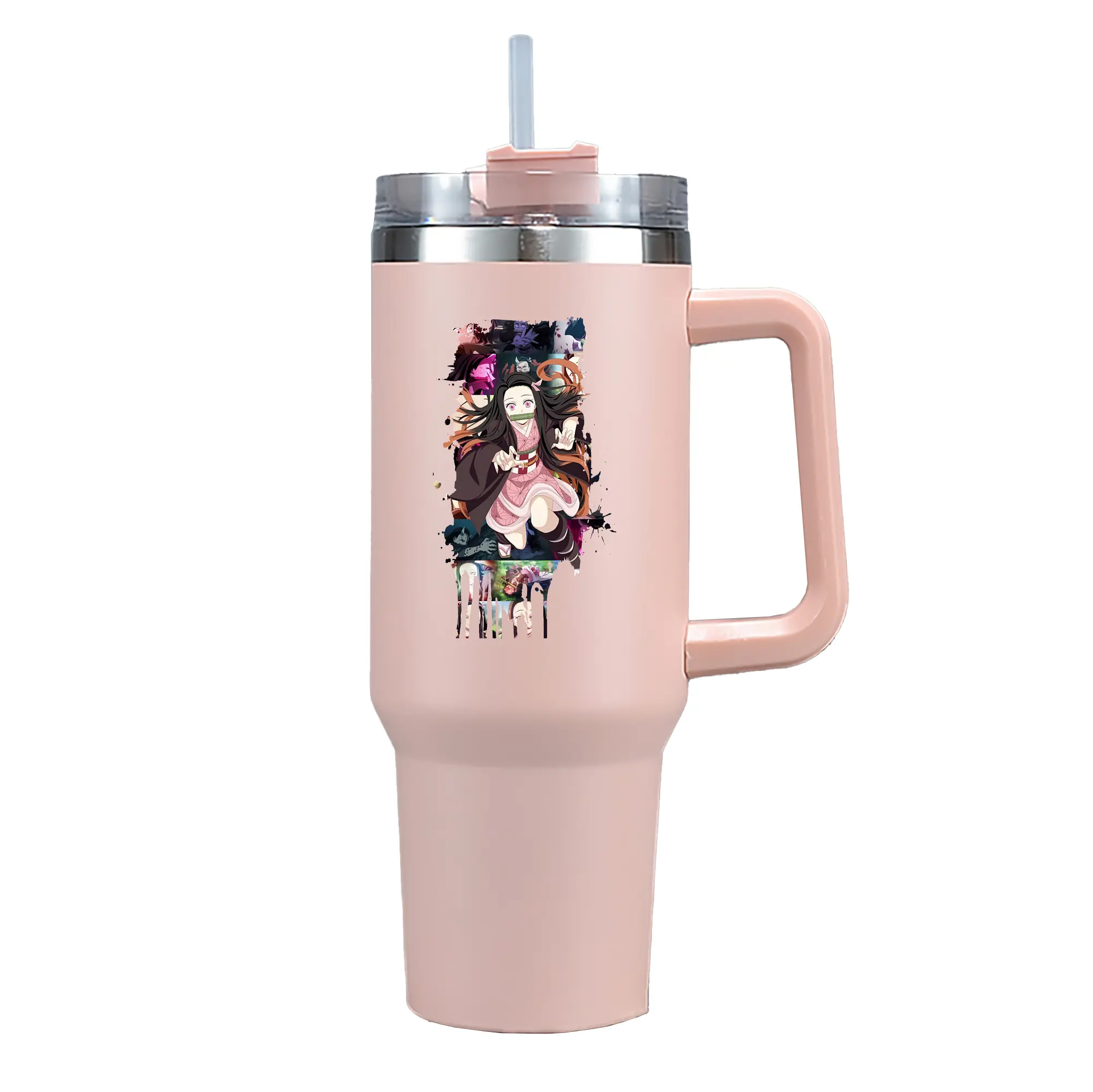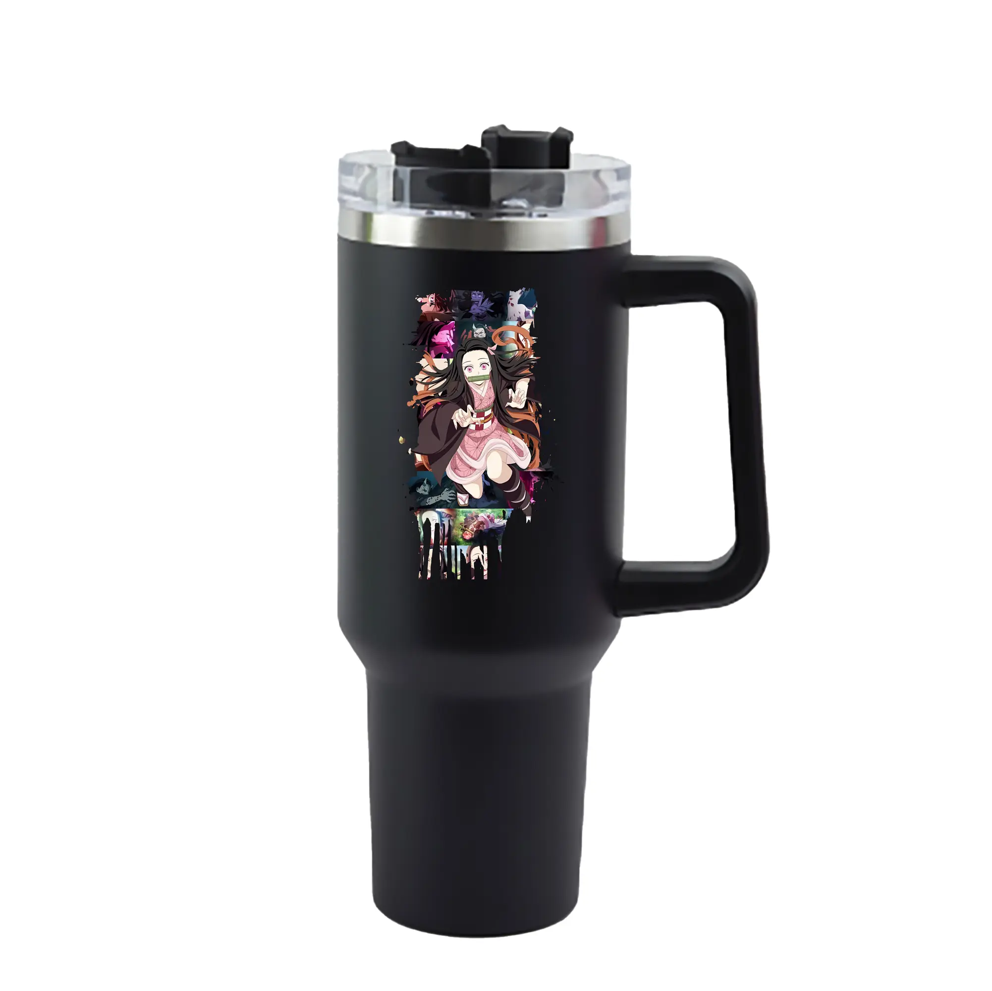 鬼滅の刃 グッズ,竈門 禰豆子 - 1200mL 車用タンブラー ・ クリスタルステッカー ・ 304ステンレス 内側 ・ 201ステンレス 外側 ・ 保温 保冷 ・ ハンドル&ストロー付き ・ 通勤 ドライブ アウトドア用