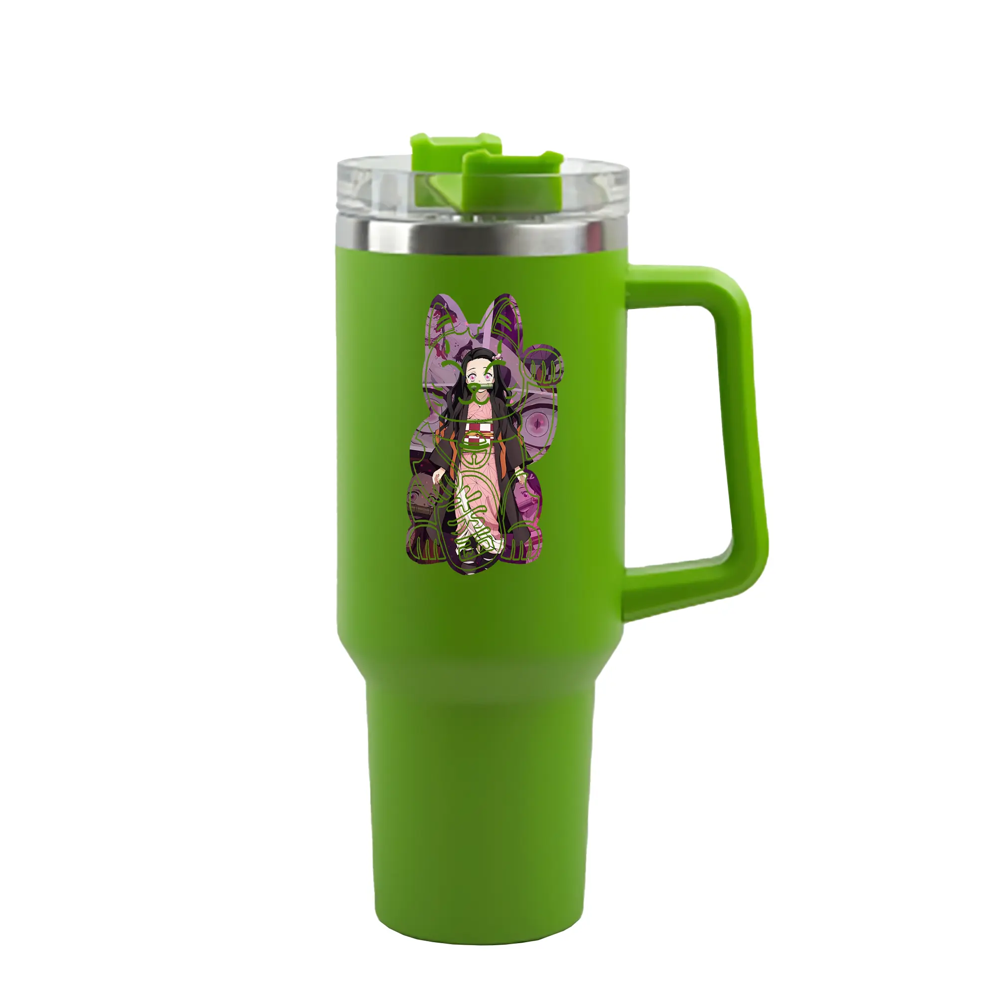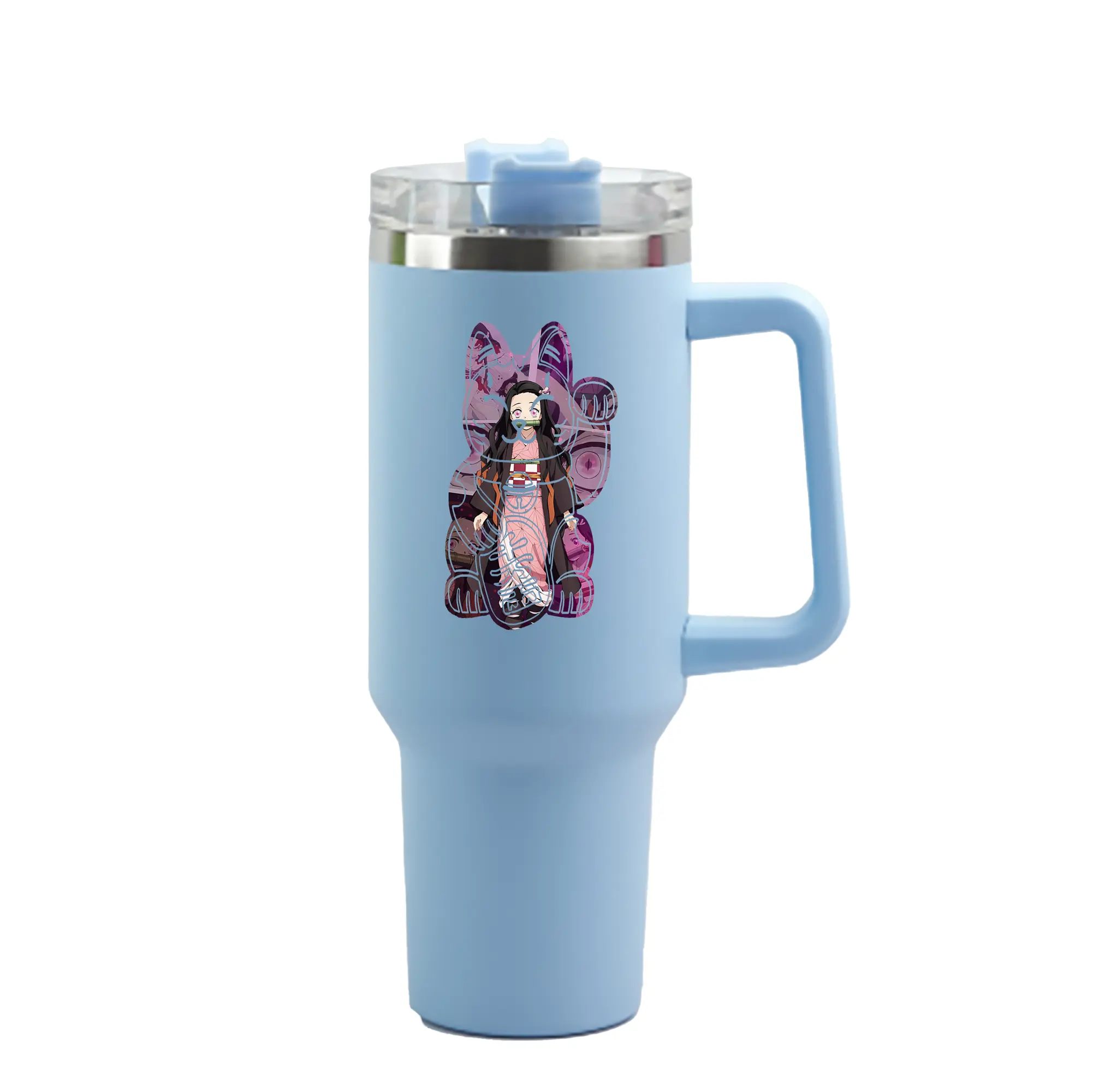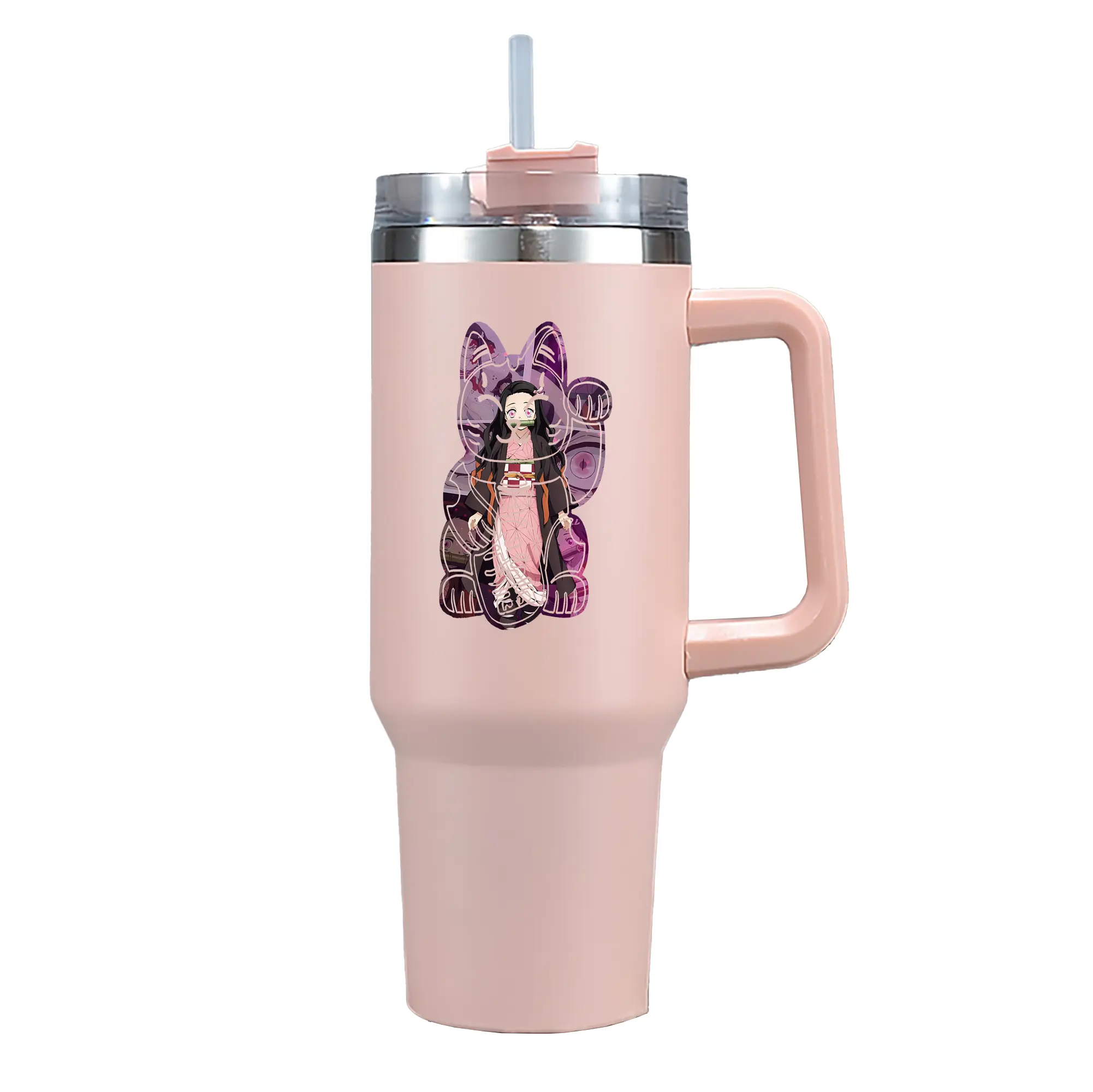 鬼滅の刃 グッズ,竈門 禰豆子 - 1200mL 車用タンブラー ・ クリスタルステッカー ・ 304ステンレス 内側 ・ 201ステンレス 外側 ・ 保温 保冷 ・ ハンドル&ストロー付き ・ 通勤 ドライブ アウトドア用