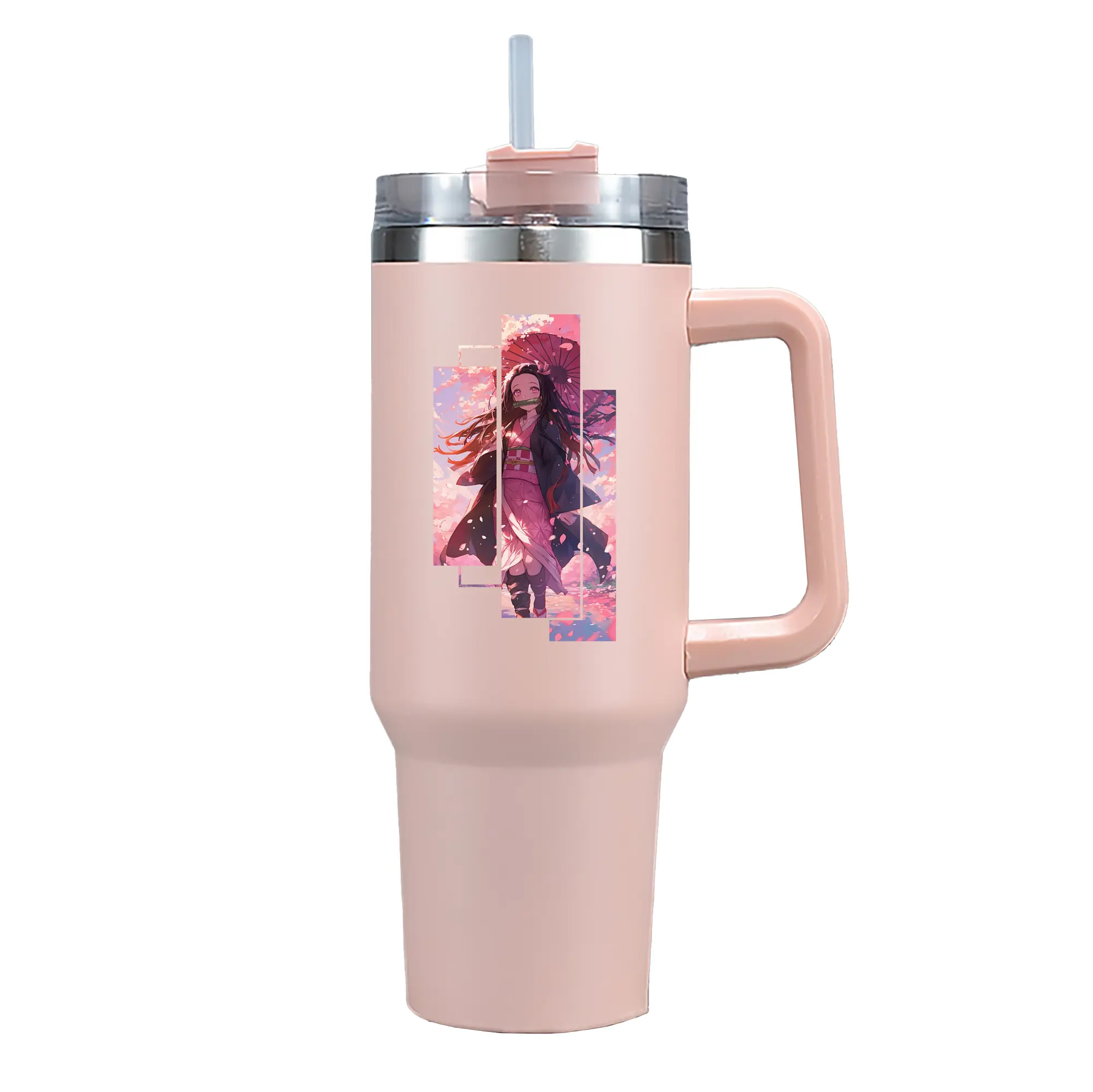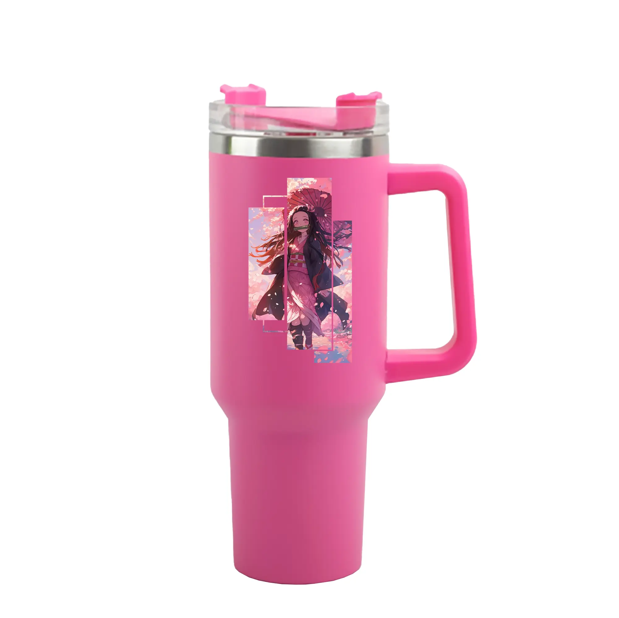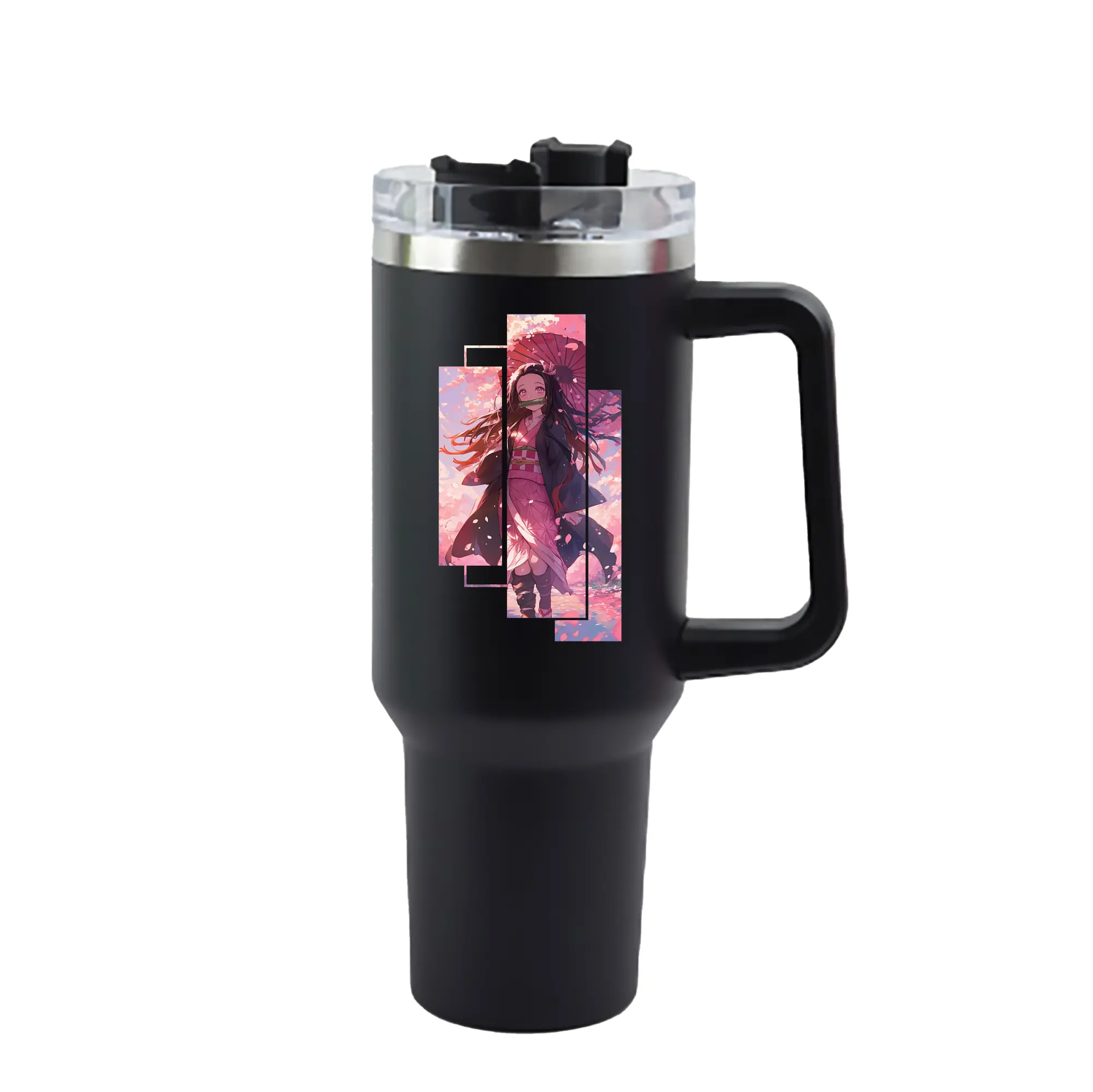 鬼滅の刃 グッズ,竈門 禰豆子 - 1200mL 車用タンブラー ・ クリスタルステッカー ・ 304ステンレス 内側 ・ 201ステンレス 外側 ・ 保温 保冷 ・ ハンドル&ストロー付き ・ 通勤 ドライブ アウトドア用