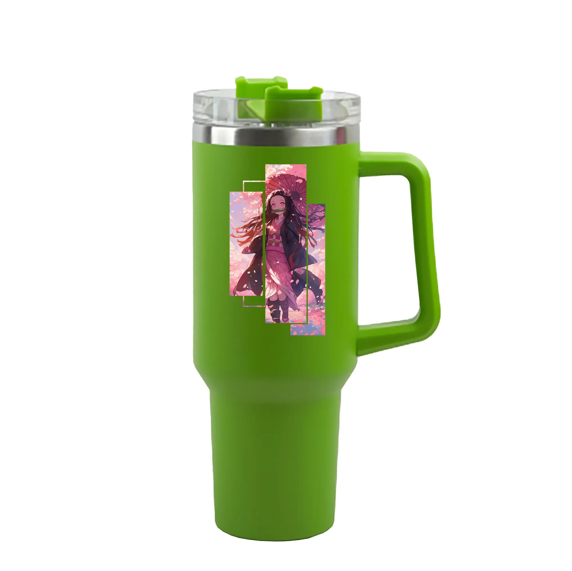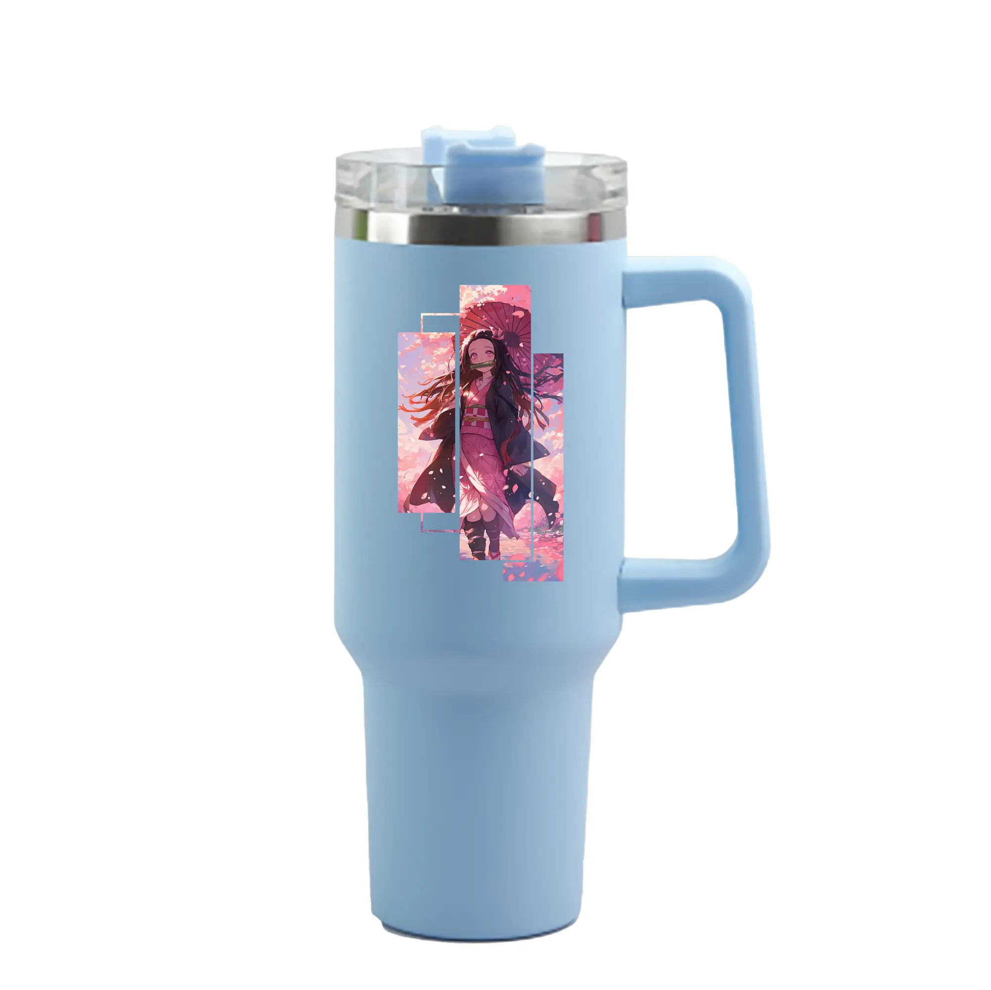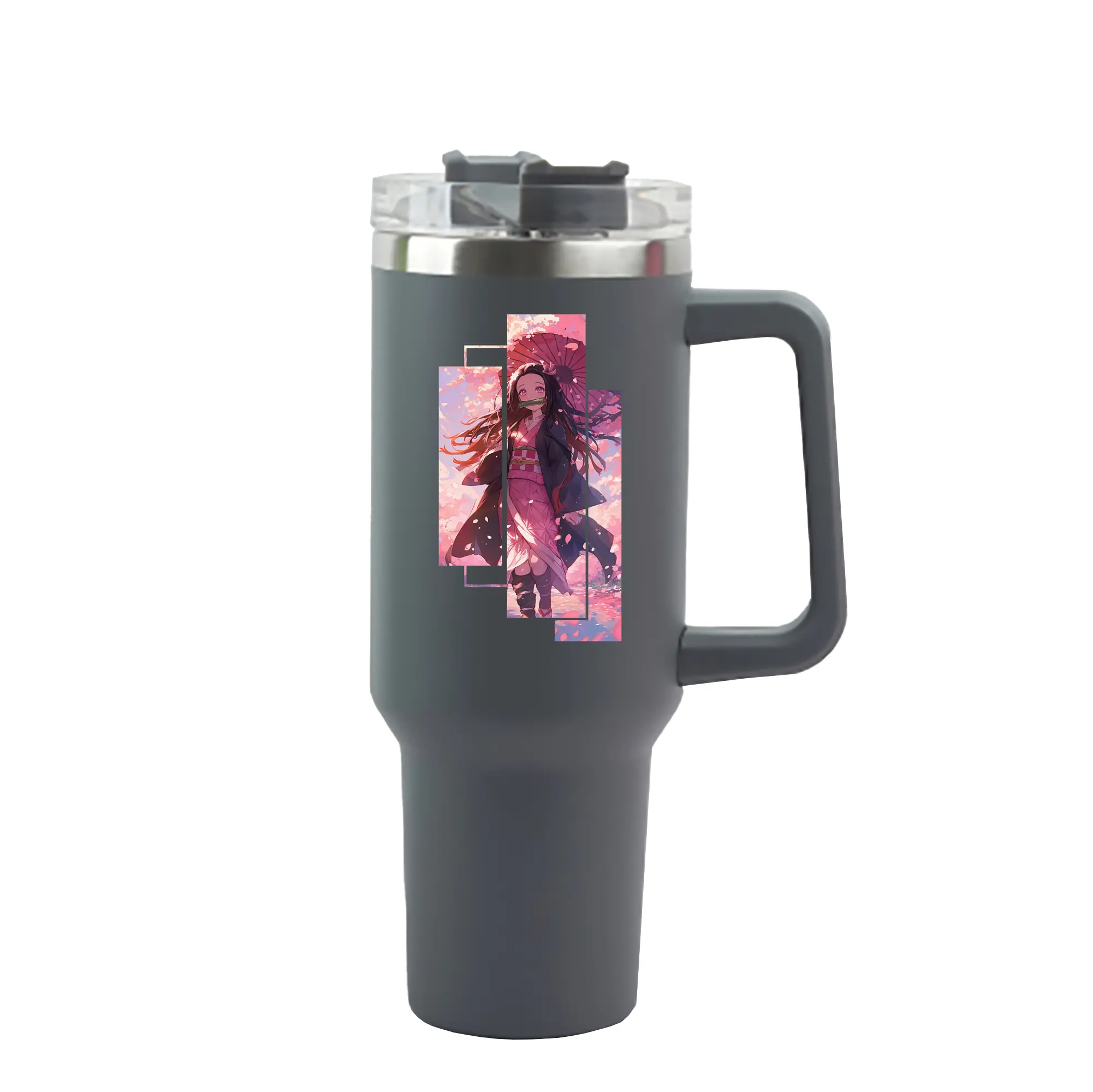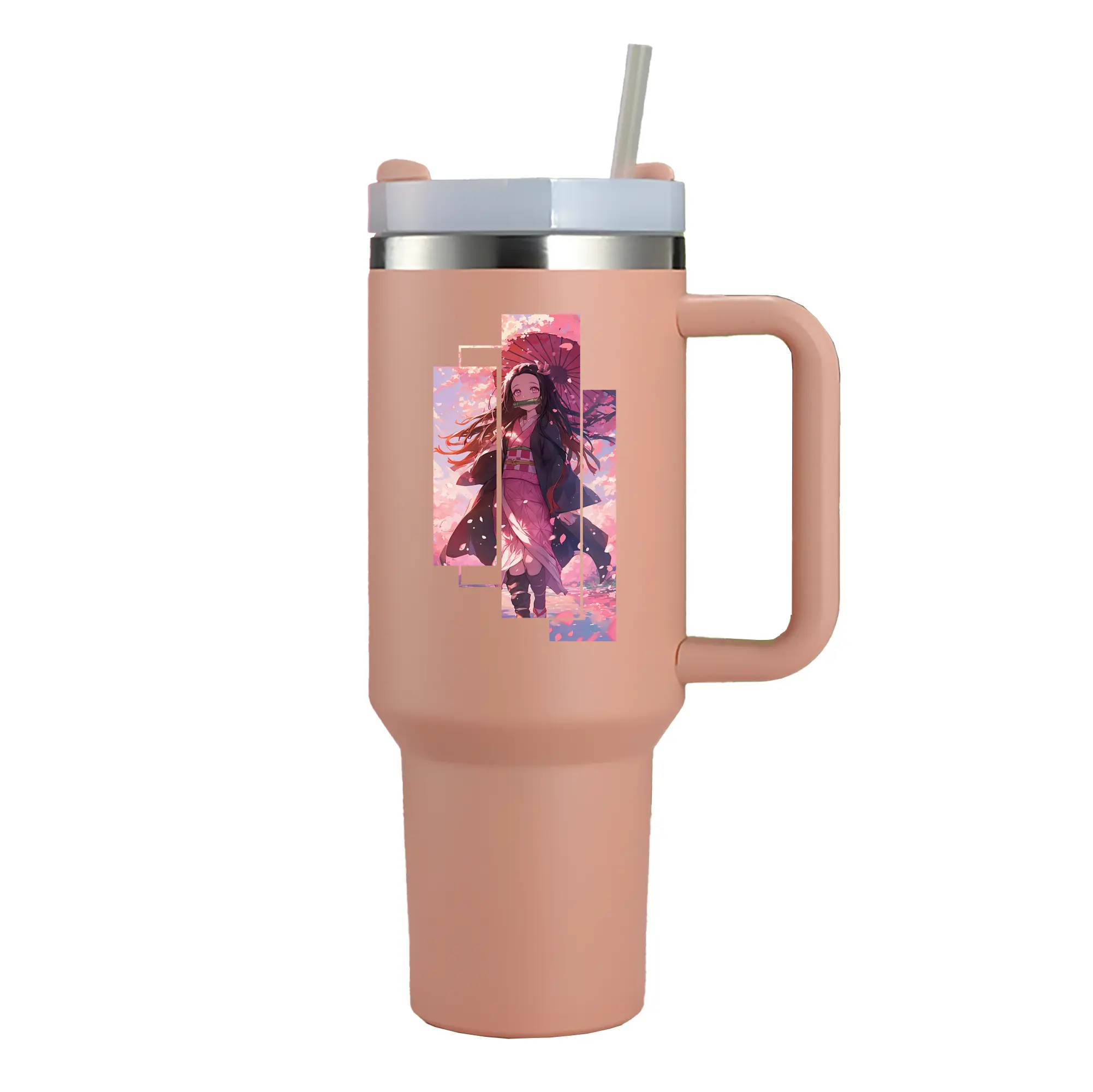 鬼滅の刃 グッズ,竈門 禰豆子 - 1200mL 車用タンブラー ・ クリスタルステッカー ・ 304ステンレス 内側 ・ 201ステンレス 外側 ・ 保温 保冷 ・ ハンドル&ストロー付き ・ 通勤 ドライブ アウトドア用