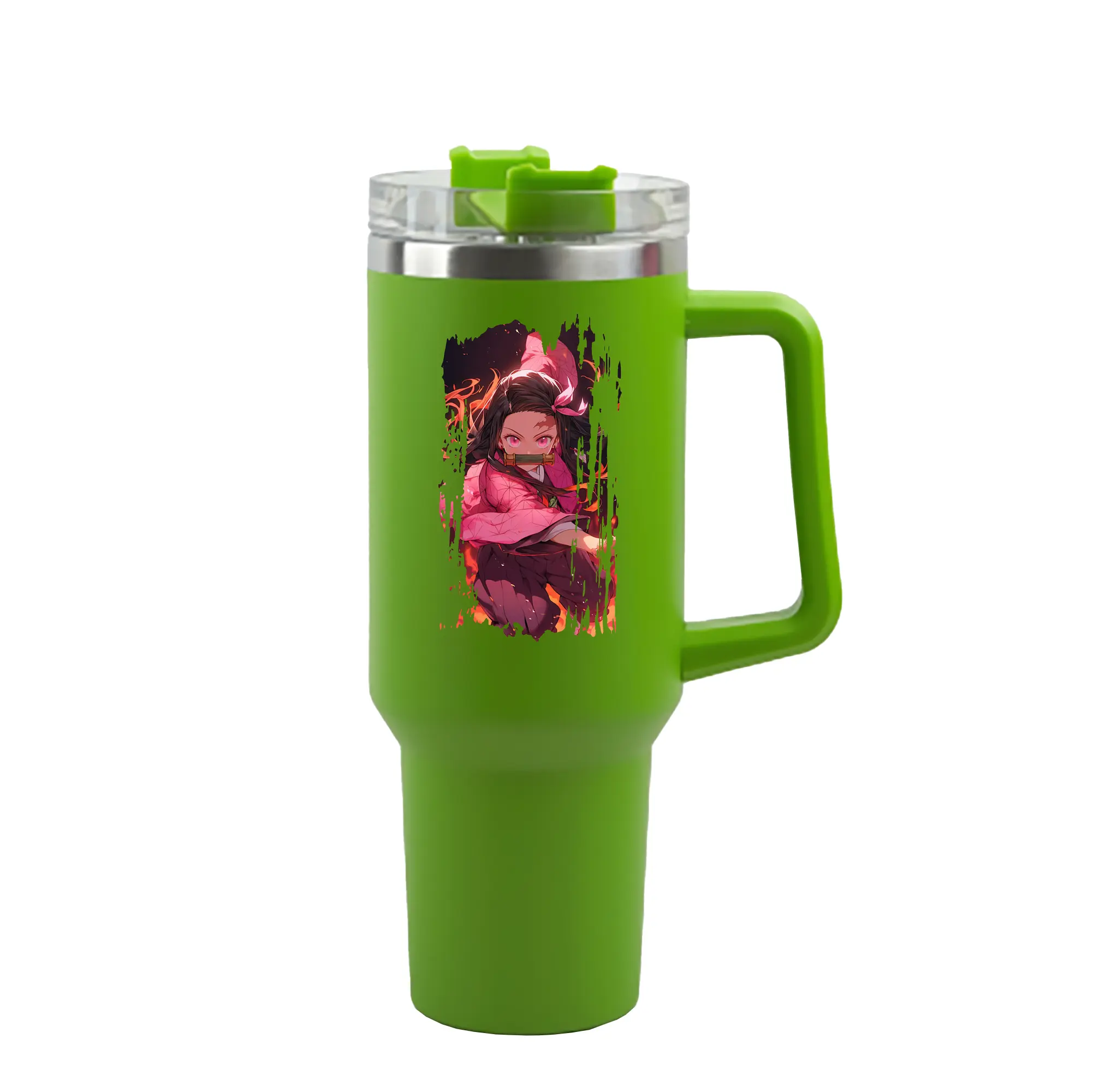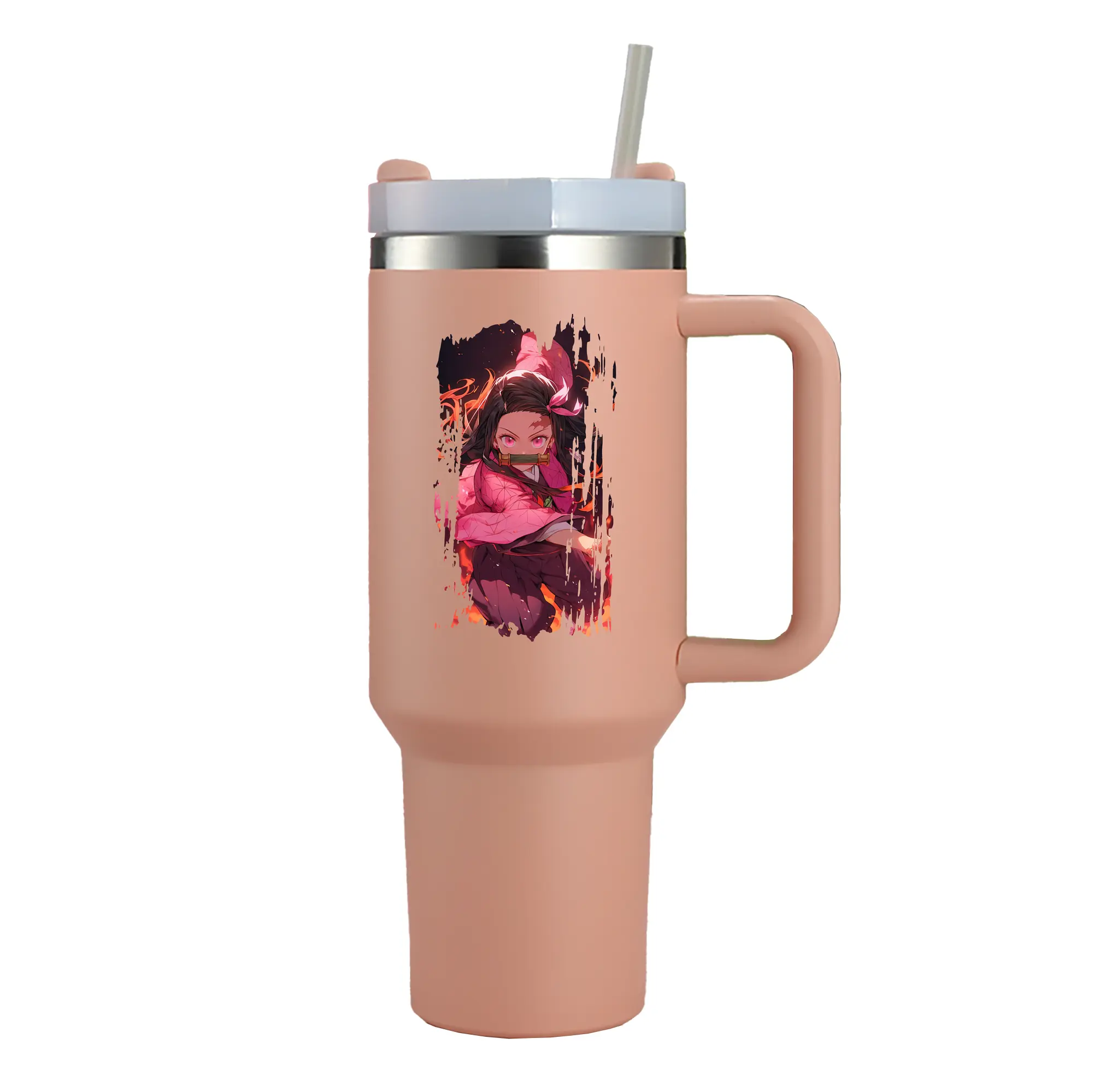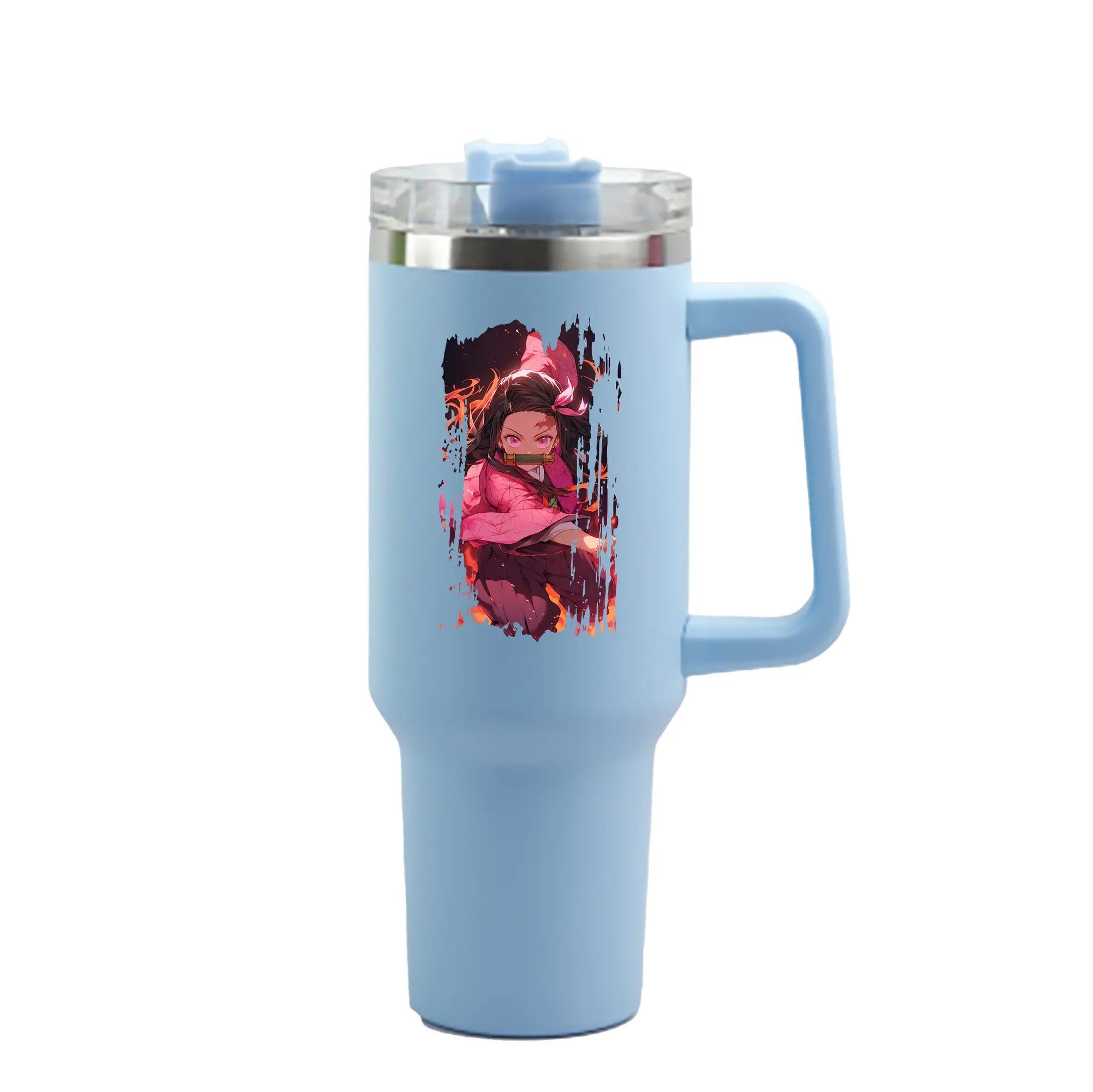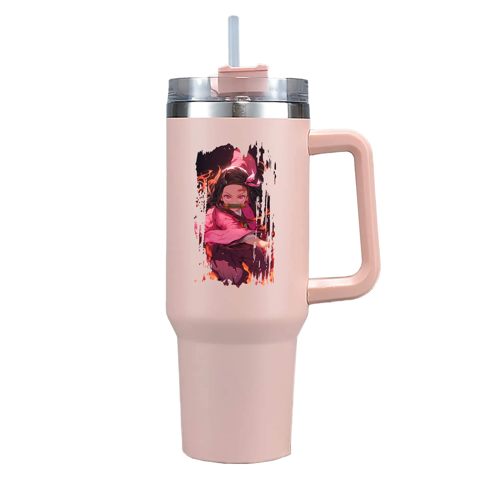 鬼滅の刃 グッズ,竈門 禰豆子 - 1200mL 車用タンブラー ・ クリスタルステッカー ・ 304ステンレス 内側 ・ 201ステンレス 外側 ・ 保温 保冷 ・ ハンドル&ストロー付き ・ 通勤 ドライブ アウトドア用