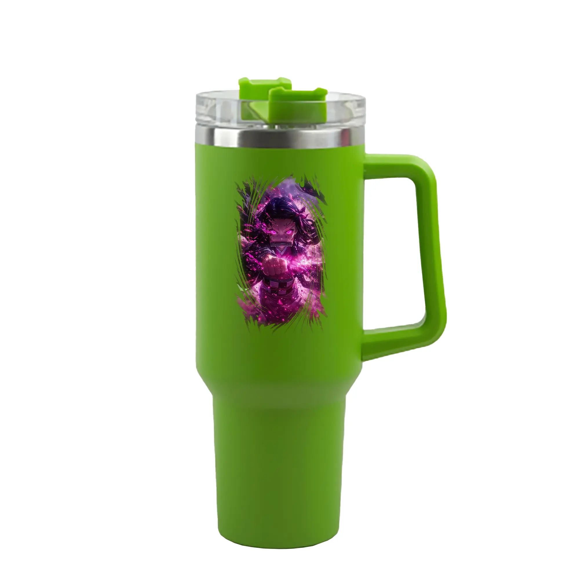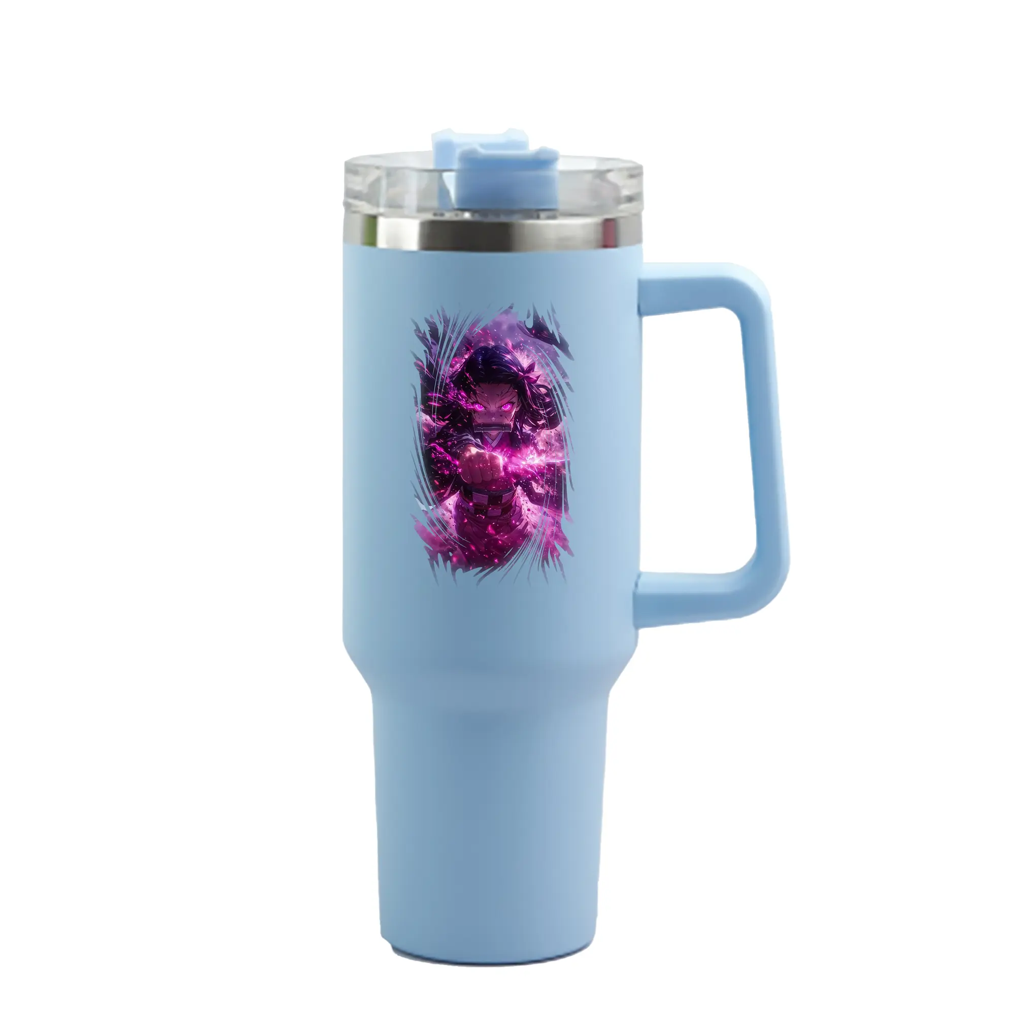 鬼滅の刃 グッズ,竈門 禰豆子 - 1200mL 車用タンブラー ・ クリスタルステッカー ・ 304ステンレス 内側 ・ 201ステンレス 外側 ・ 保温 保冷 ・ ハンドル&ストロー付き ・ 通勤 ドライブ アウトドア用