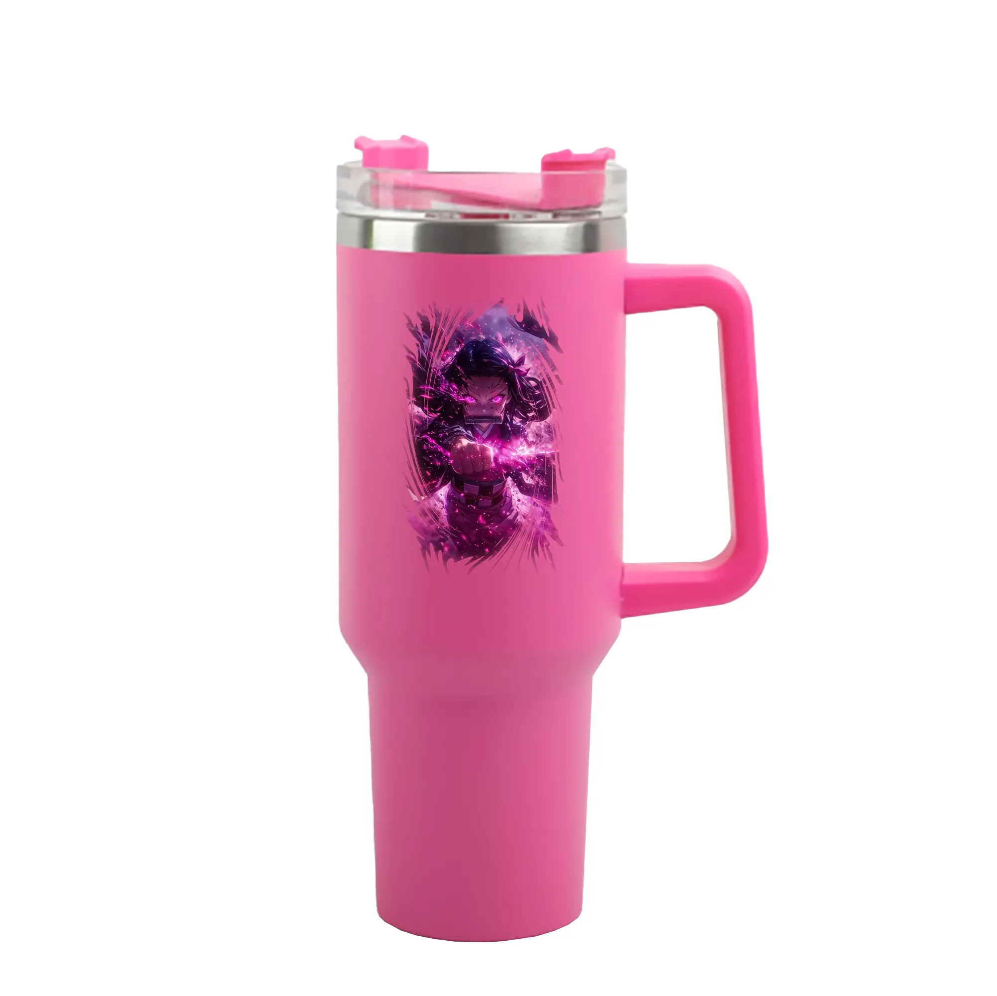 1200mL(40オンス)の大容量ハンドル付きカータンブラー。キラキラと輝くクリスタルステッカーデザインが、毎日の使用に華やかさをプラスします。食品グレード304ステンレスの内側と頑丈な201ステンレスの外側を採用し、耐久性・耐腐食性・安全性を兼ね備えています。