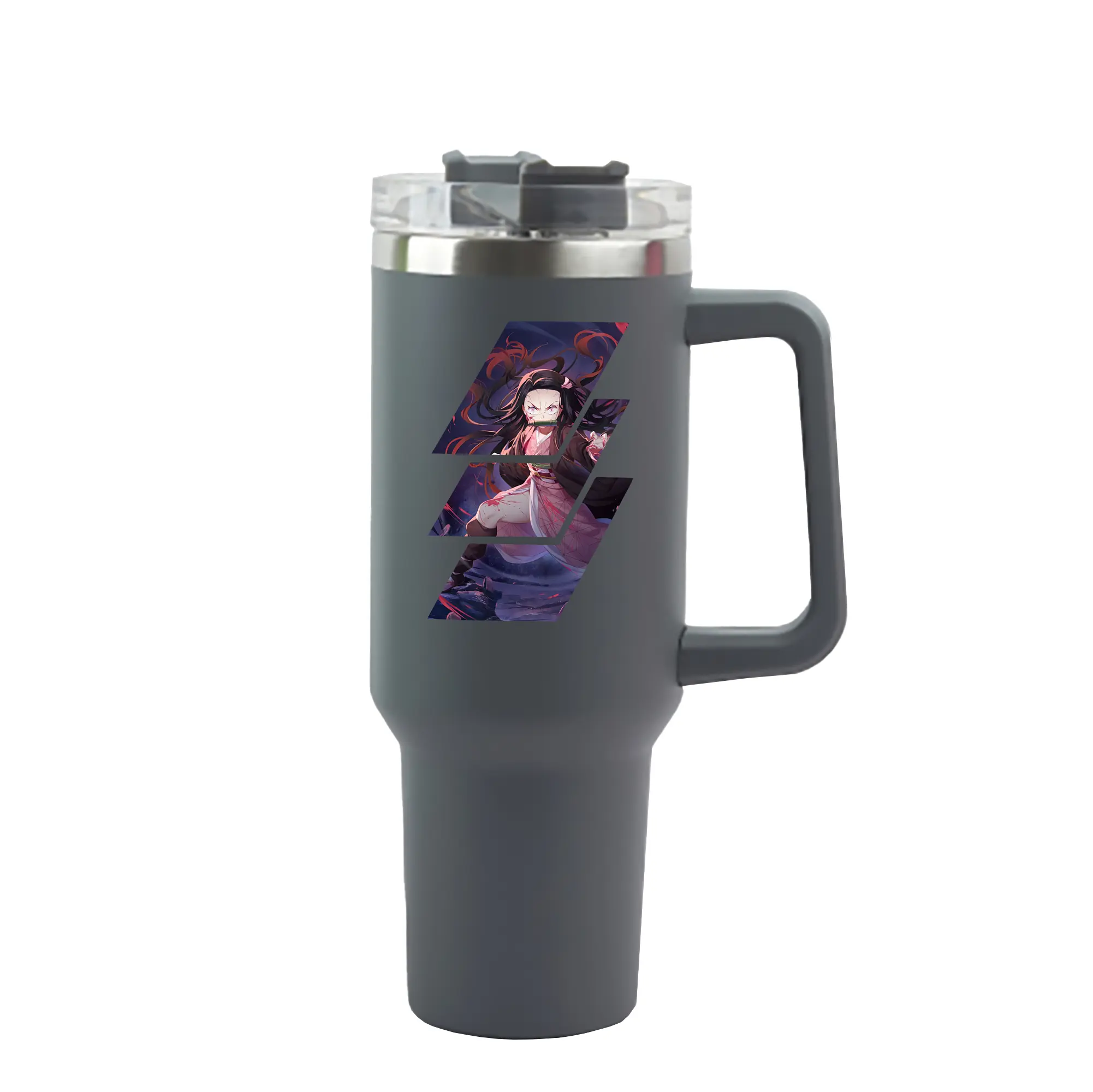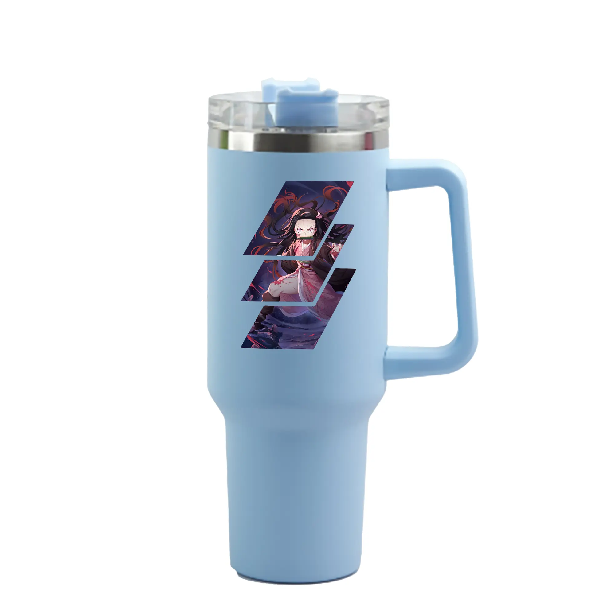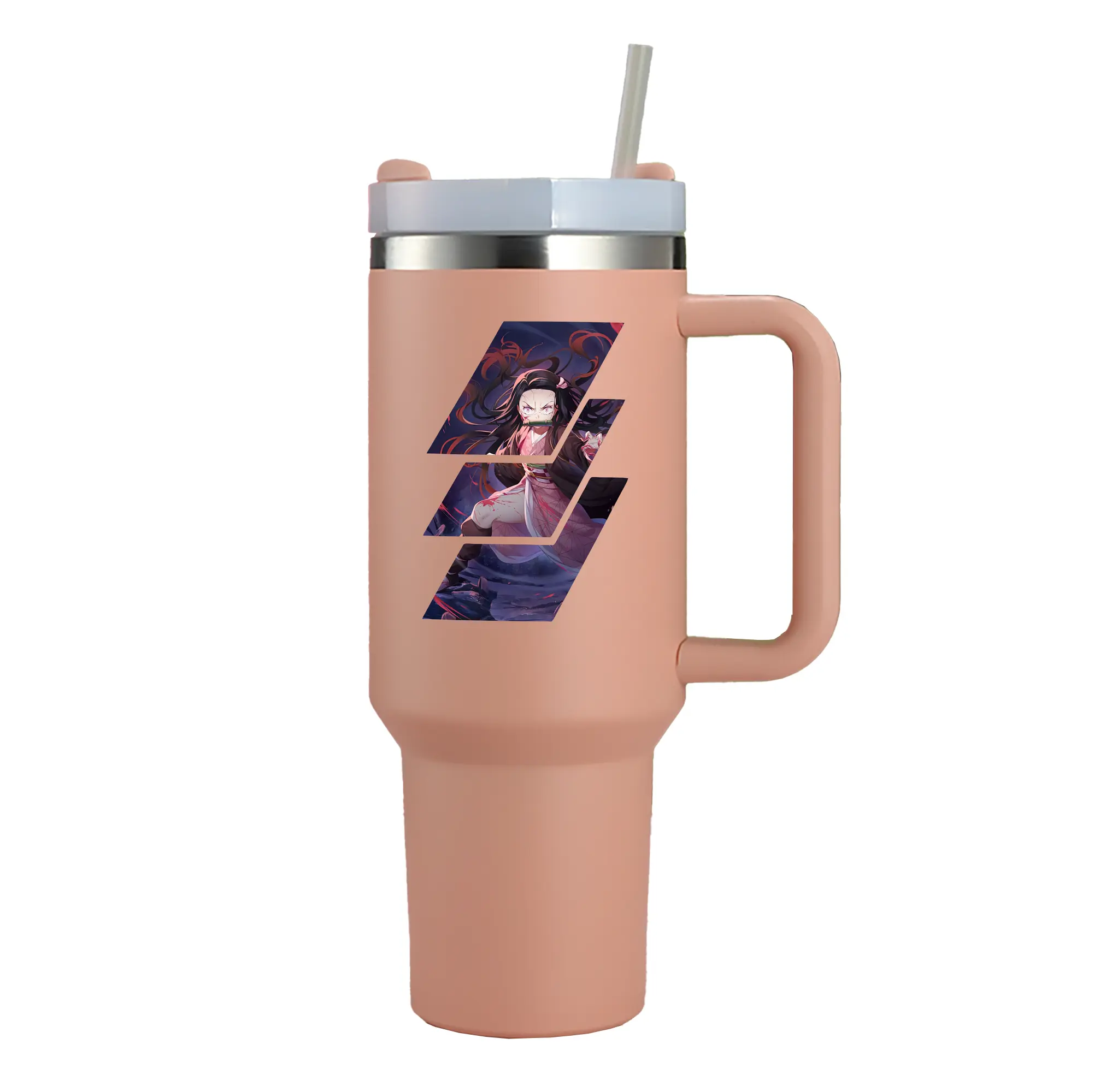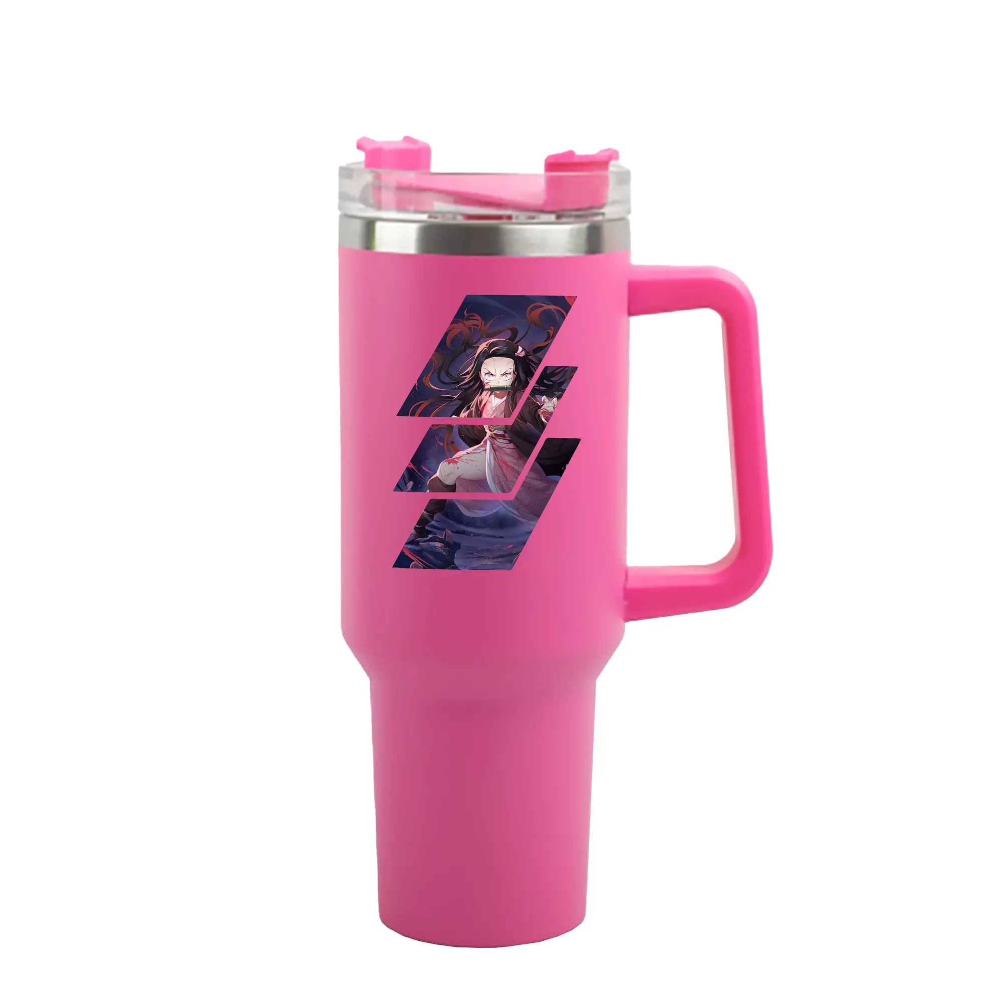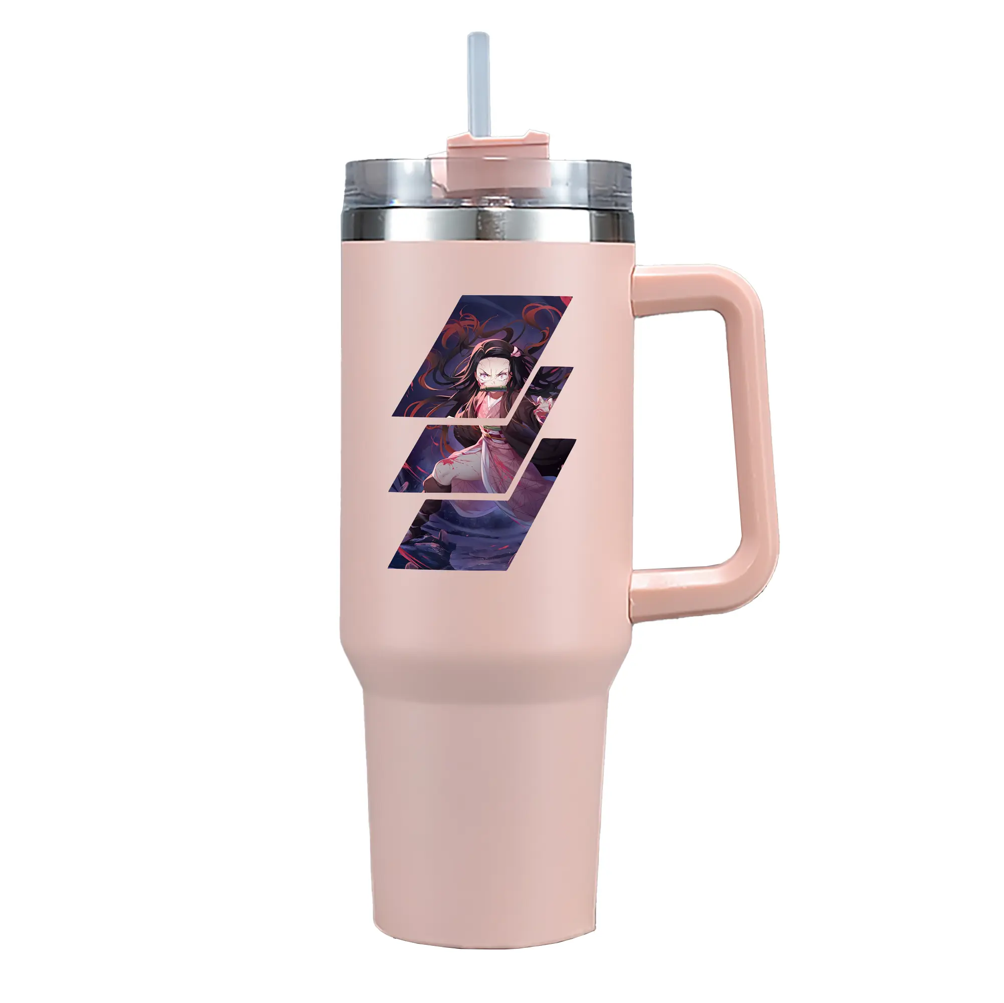 鬼滅の刃 グッズ,竈門 禰豆子 - 1200mL 車用タンブラー ・ クリスタルステッカー ・ 304ステンレス 内側 ・ 201ステンレス 外側 ・ 保温 保冷 ・ ハンドル&ストロー付き ・ 通勤 ドライブ アウトドア用