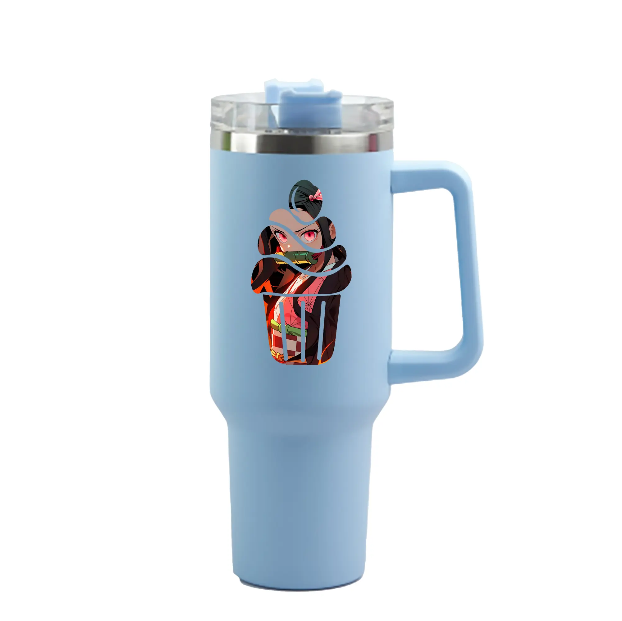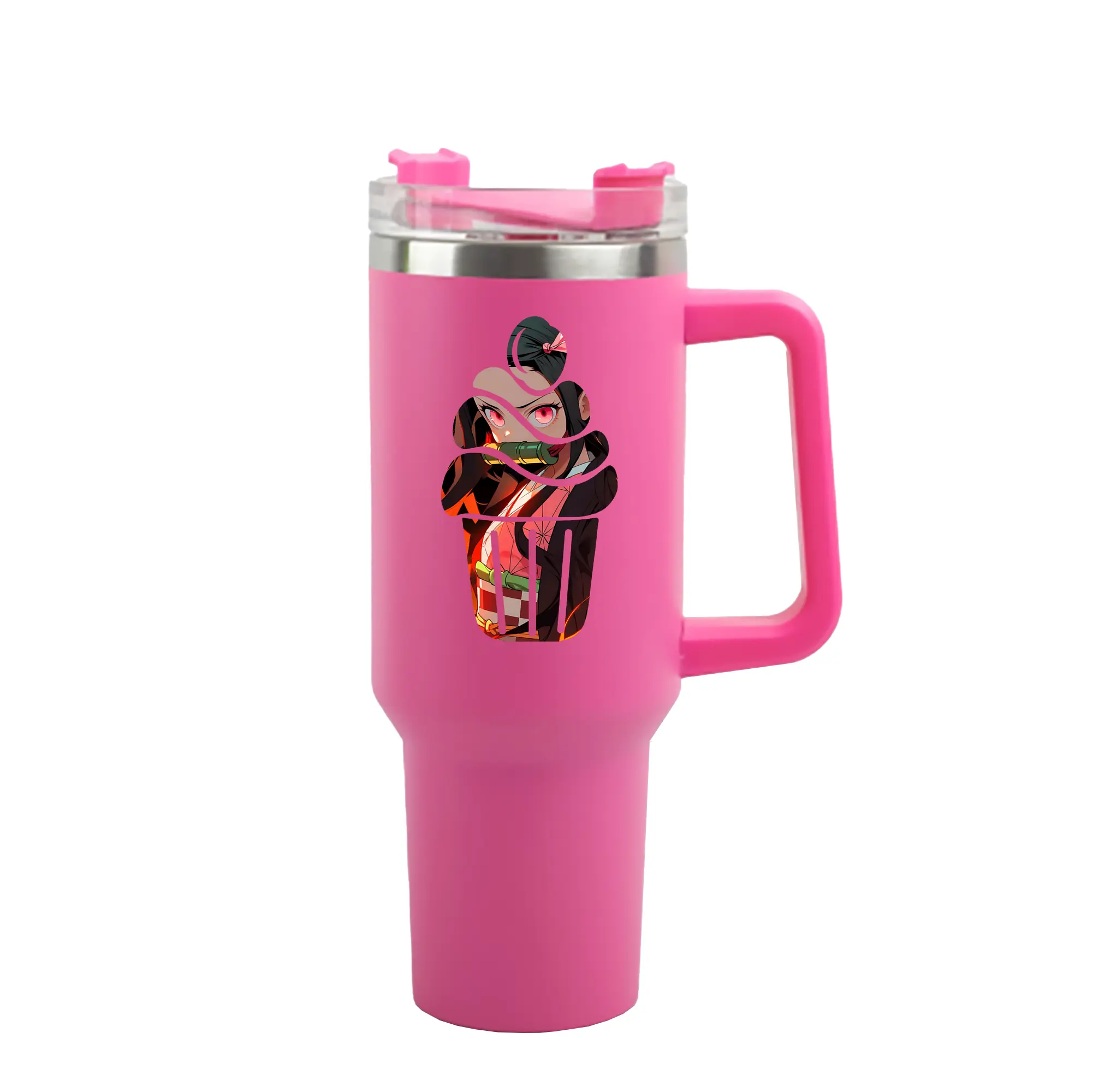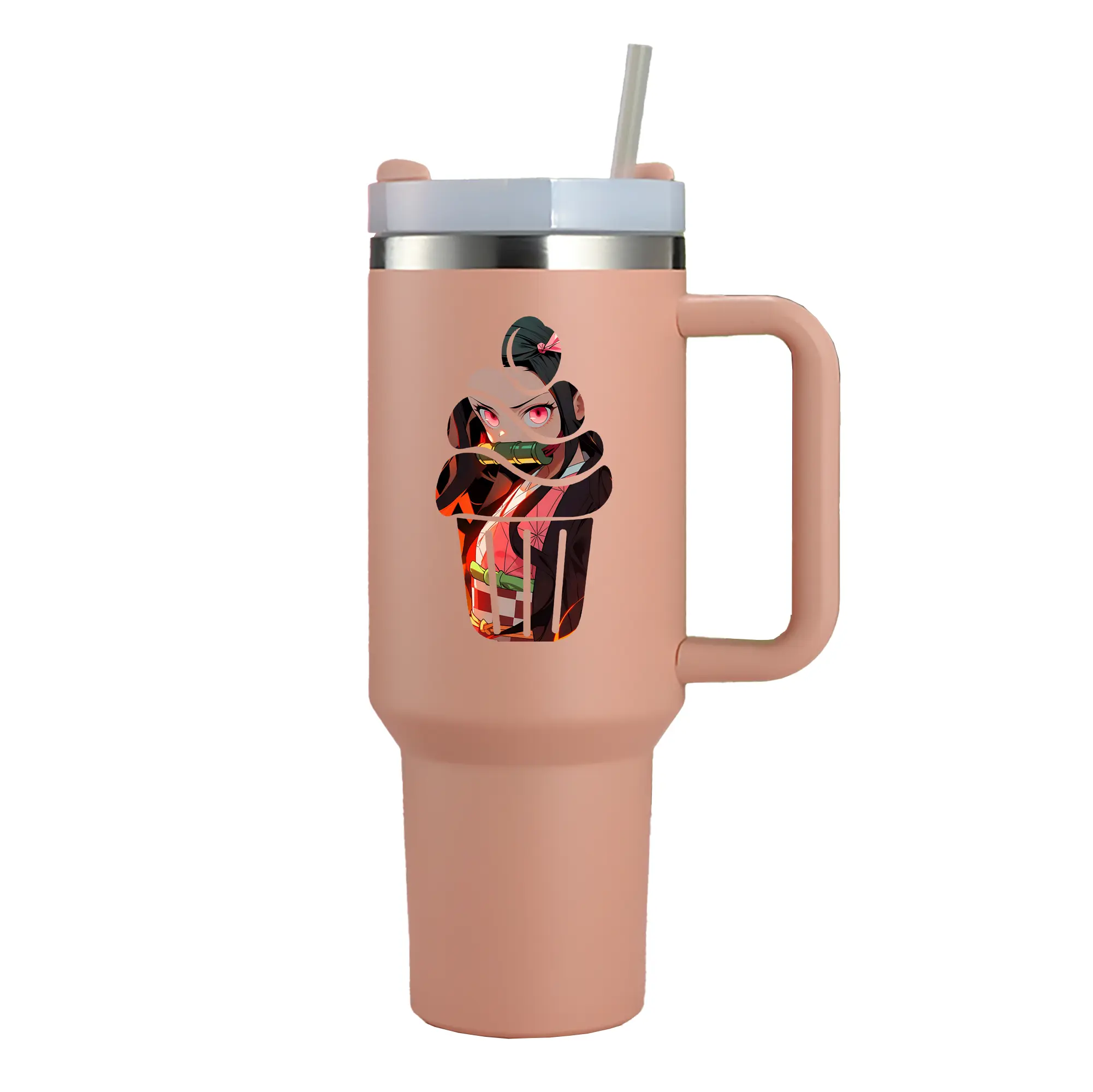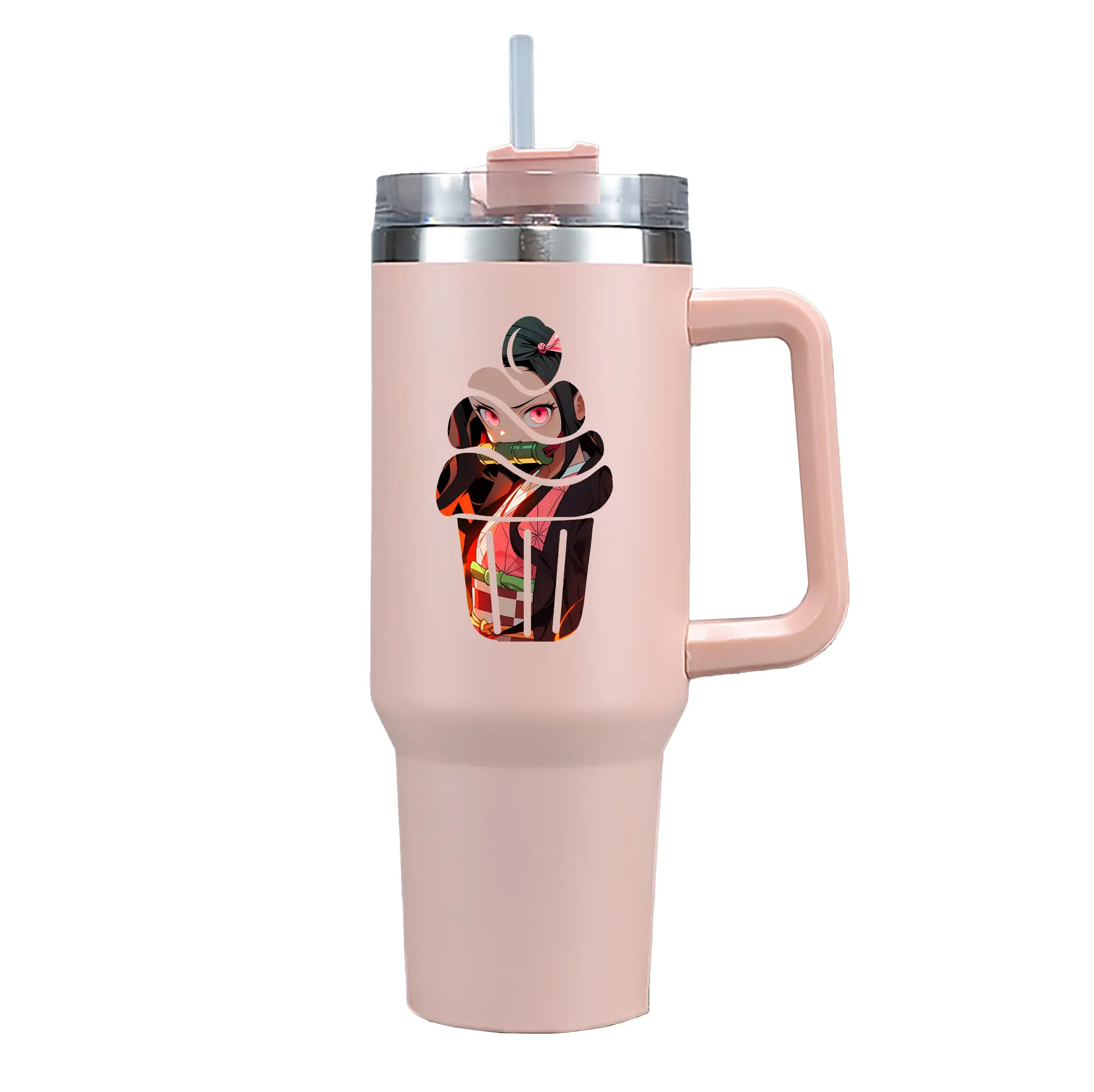 鬼滅の刃 グッズ,竈門 禰豆子 - 1200mL 車用タンブラー ・ クリスタルステッカー ・ 304ステンレス 内側 ・ 201ステンレス 外側 ・ 保温 保冷 ・ ハンドル&ストロー付き ・ 通勤 ドライブ アウトドア用