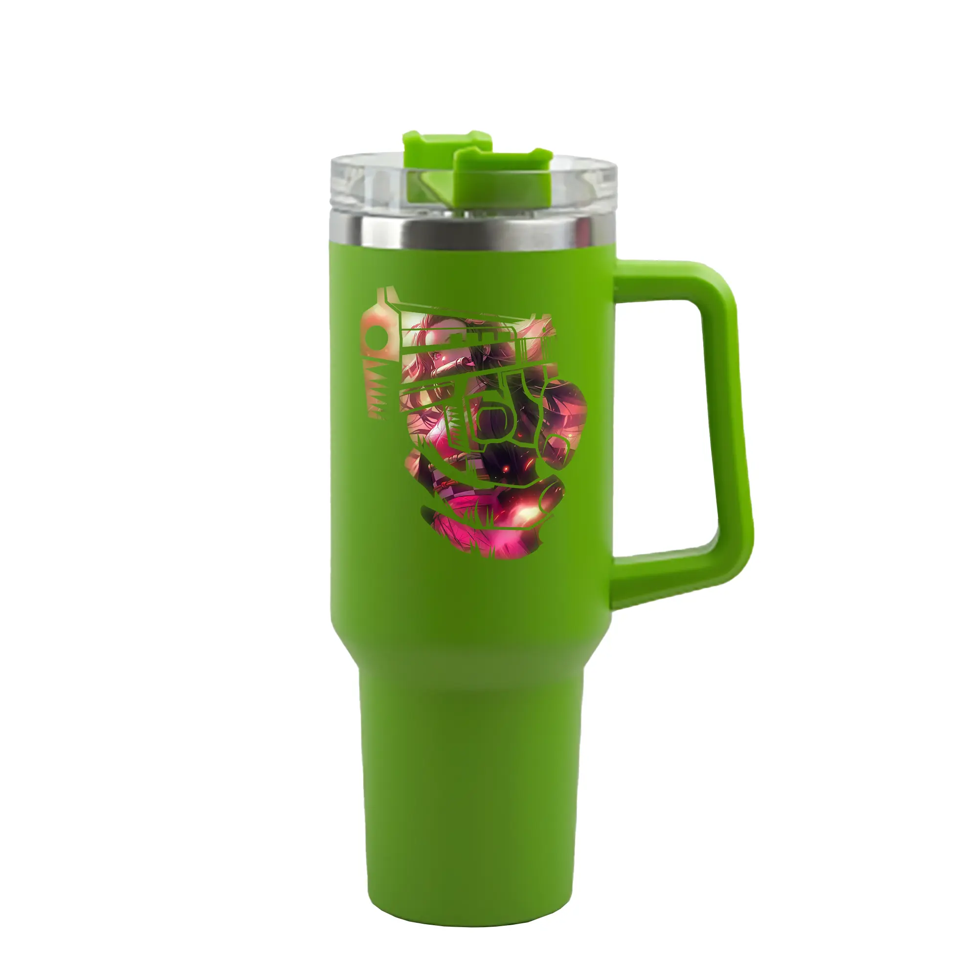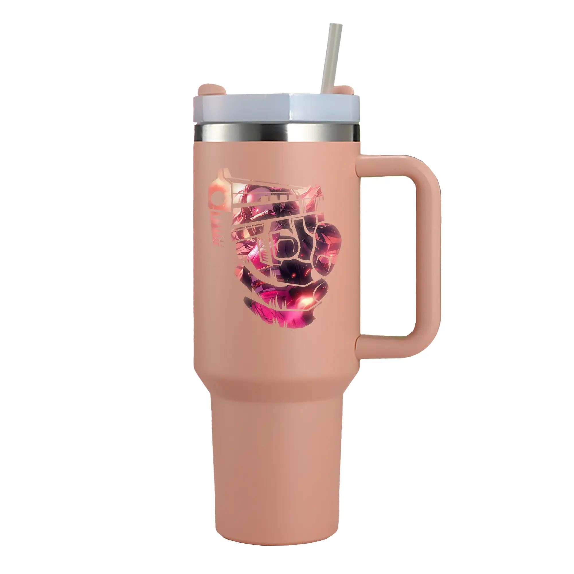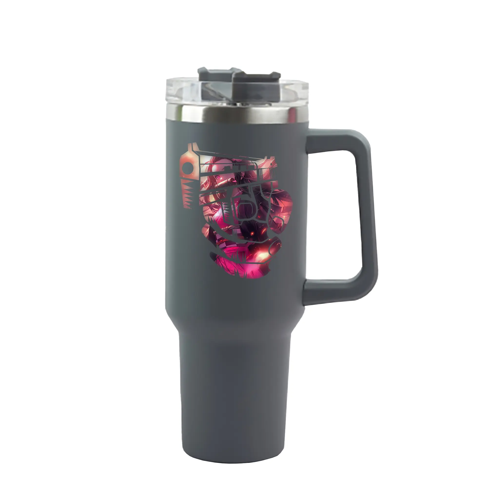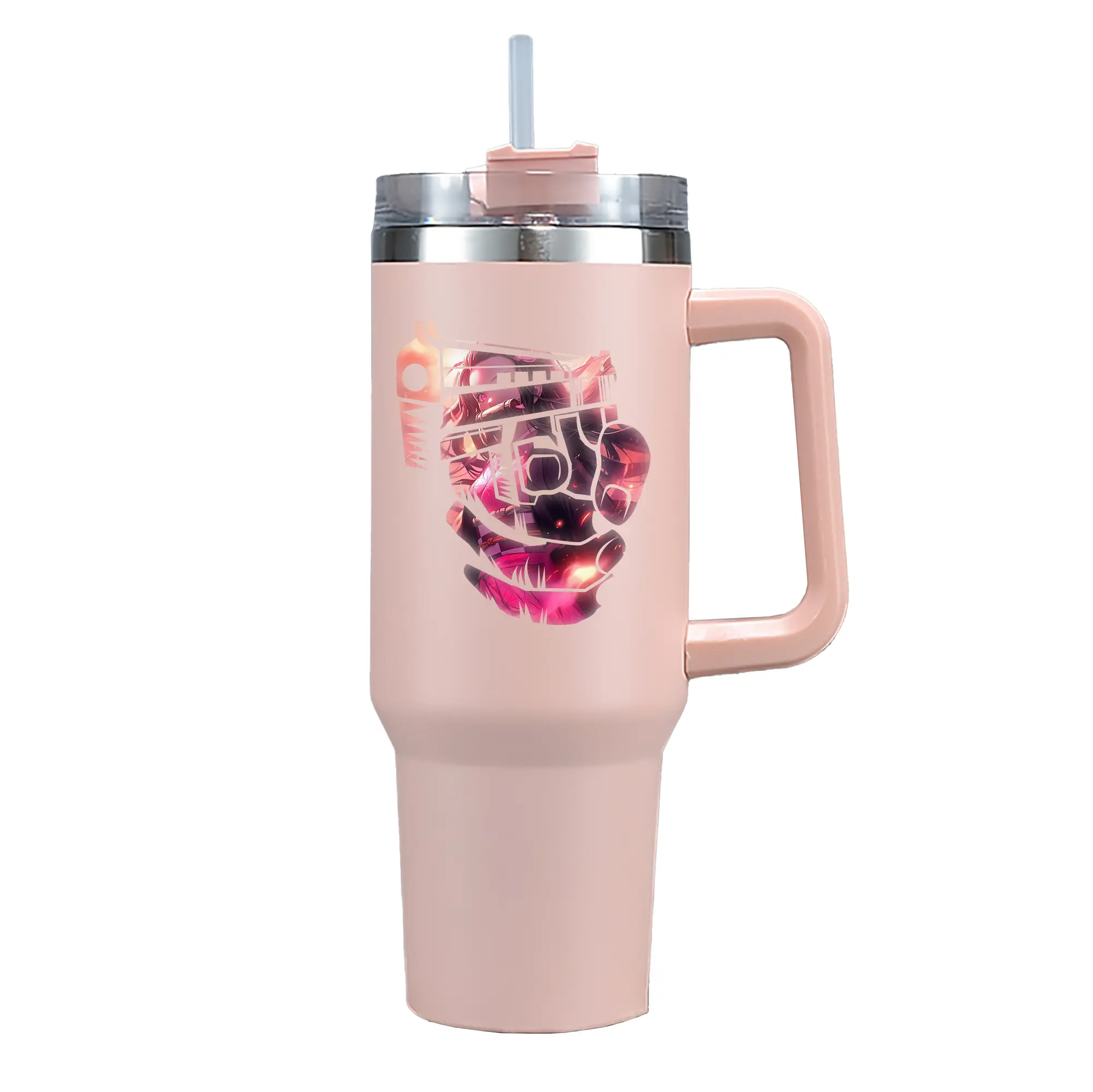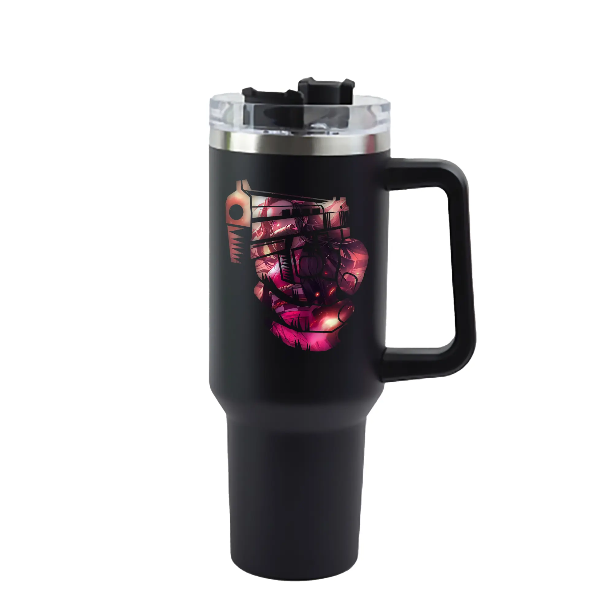 鬼滅の刃 グッズ,竈門 禰豆子 - 1200mL 車用タンブラー ・ クリスタルステッカー ・ 304ステンレス 内側 ・ 201ステンレス 外側 ・ 保温 保冷 ・ ハンドル&ストロー付き ・ 通勤 ドライブ アウトドア用