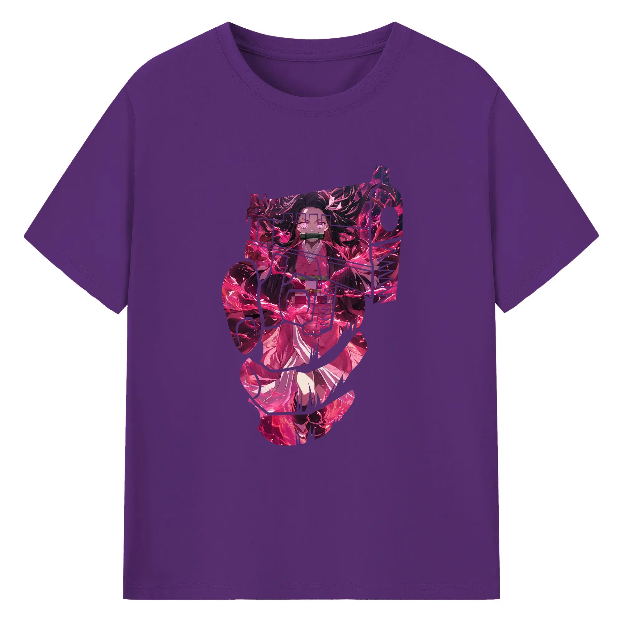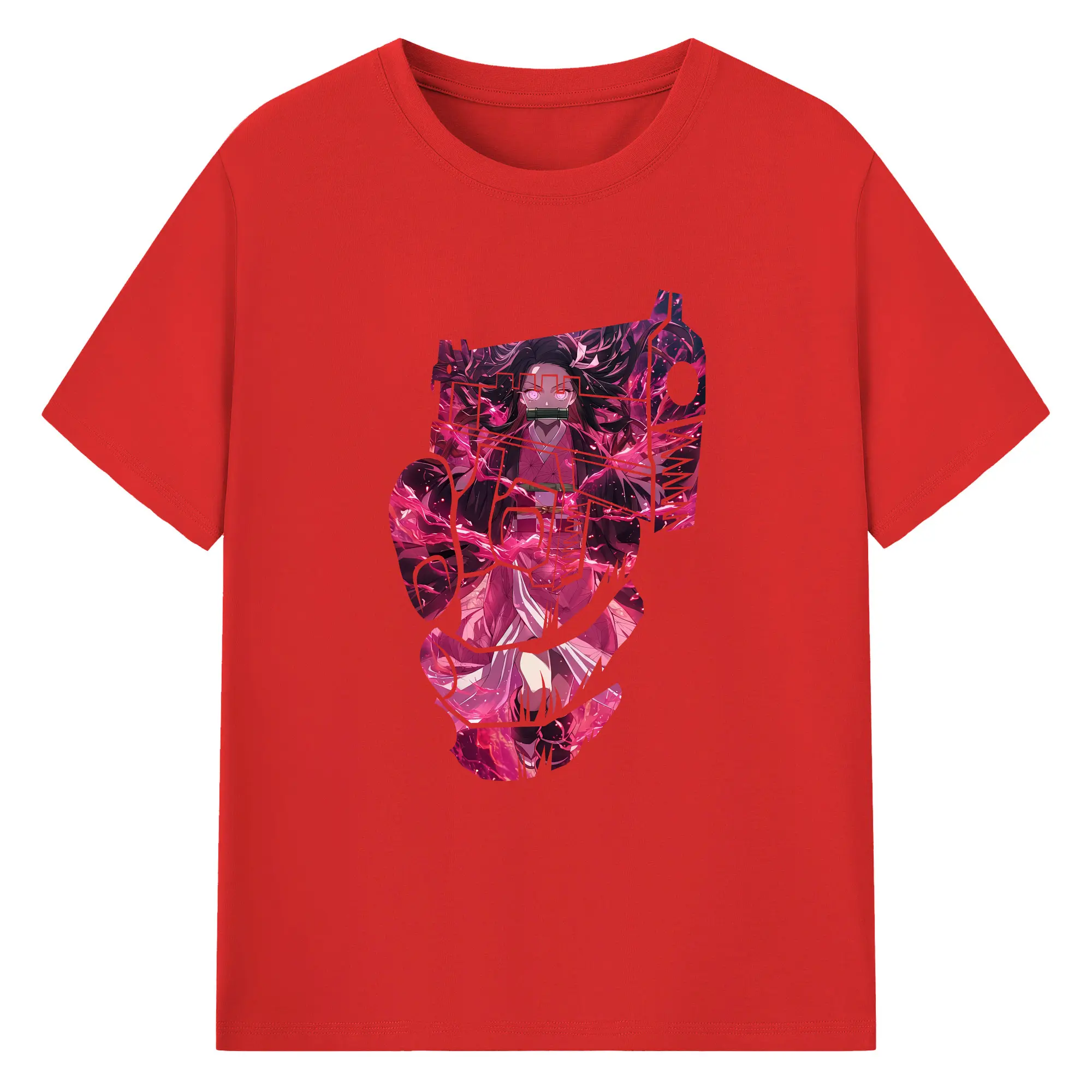 鬼滅の刃 グッズ,竈門 禰豆子 - 綿100% 半袖Tシャツ ・ バックプリント ・ 快適 通気性 ・ 日常使い 散歩 スポーツ用