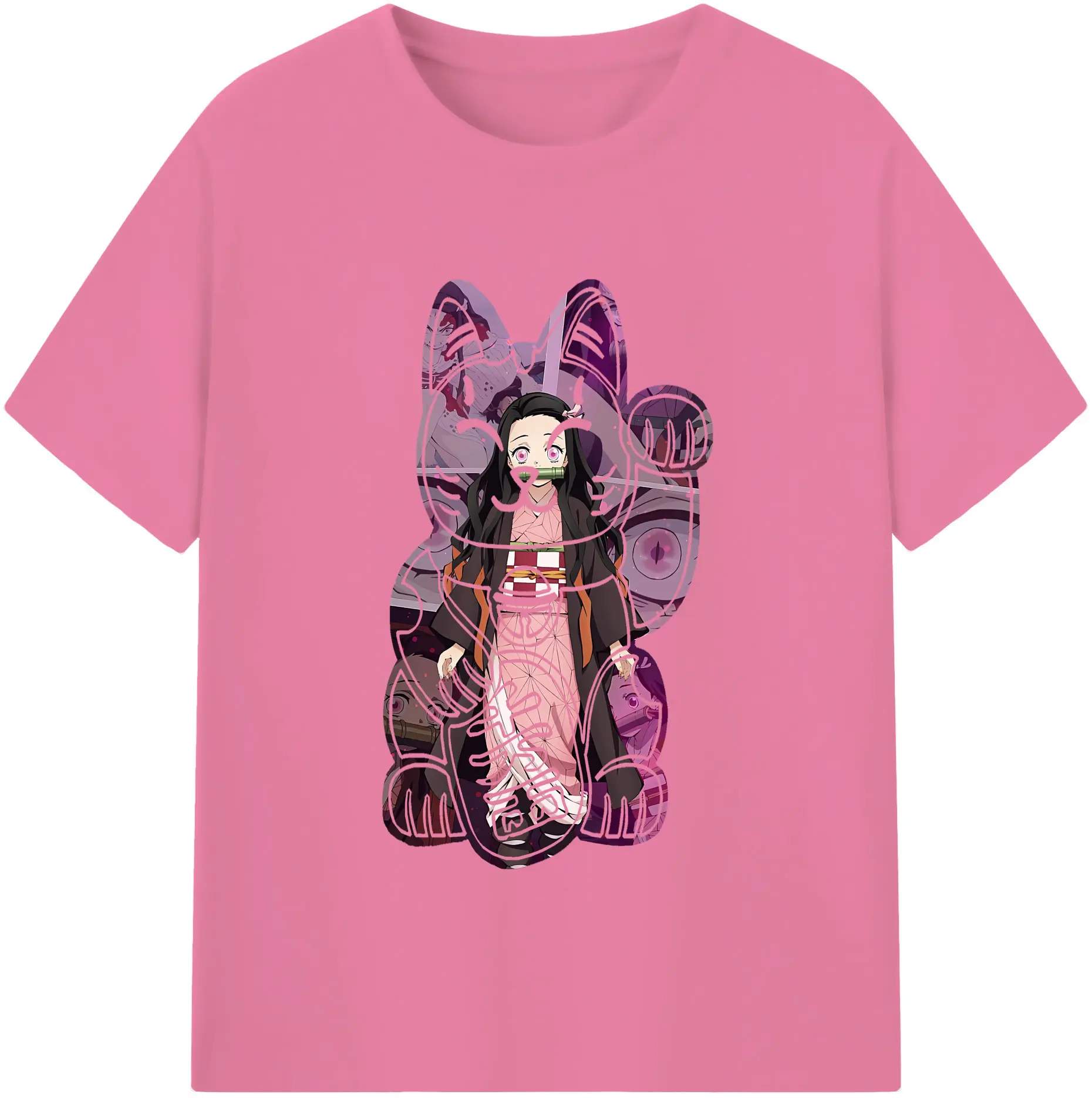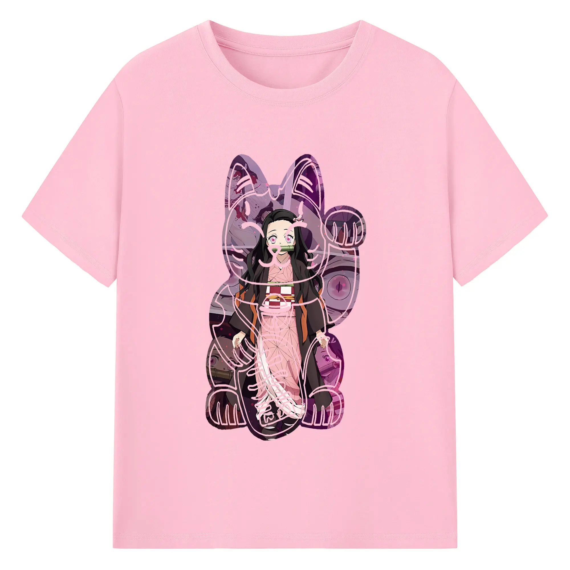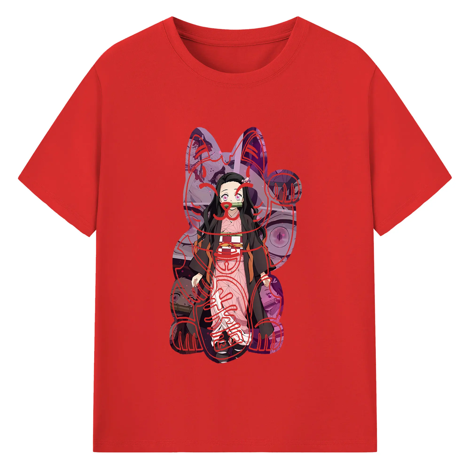 鬼滅の刃 グッズ,竈門 禰豆子 - 綿100% 半袖Tシャツ ・ バックプリント ・ 快適 通気性 ・ 日常使い 散歩 スポーツ用