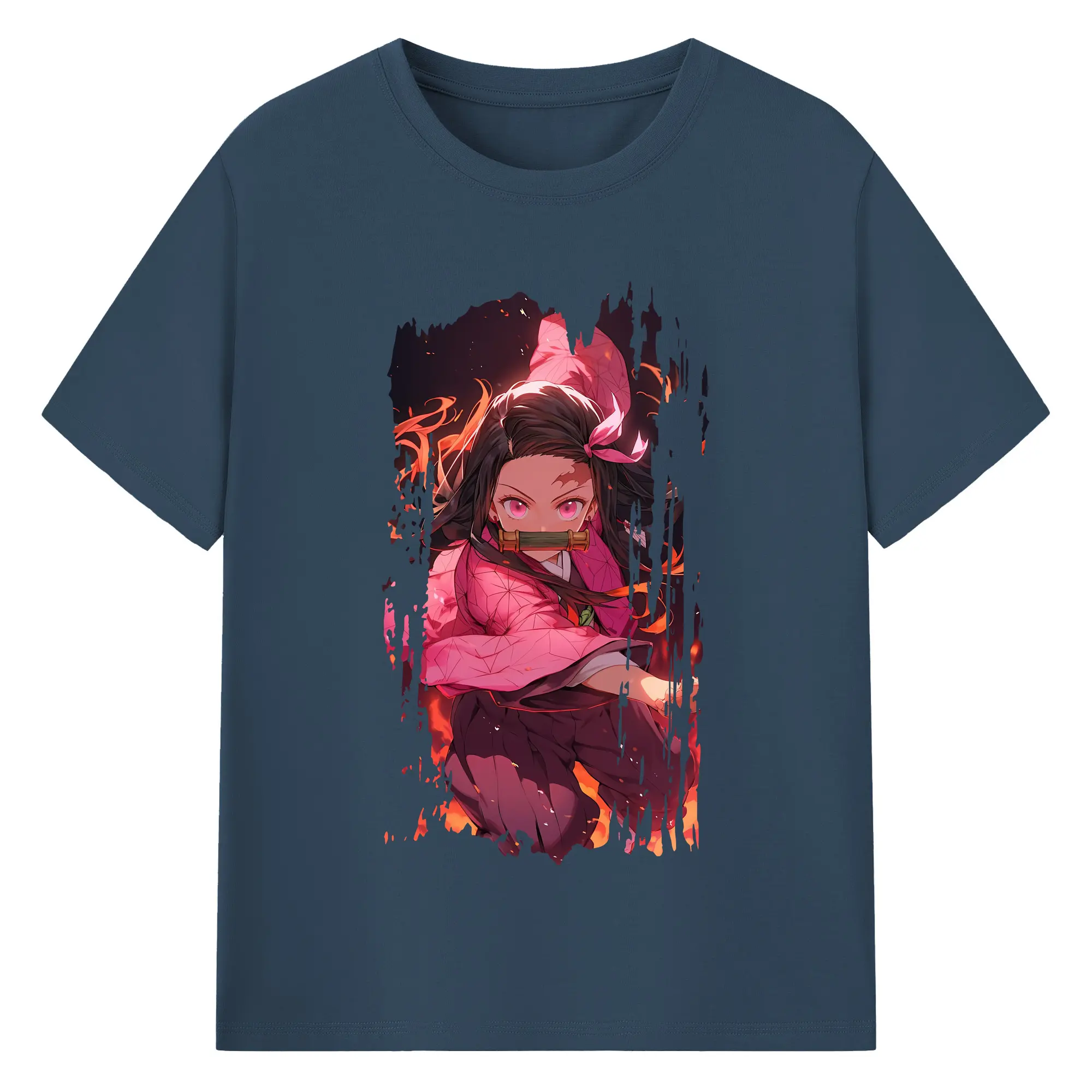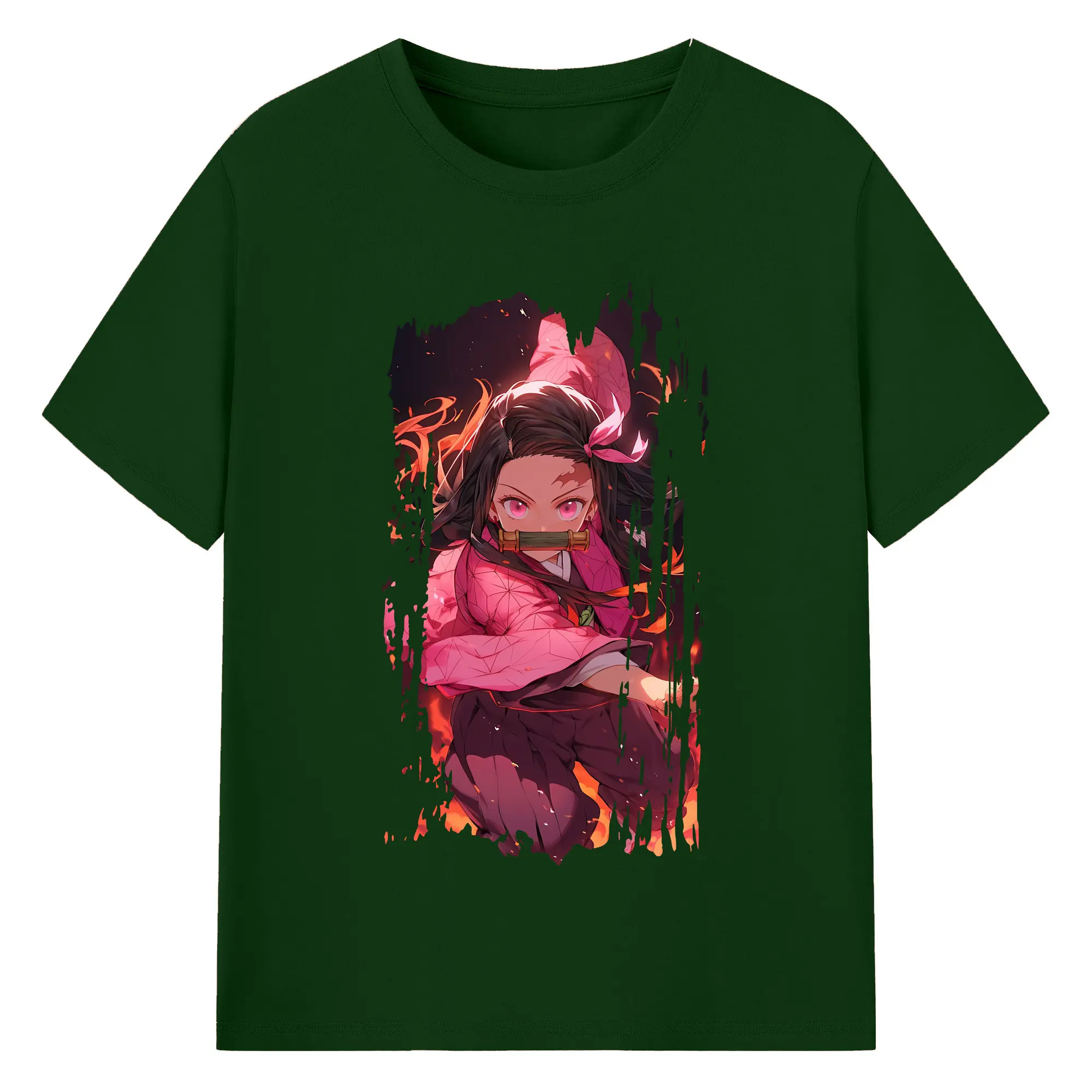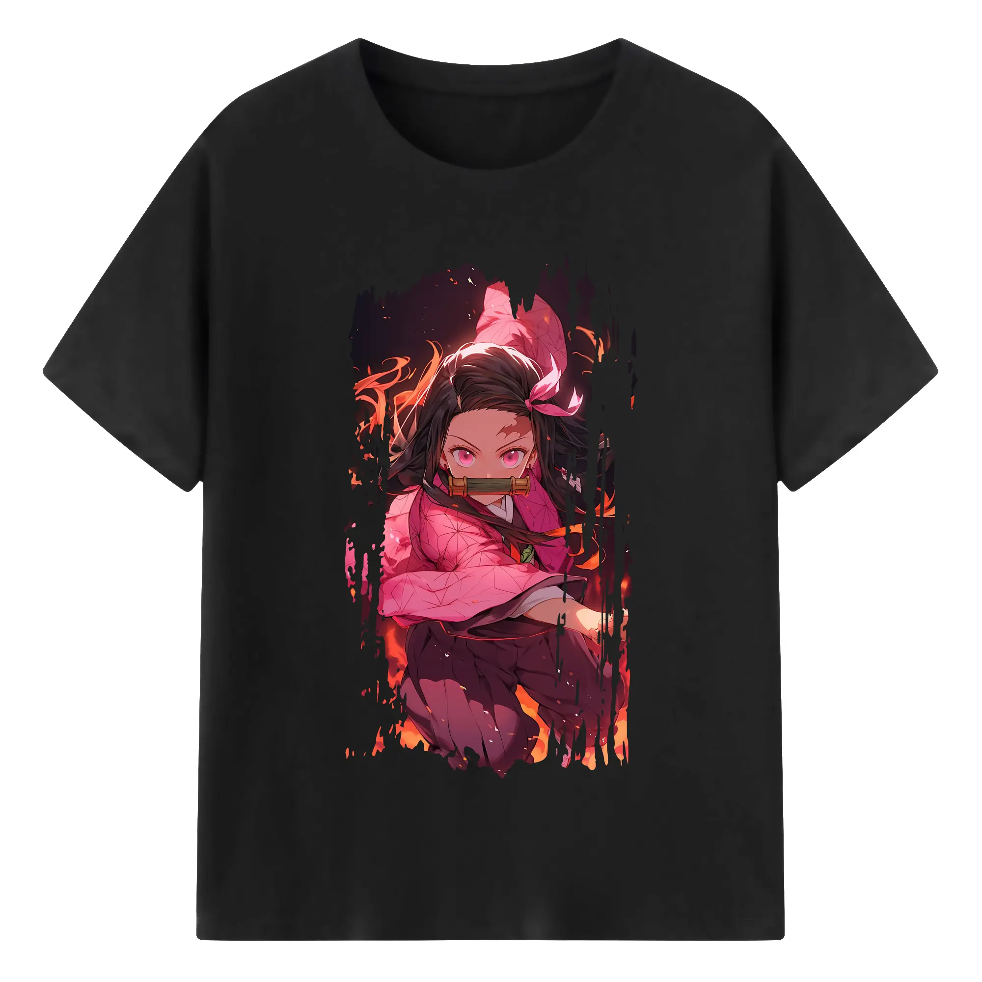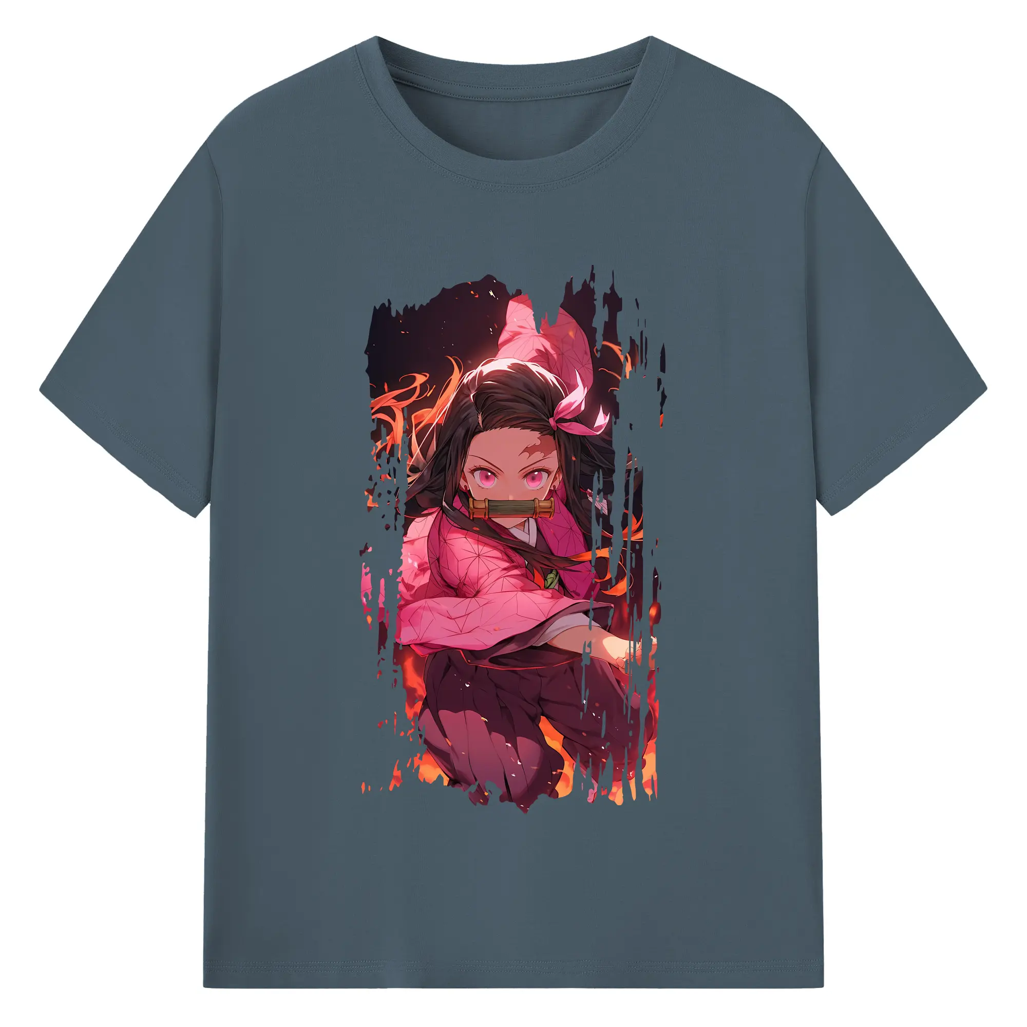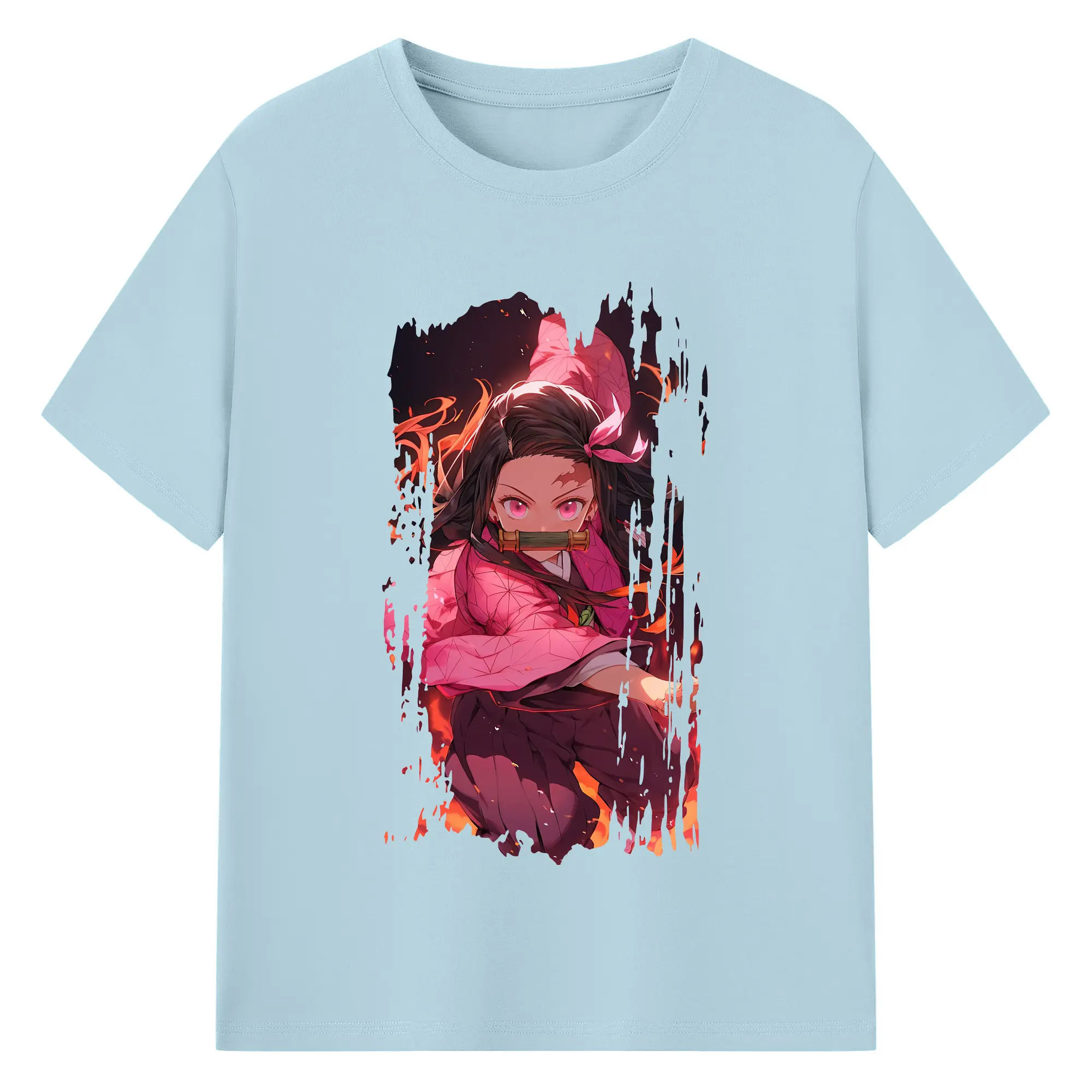 鬼滅の刃 グッズ,竈門 禰豆子 - 綿100% 半袖Tシャツ ・ バックプリント ・ 快適 通気性 ・ 日常使い 散歩 スポーツ用