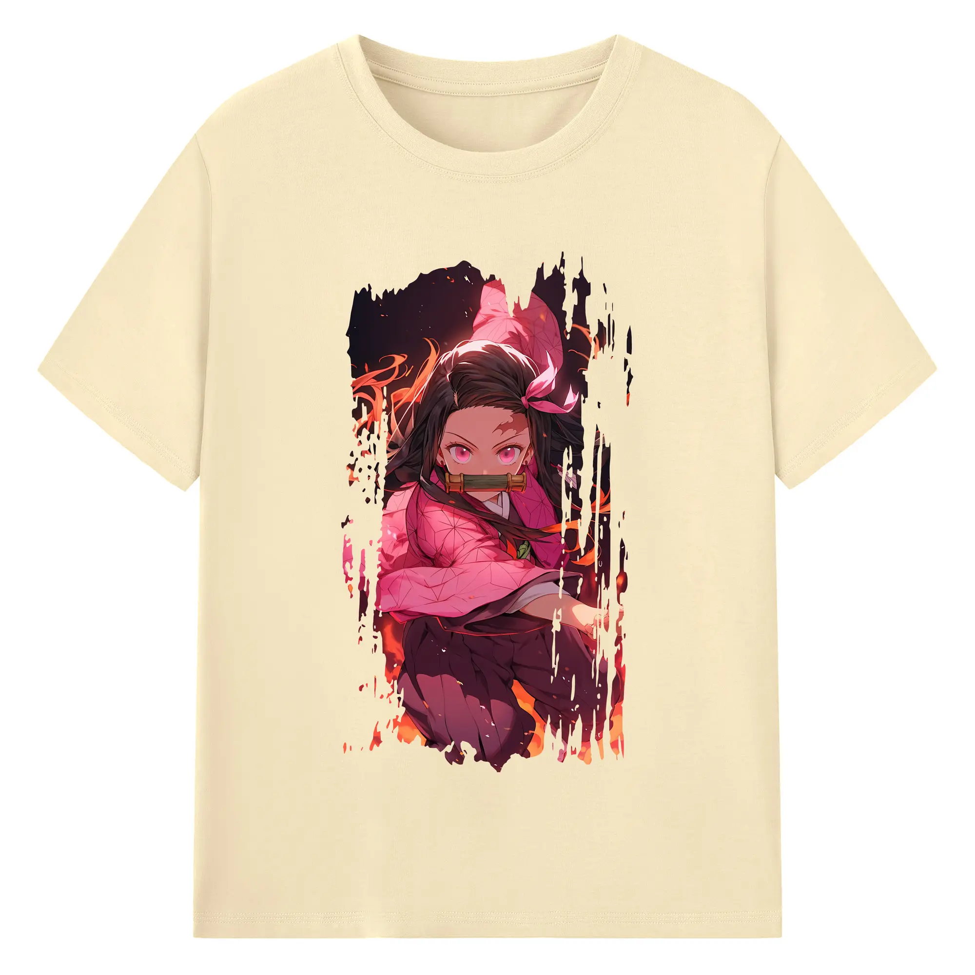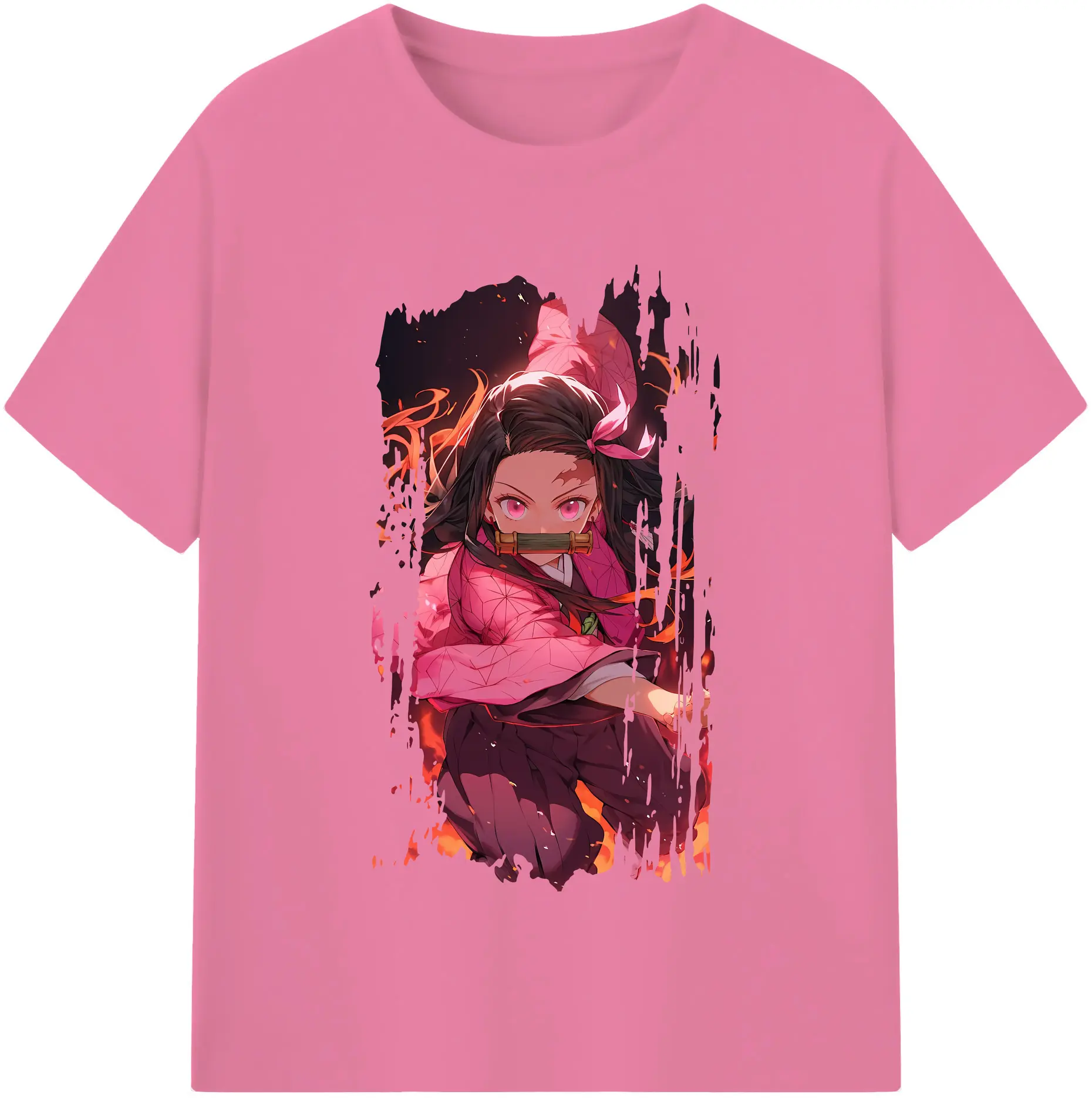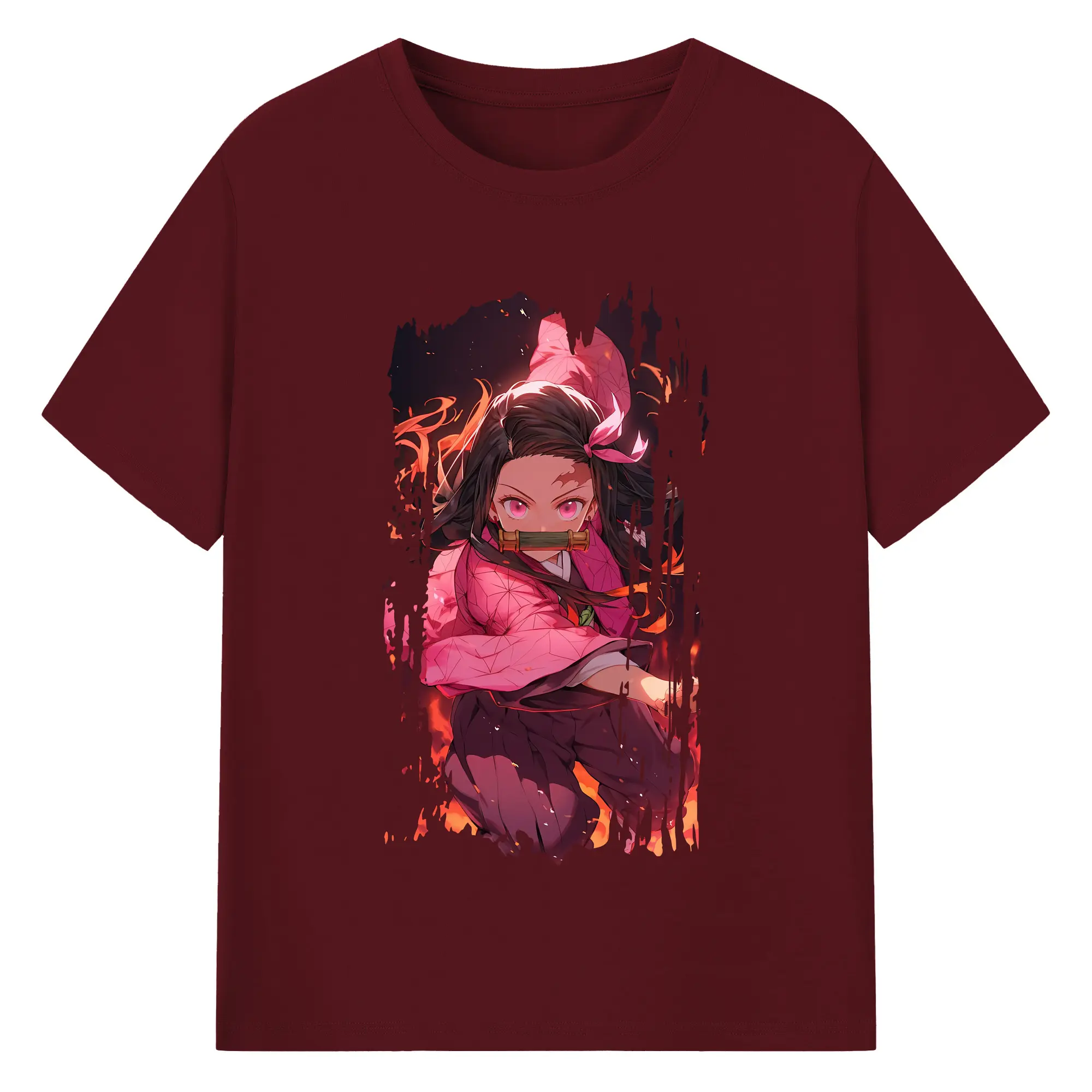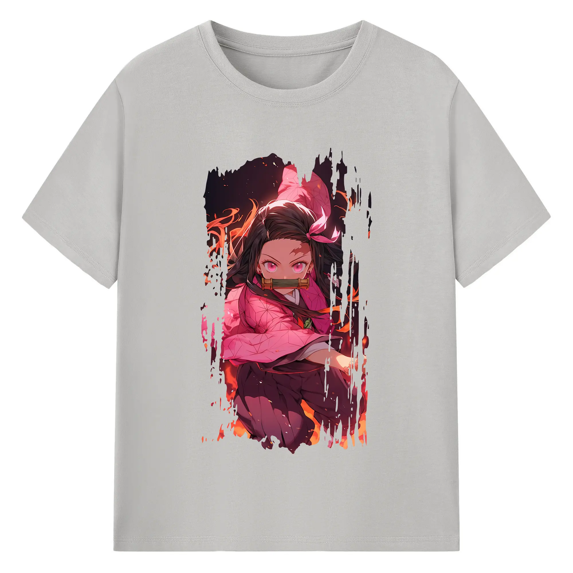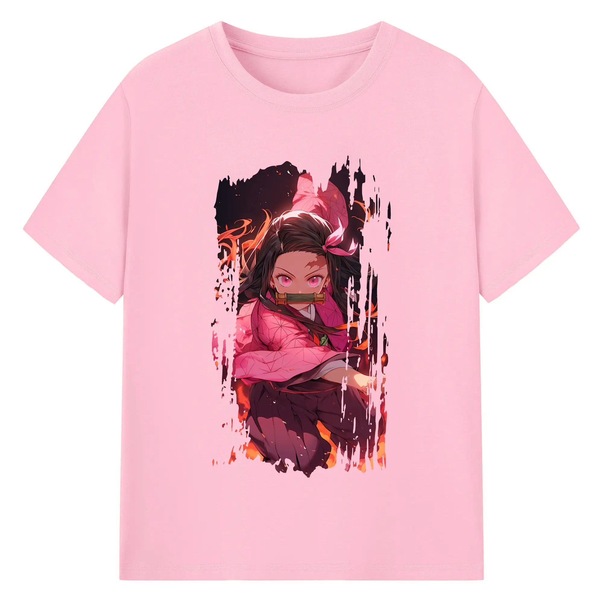 鬼滅の刃 グッズ,竈門 禰豆子 - 綿100% 半袖Tシャツ ・ バックプリント ・ 快適 通気性 ・ 日常使い 散歩 スポーツ用