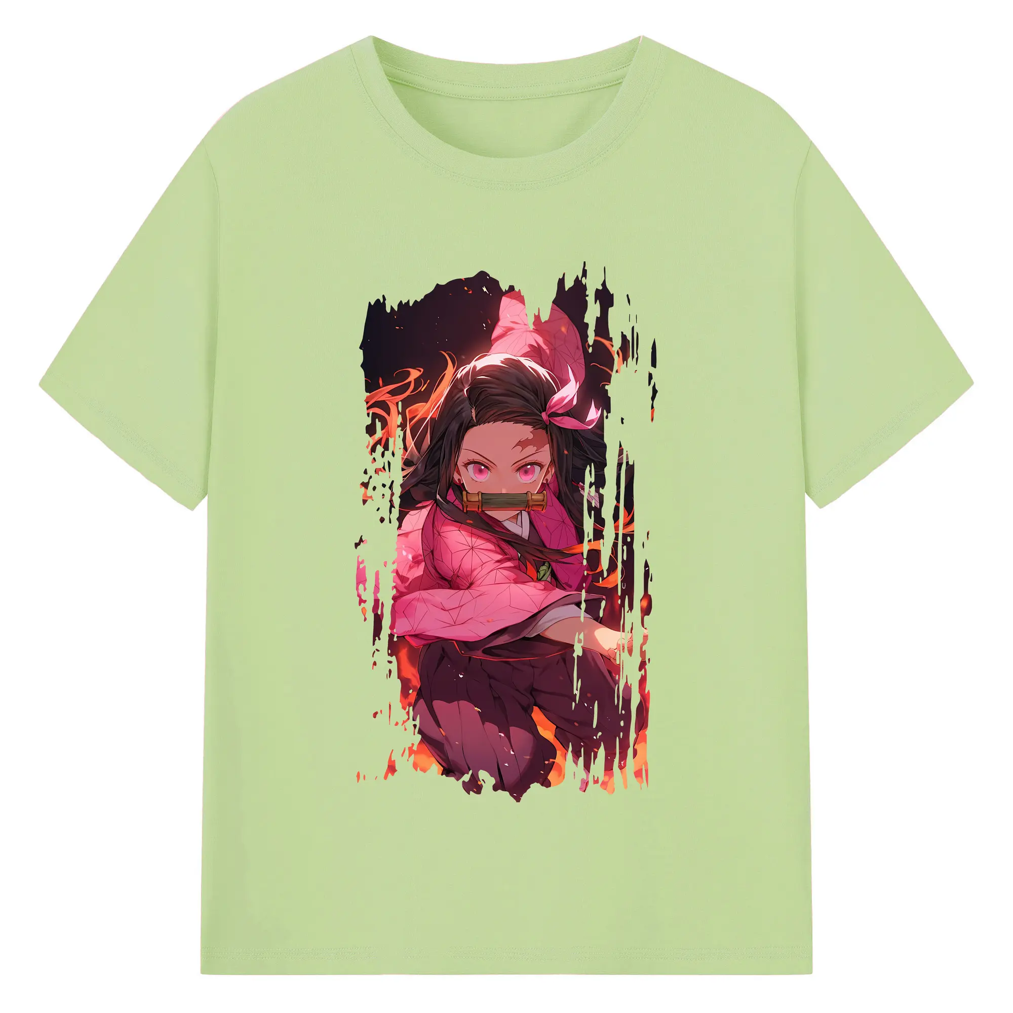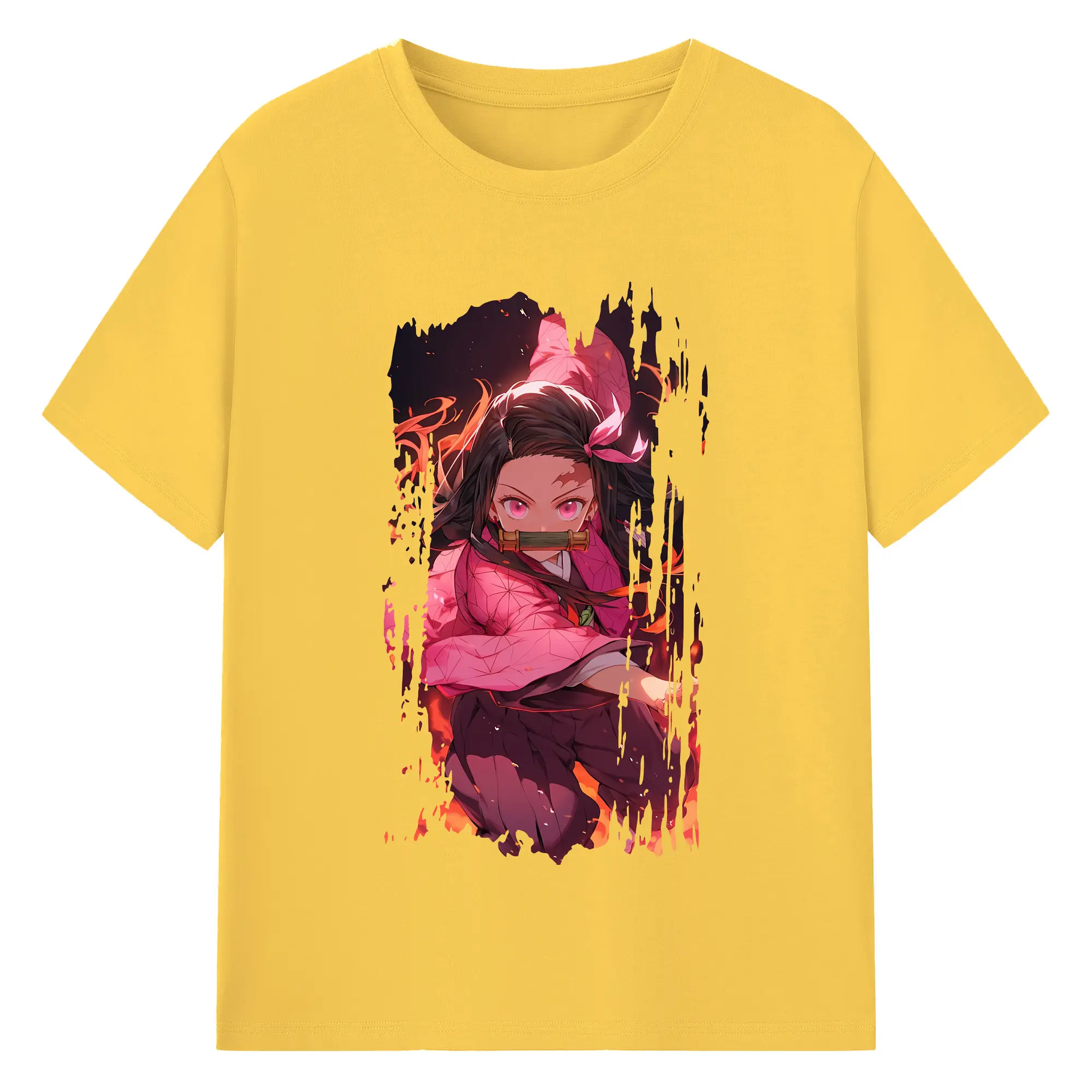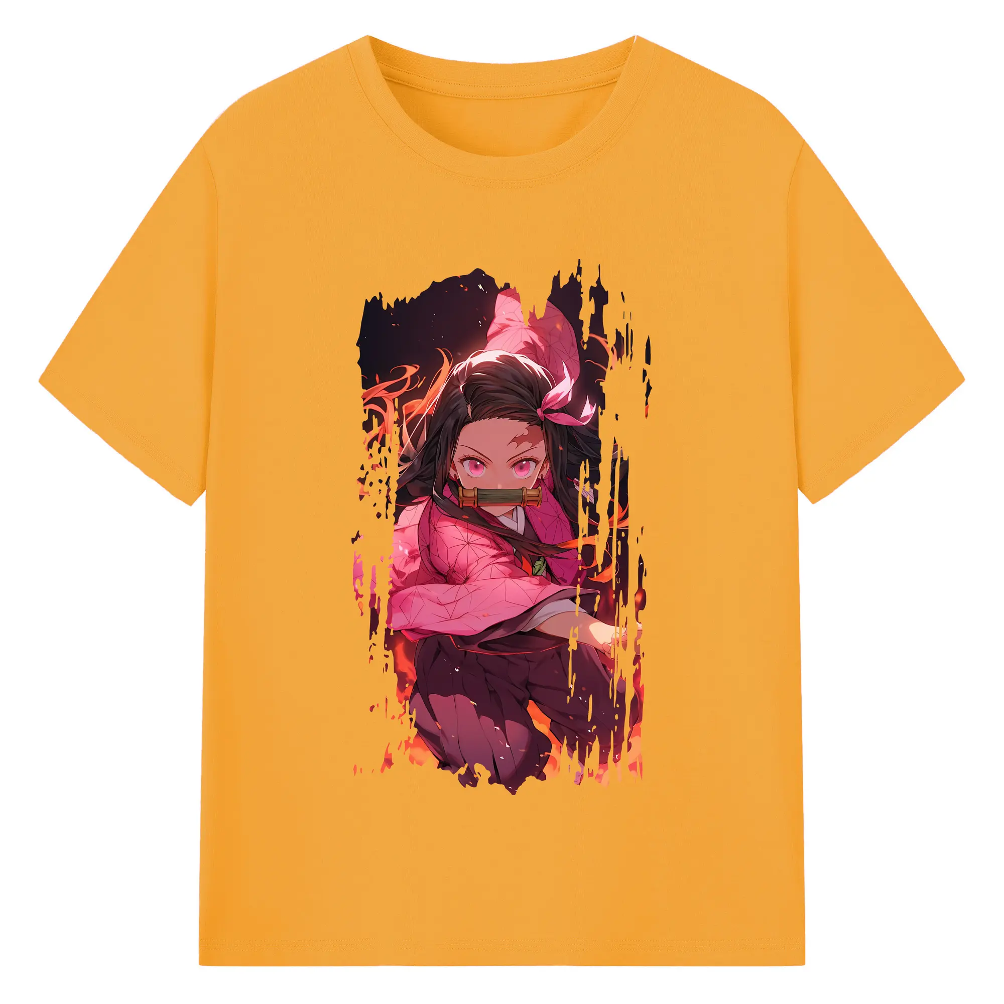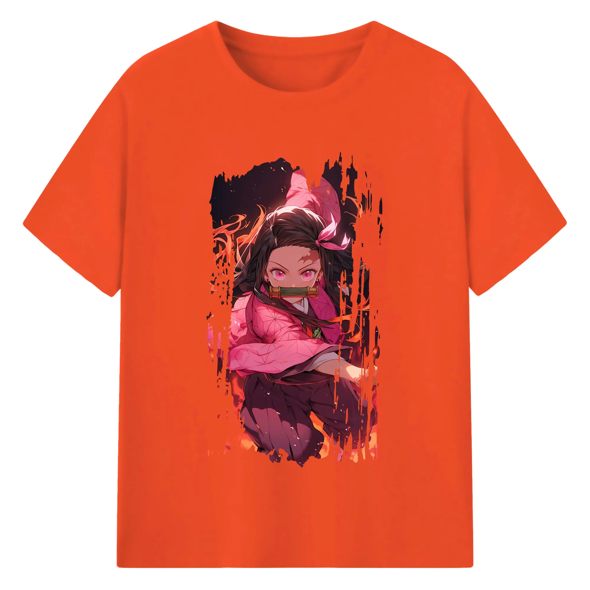 鬼滅の刃 グッズ,竈門 禰豆子 - 綿100% キッズTシャツ ・ フロントプリント ・ 快適 通気性 ・ スポーツ カジュアル 散歩用