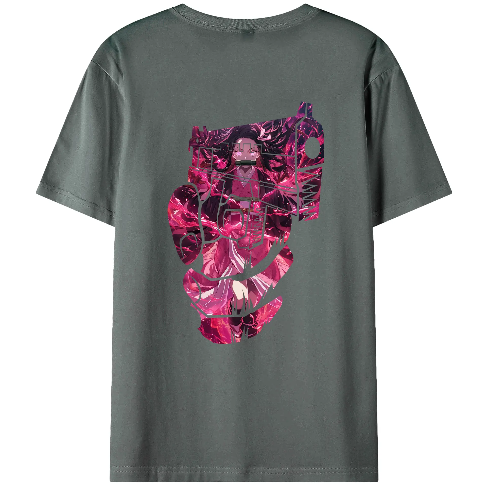 鬼滅の刃 グッズ,竈門 禰豆子 - 綿100% 半袖Tシャツ ・ フロントプリント ・ 快適 通気性 ・ 日常使い 散歩 スポーツ用