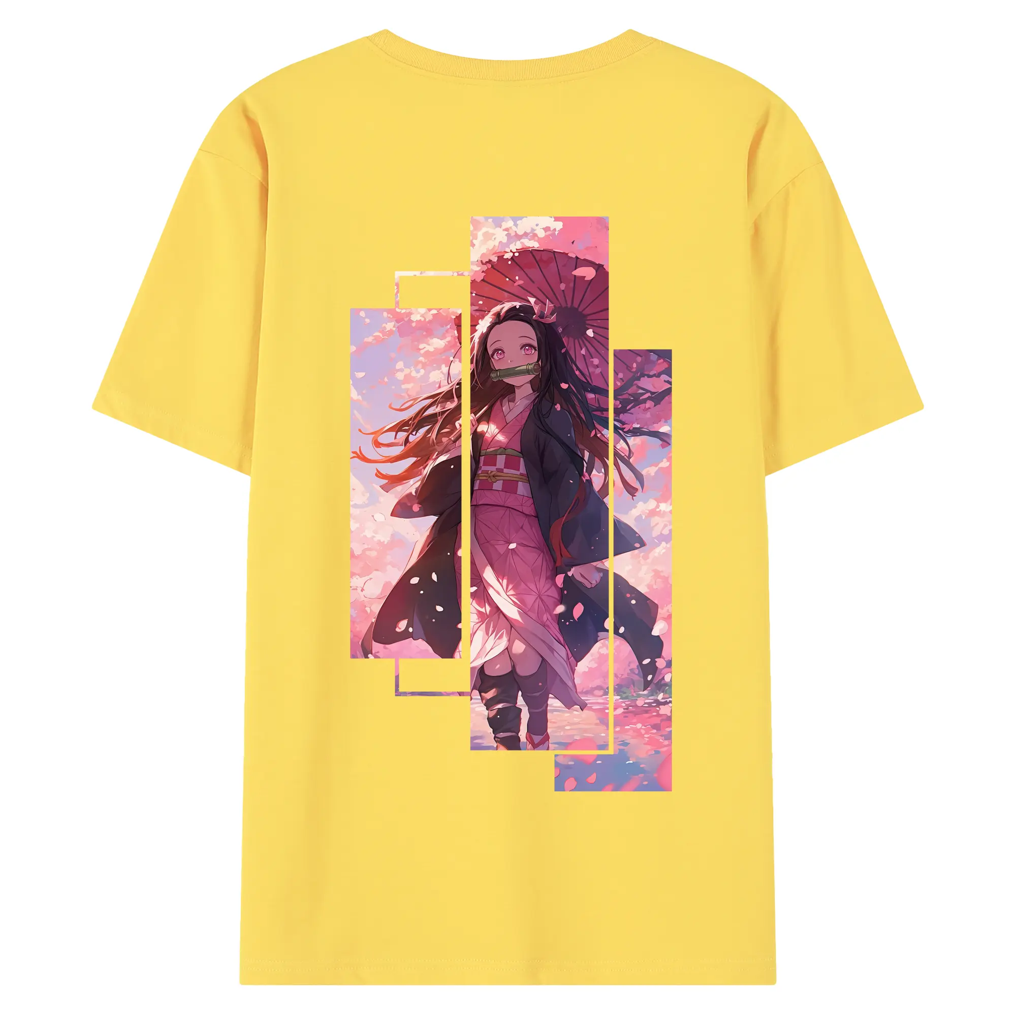 鬼滅の刃 グッズ,竈門 禰豆子 - 綿100% 半袖Tシャツ ・ フロントプリント ・ 快適 通気性 ・ 日常使い 散歩 スポーツ用
