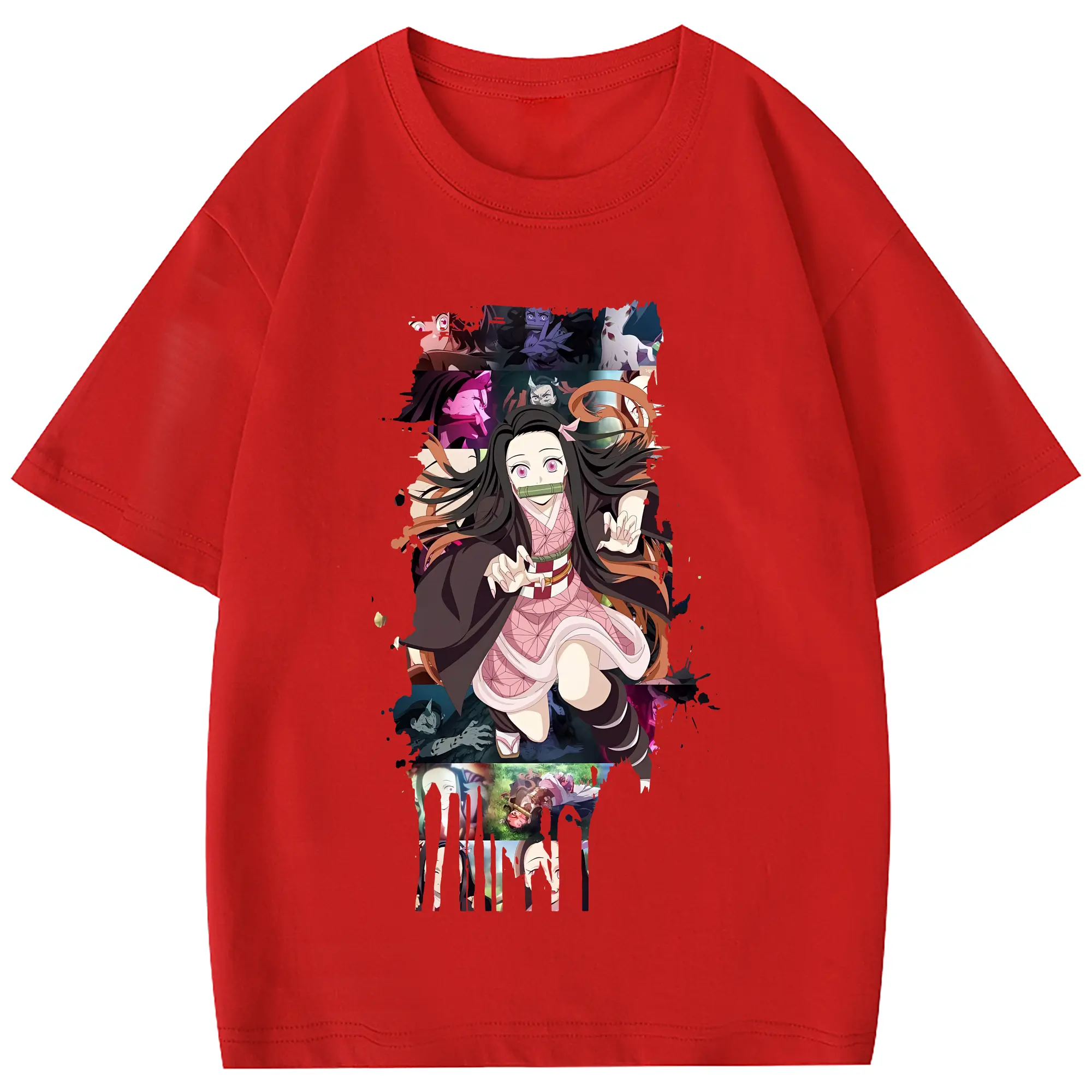 鬼滅の刃 グッズ,竈門 禰豆子 - 綿100% 半袖Tシャツ ・ フロントプリント ・ 快適 通気性 ・ 日常使い 散歩 スポーツ用