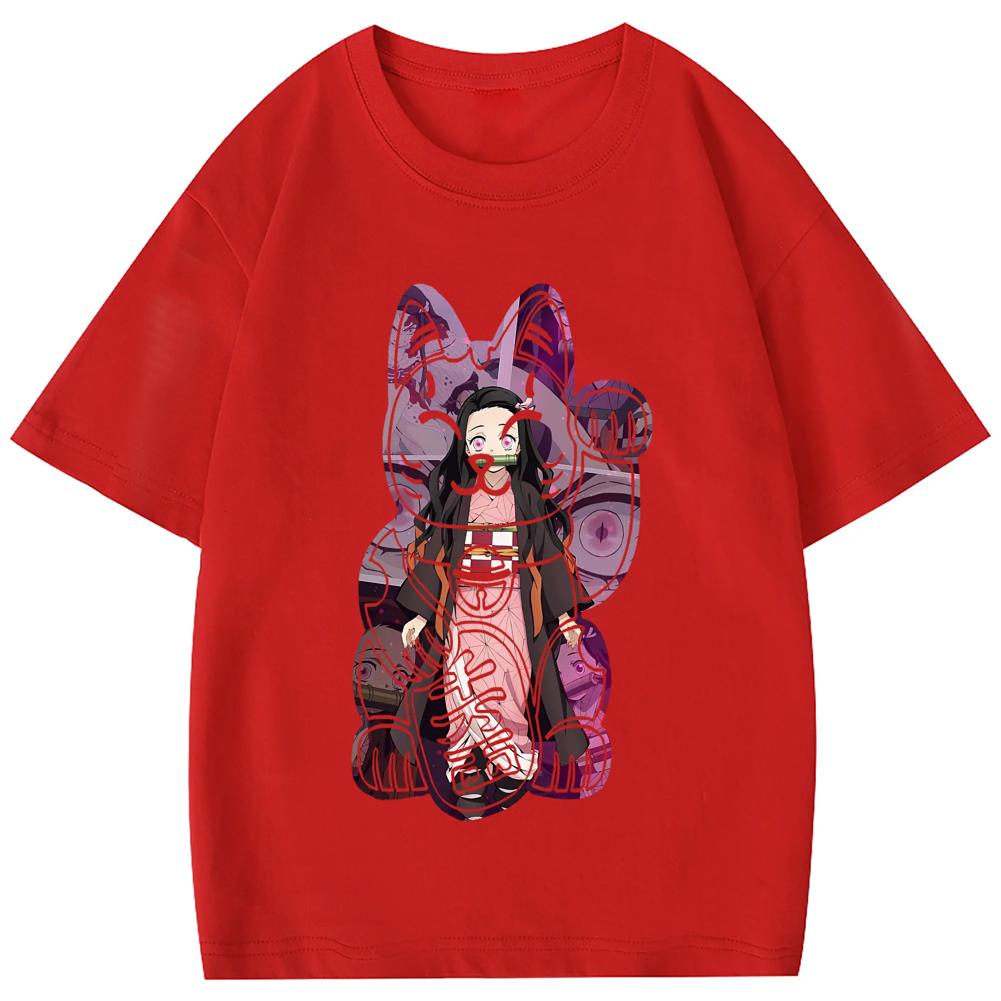 鬼滅の刃 グッズ,竈門 禰豆子 - 綿100% 半袖Tシャツ ・ フロントプリント ・ 快適 通気性 ・ 日常使い 散歩 スポーツ用