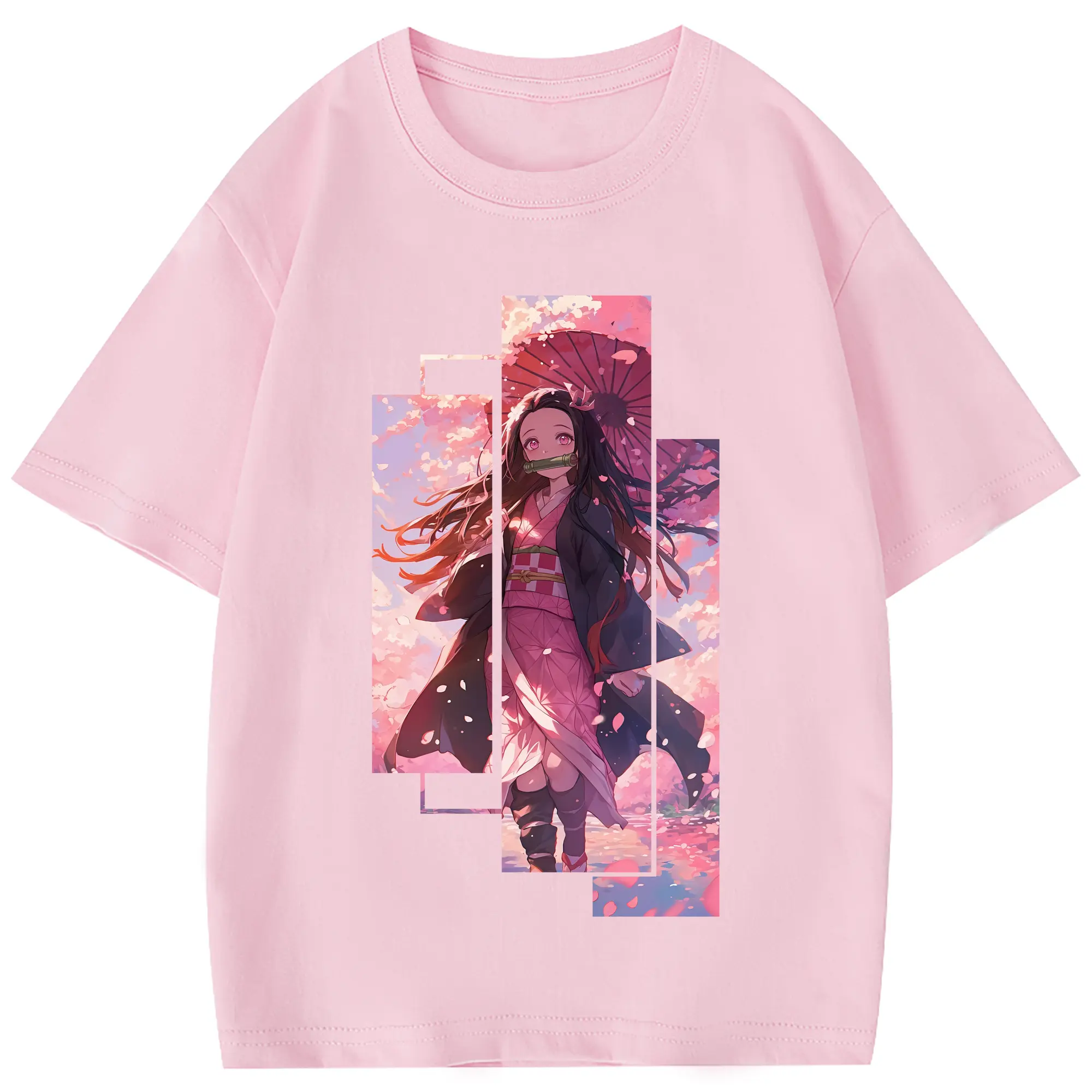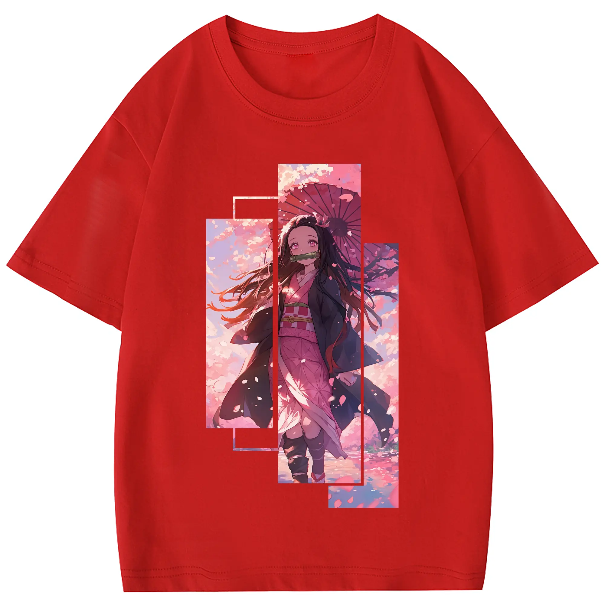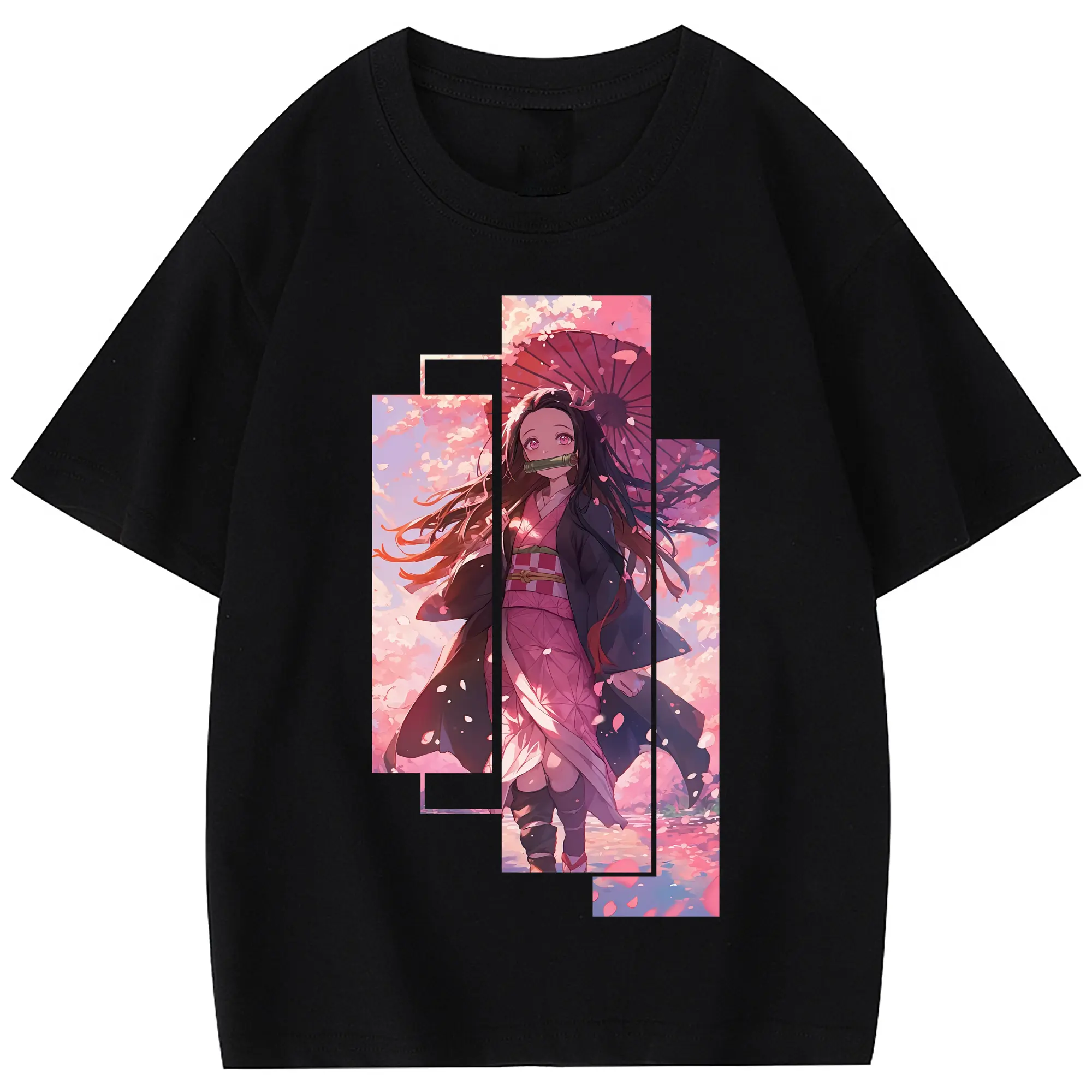 鬼滅の刃 グッズ,竈門 禰豆子 - 綿100% 半袖Tシャツ ・ フロントプリント ・ 快適 通気性 ・ 日常使い 散歩 スポーツ用