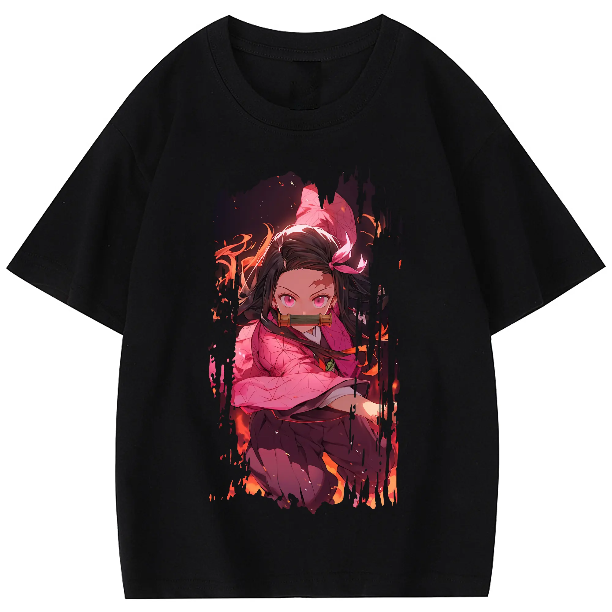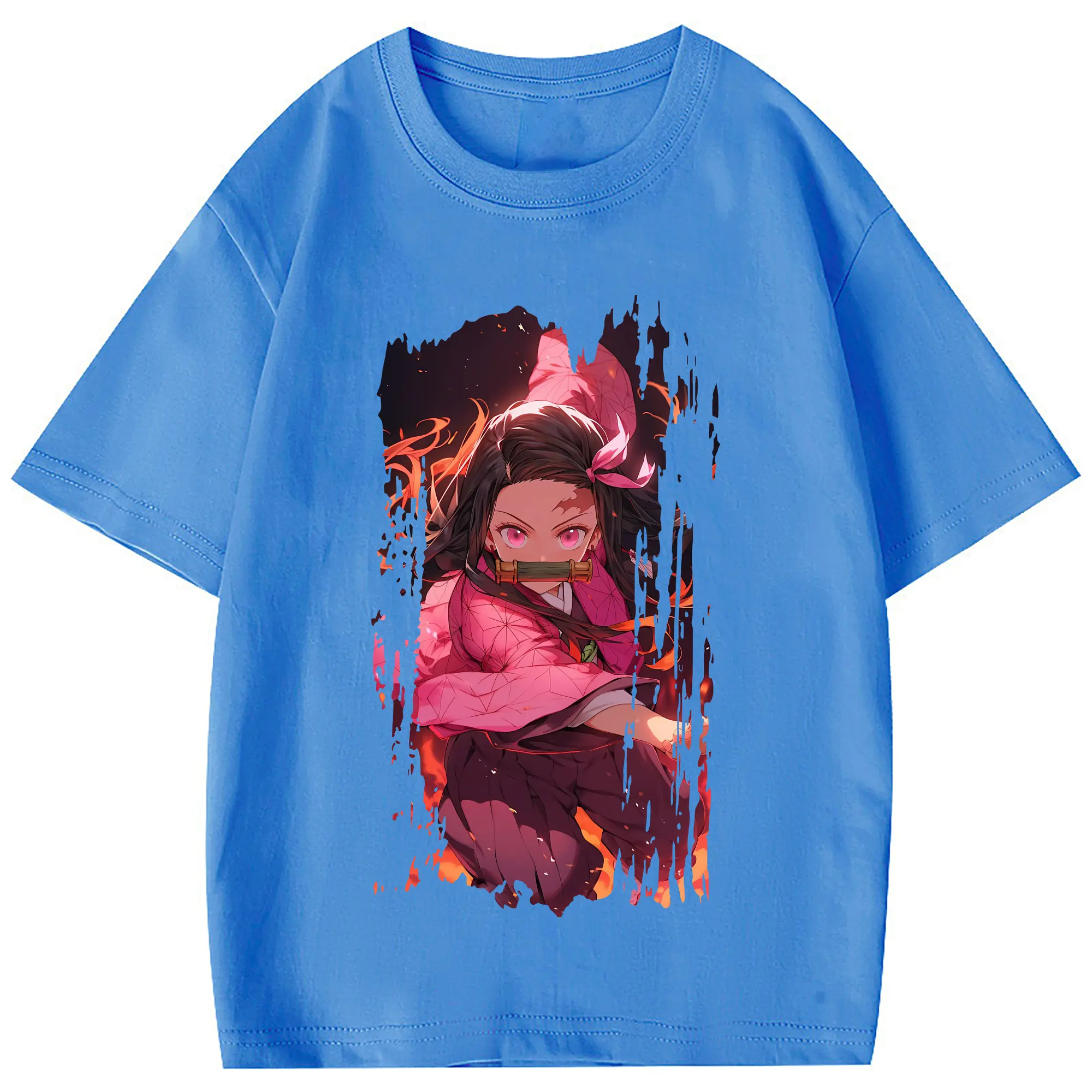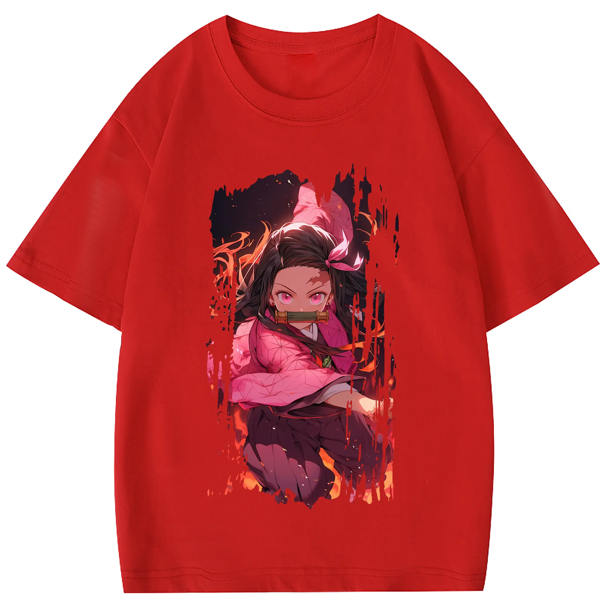 鬼滅の刃 グッズ,竈門 禰豆子 - 綿100% 半袖Tシャツ ・ フロントプリント ・ 快適 通気性 ・ 日常使い 散歩 スポーツ用